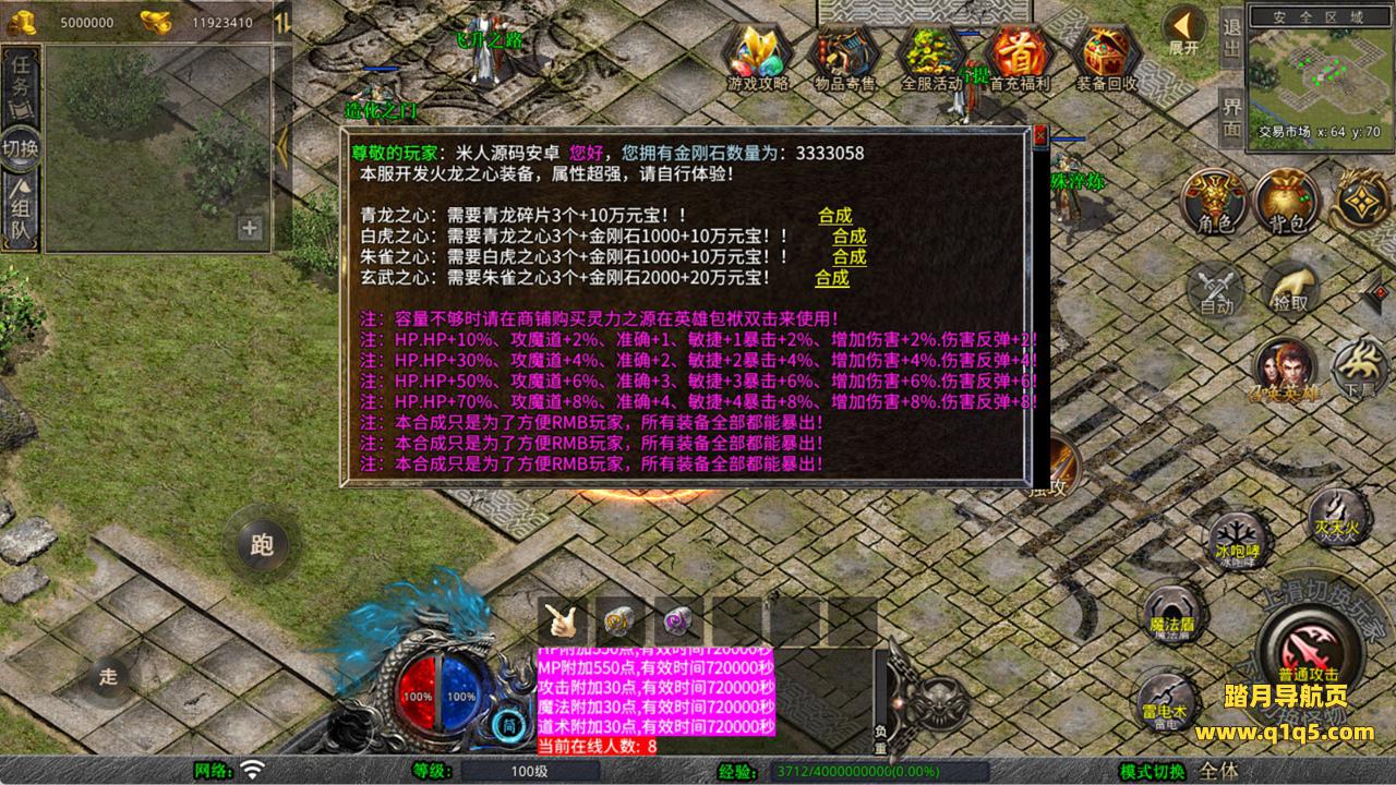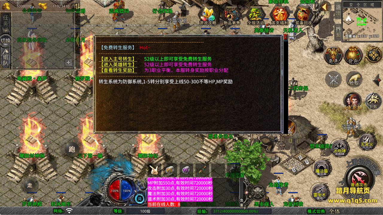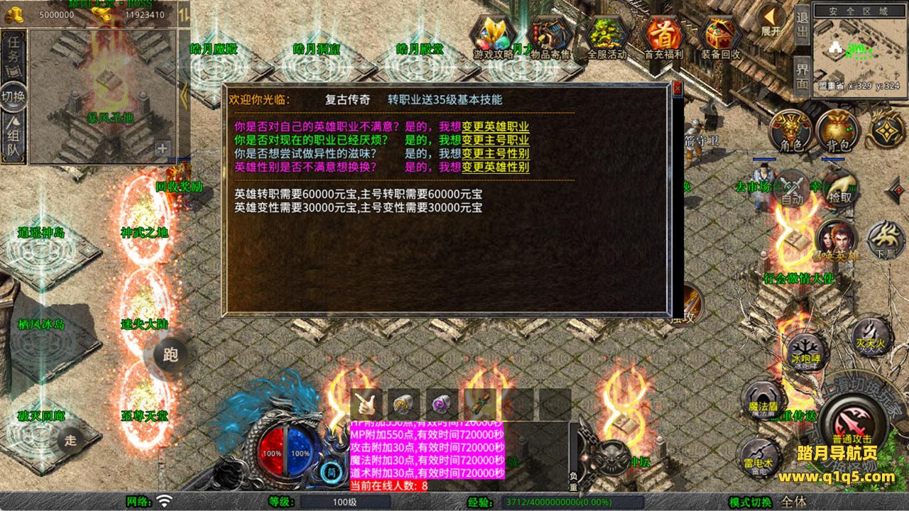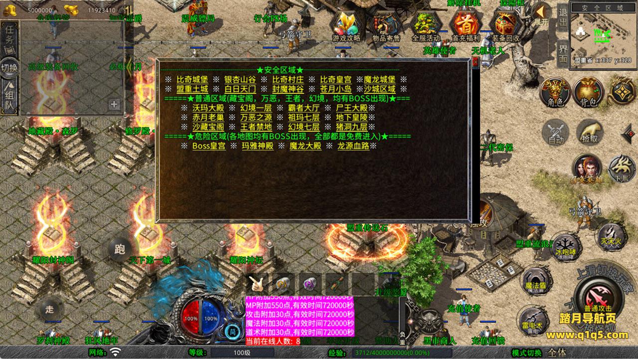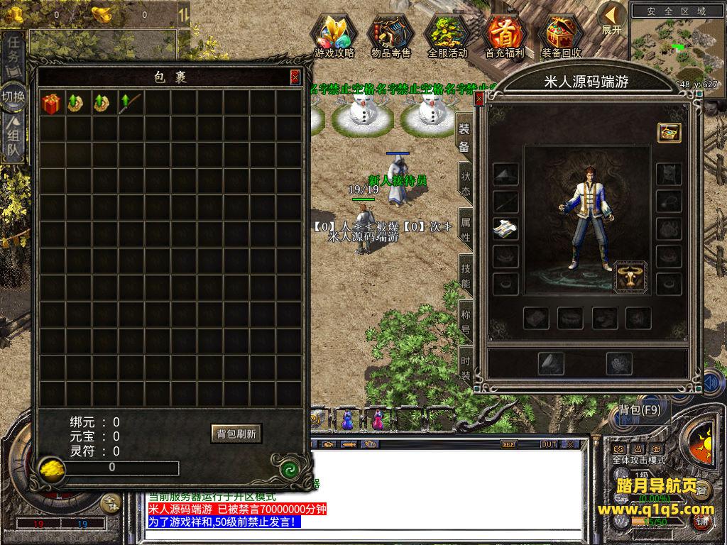 下面我们来测试下游戏里的功能看看。好了,其他功能就自行测试吧。更多的游戏资源可以访问www.q1q5.com下载,我们每款游戏资源均单独制作了独立的视频架设教程,让小白也可以快速上手游戏架设,快来体验自己做GM的乐趣吧!