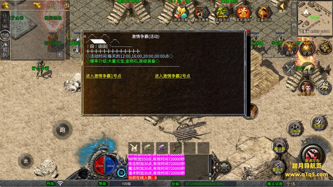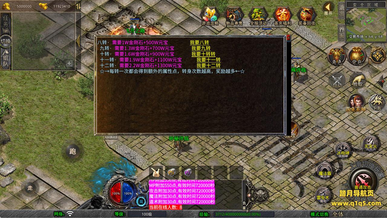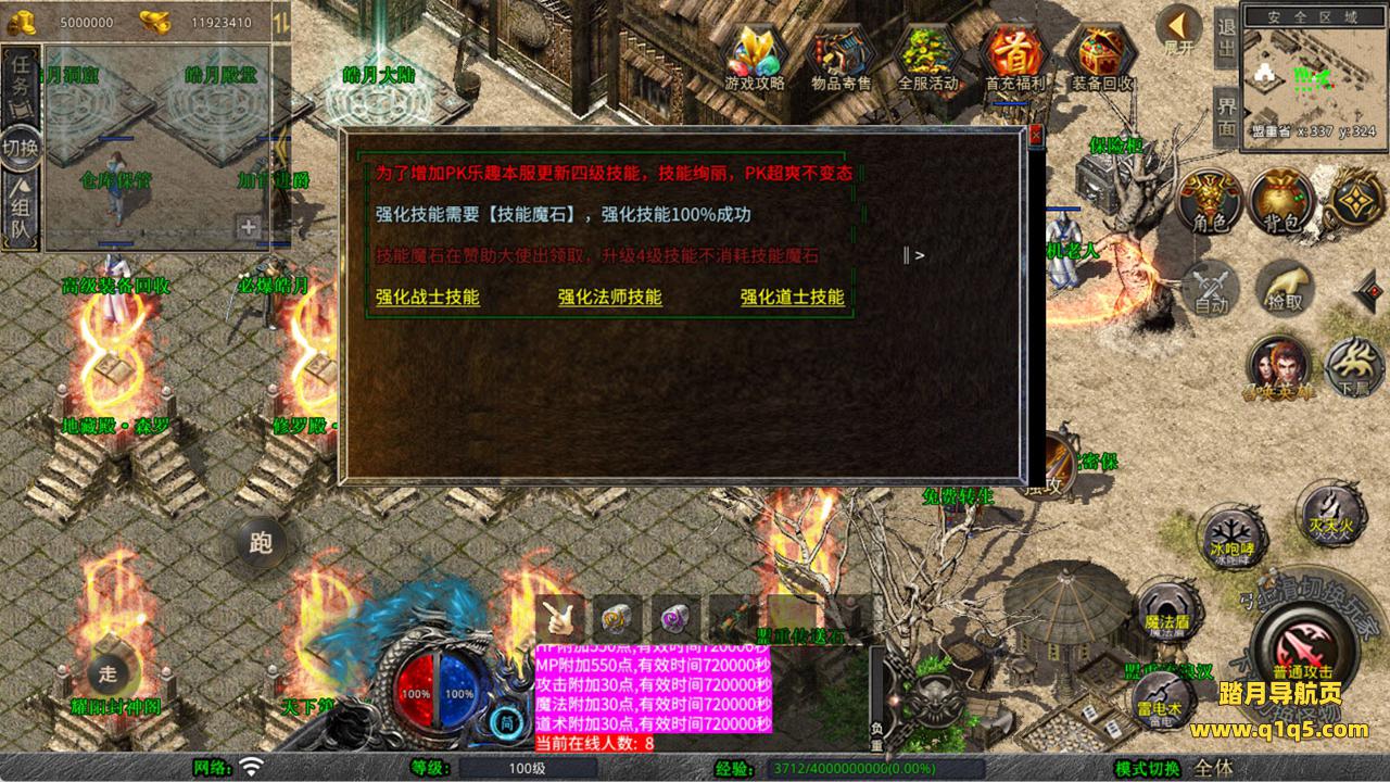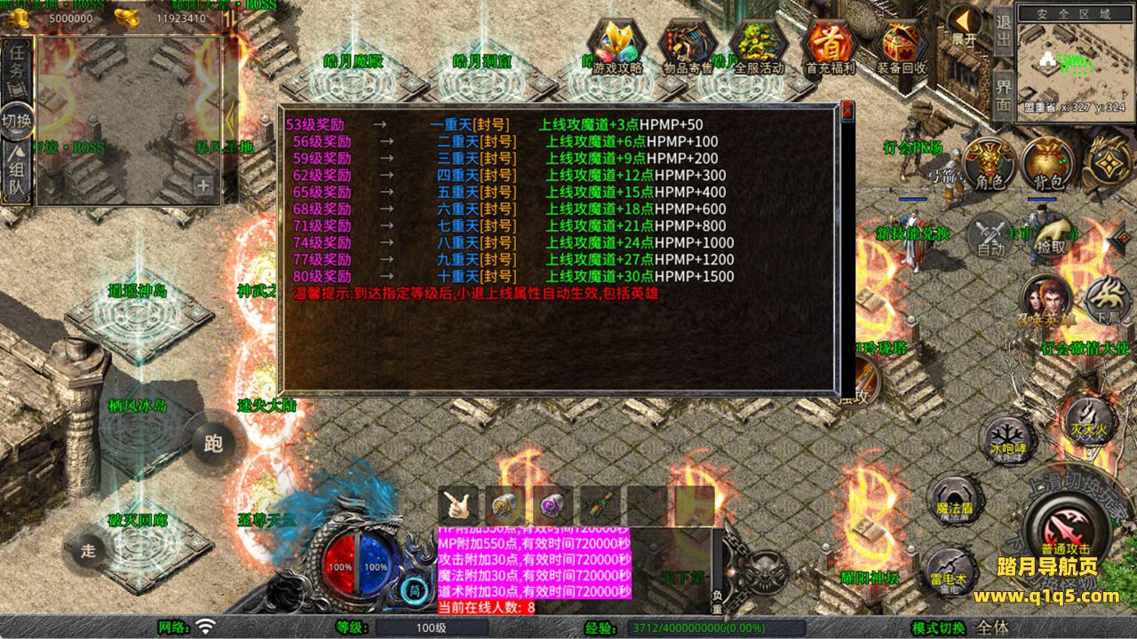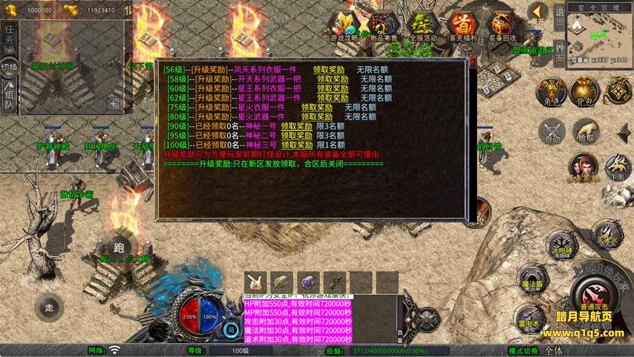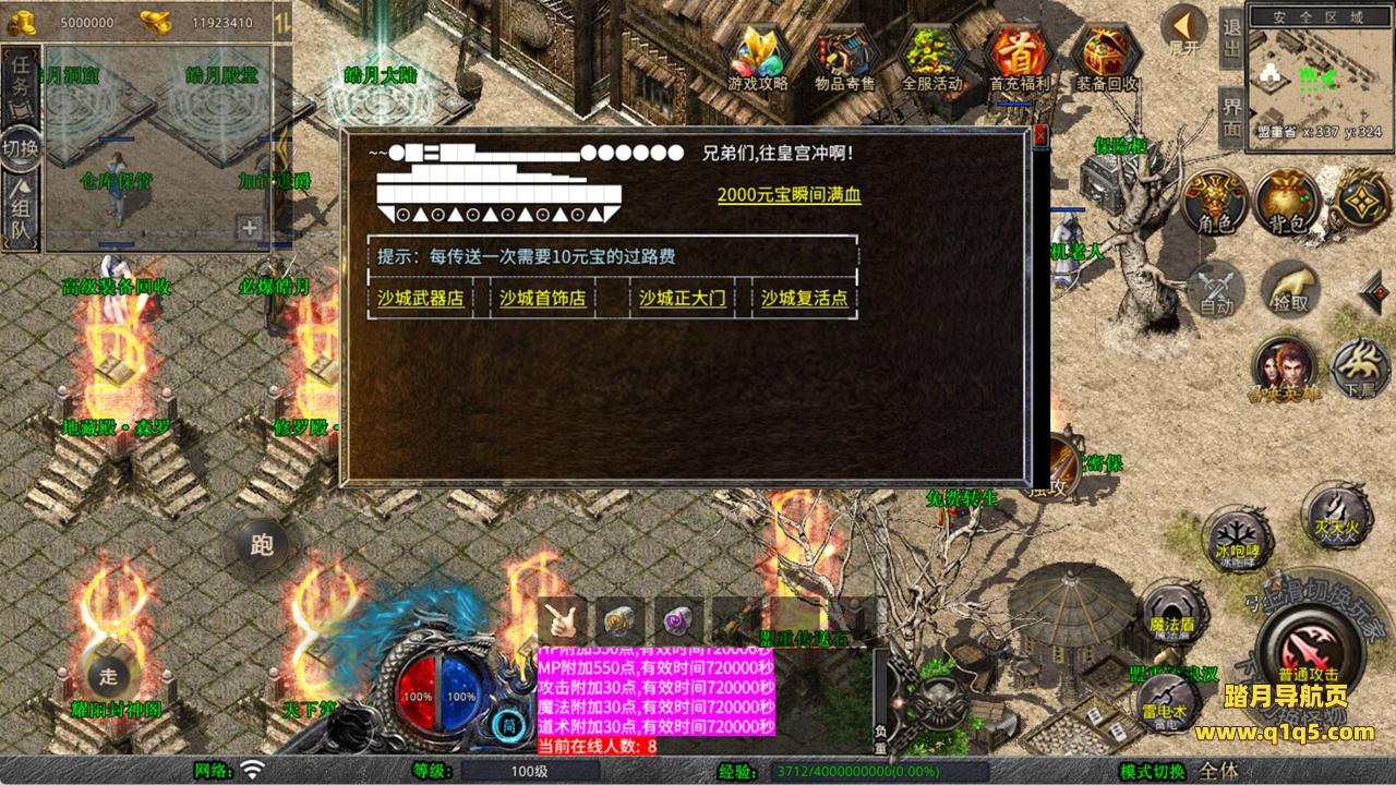 下面我们来测试下游戏里的功能看看。好了,其他功能就自行测试吧。更多的游戏资源可以访问www.q1q5.com下载,我们每款游戏资源均单独制作了独立的视频架设教程,让小白也可以快速上手游戏架设,快来体验自己做GM的乐趣吧!
