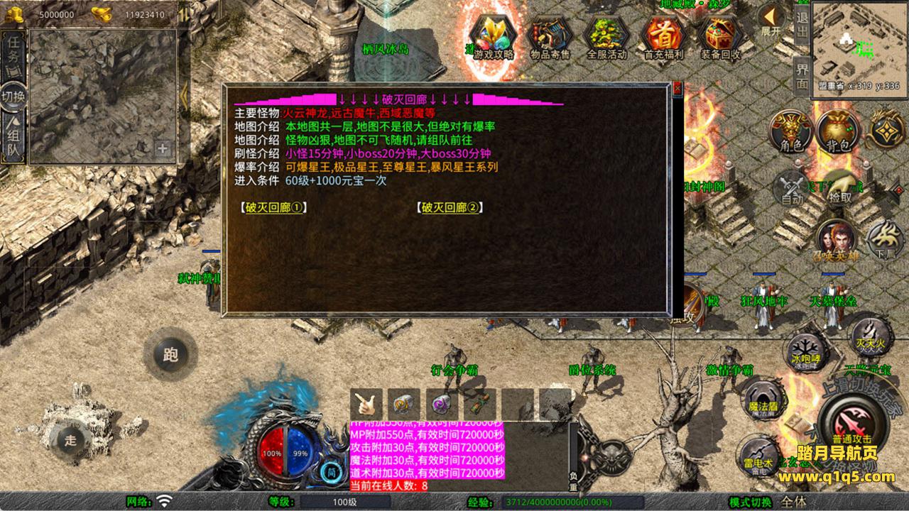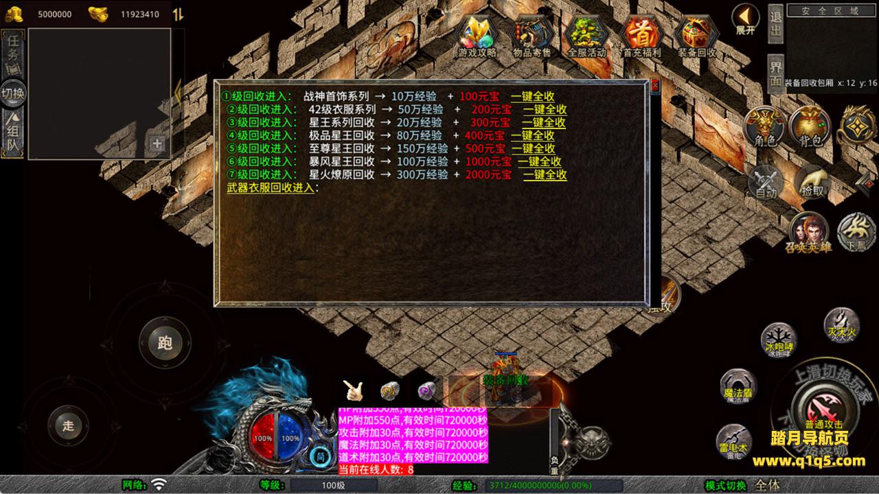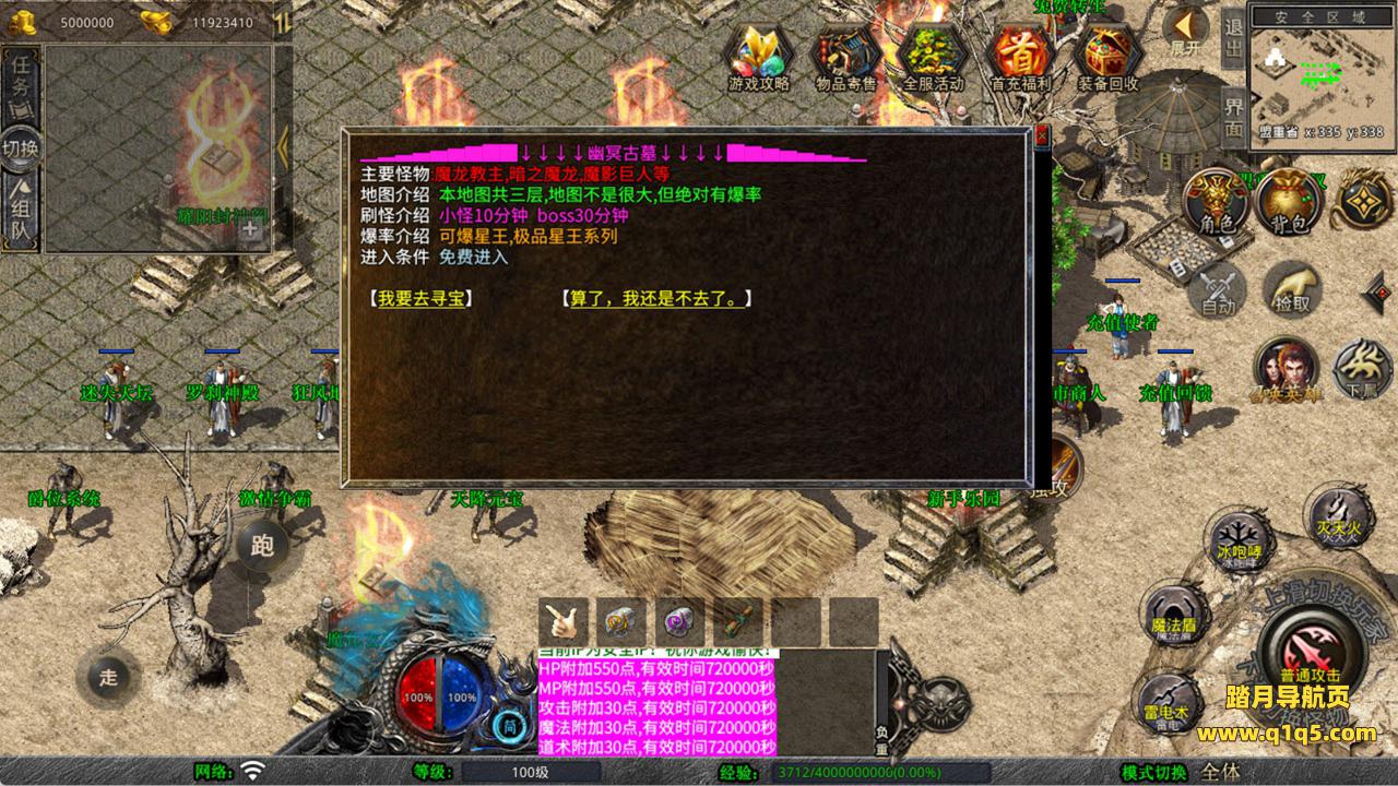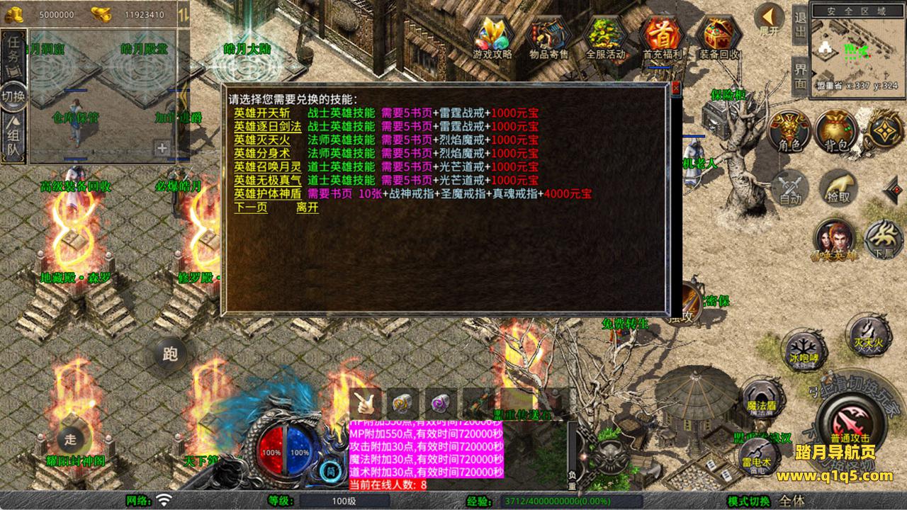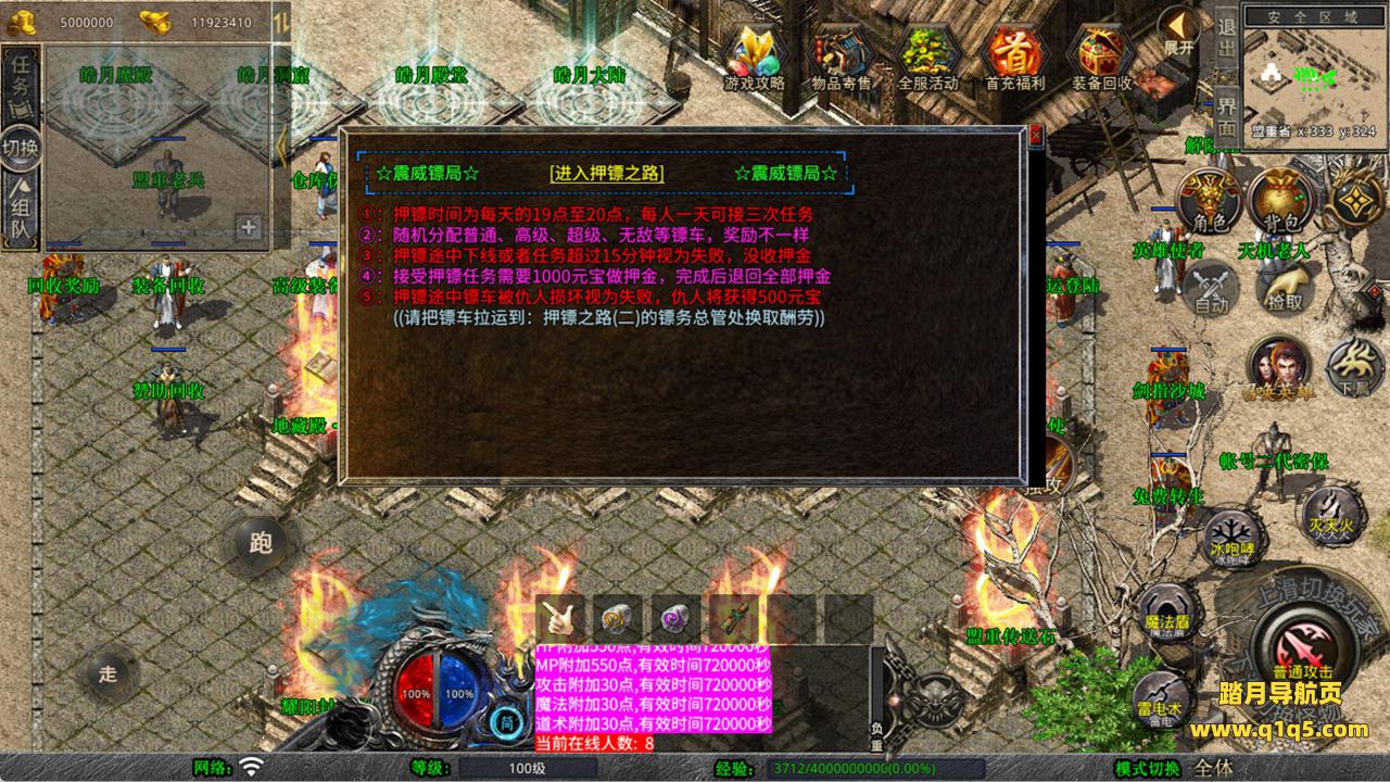 下面我们来测试下游戏里的功能看看。好了,其他功能就自行测试吧。更多的游戏资源可以访问www.q1q5.com下载,我们每款游戏资源均单独制作了独立的视频架设教程,让小白也可以快速上手游戏架设,快来体验自己做GM的乐趣吧!