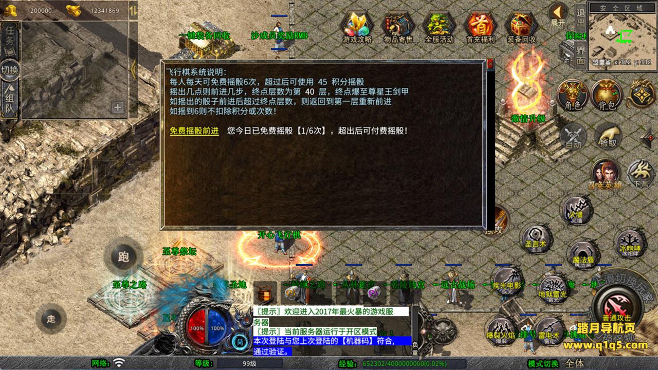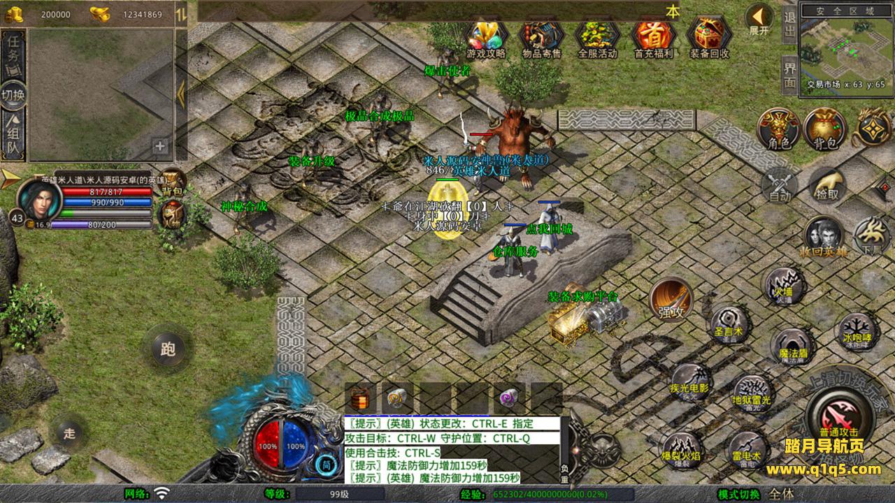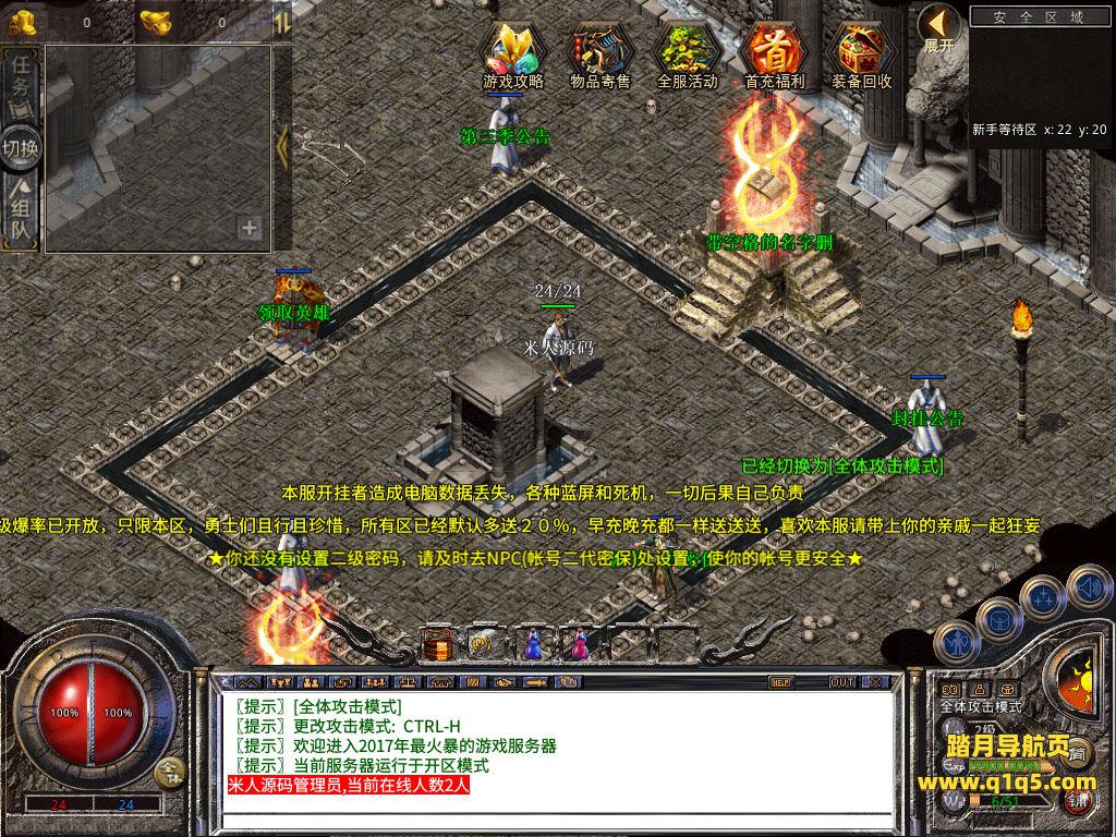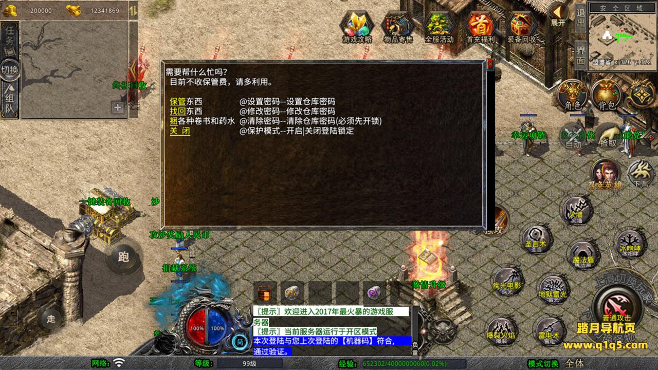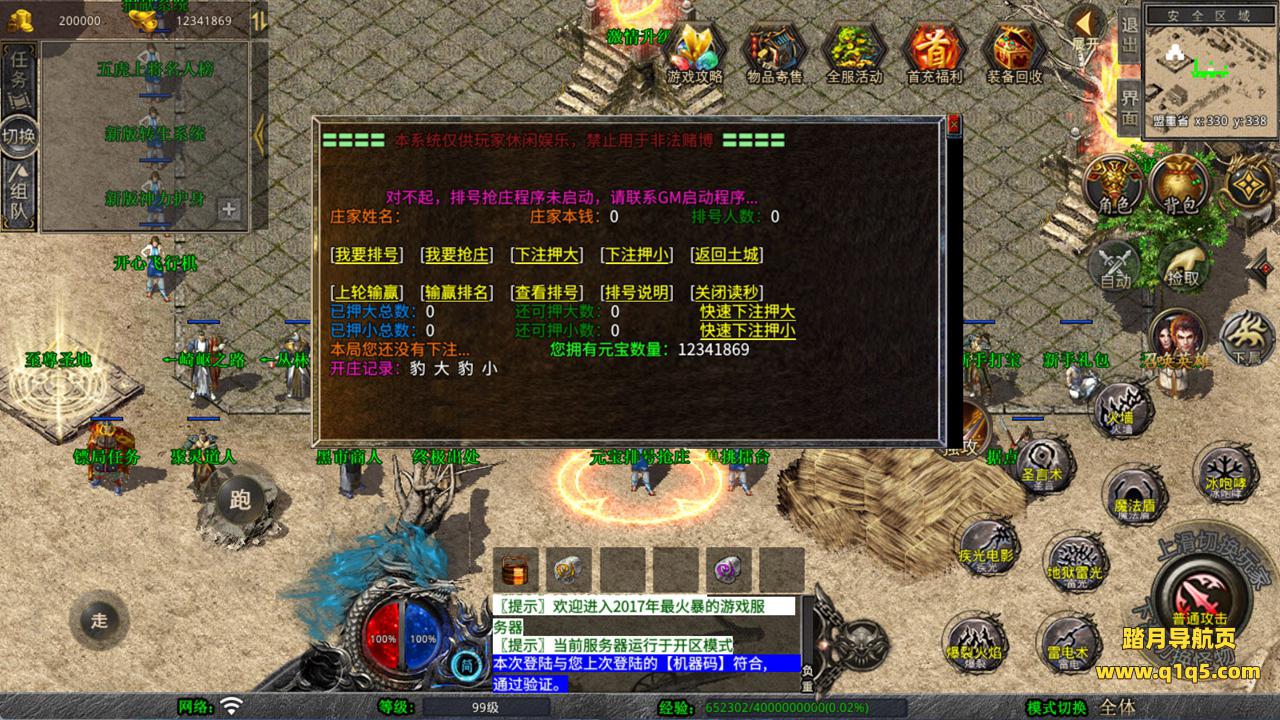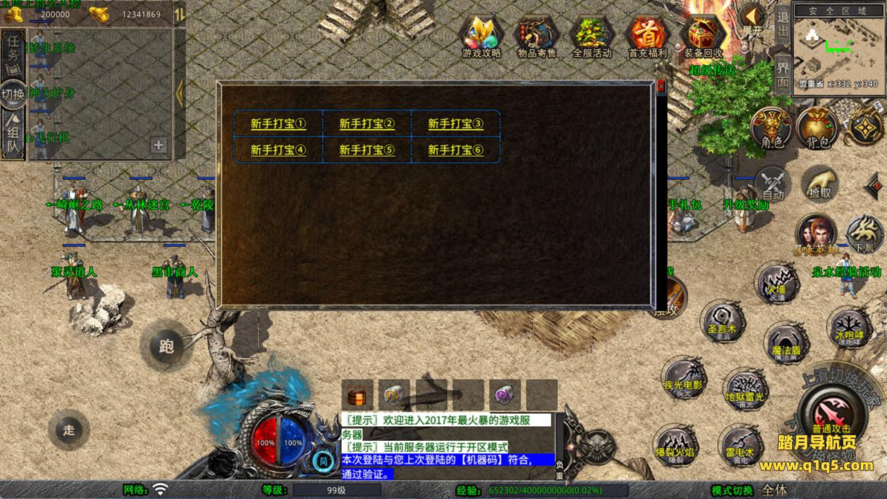 下面我们去测试下游戏里的功能看看。好了。其他功能就自行测试吧。更多的游戏资源可以访问www.q1q5.com下载,我们每款游戏资源均单独制作了独立的视频架设教程,让小白也可以快速上手游戏架设,快来体验自己做GM的乐趣吧!
