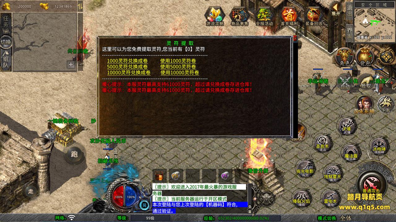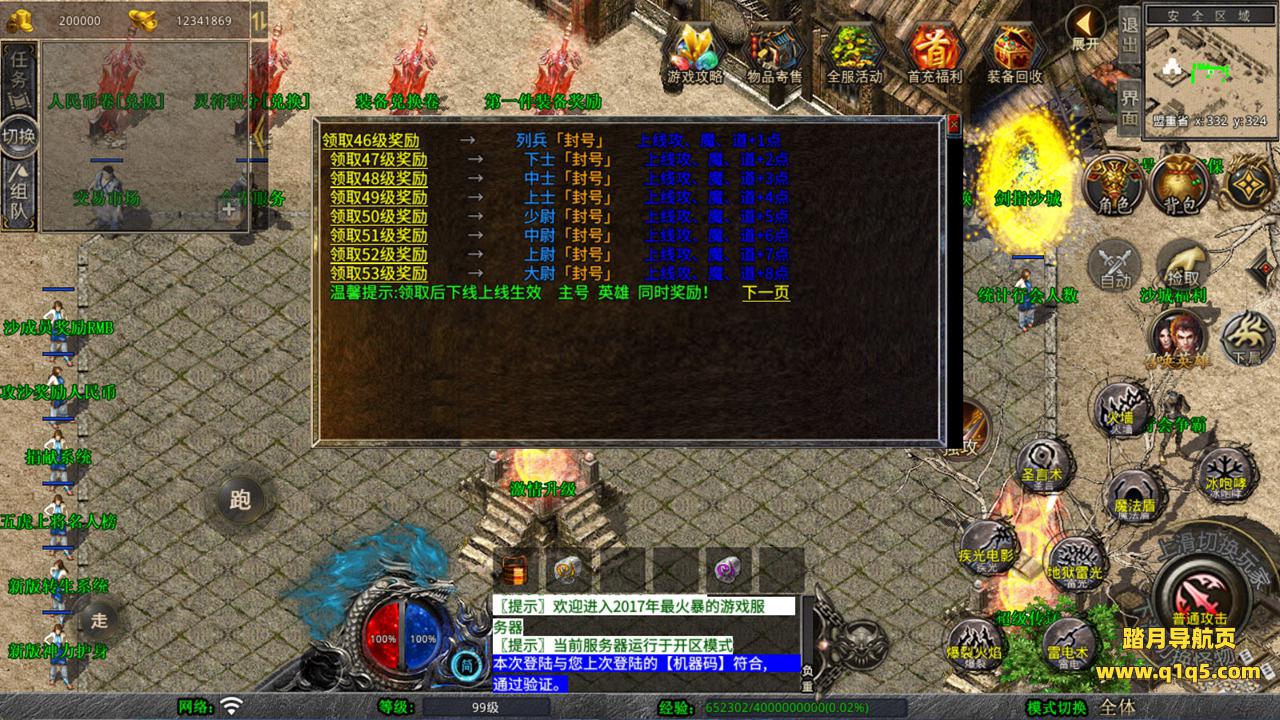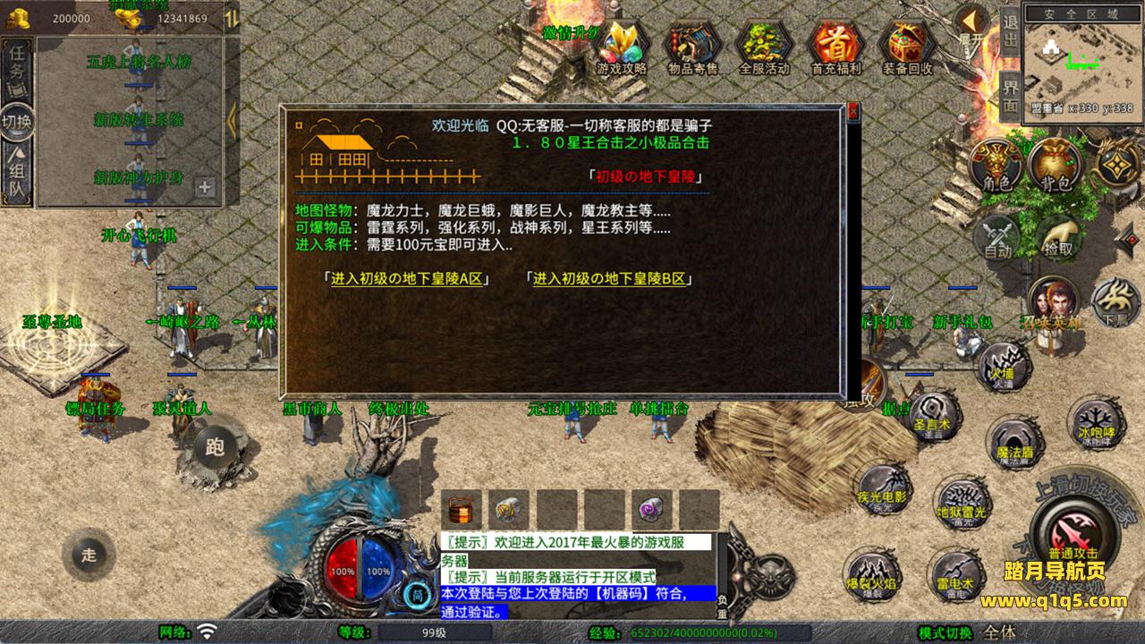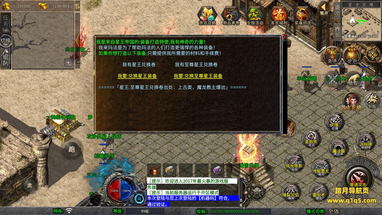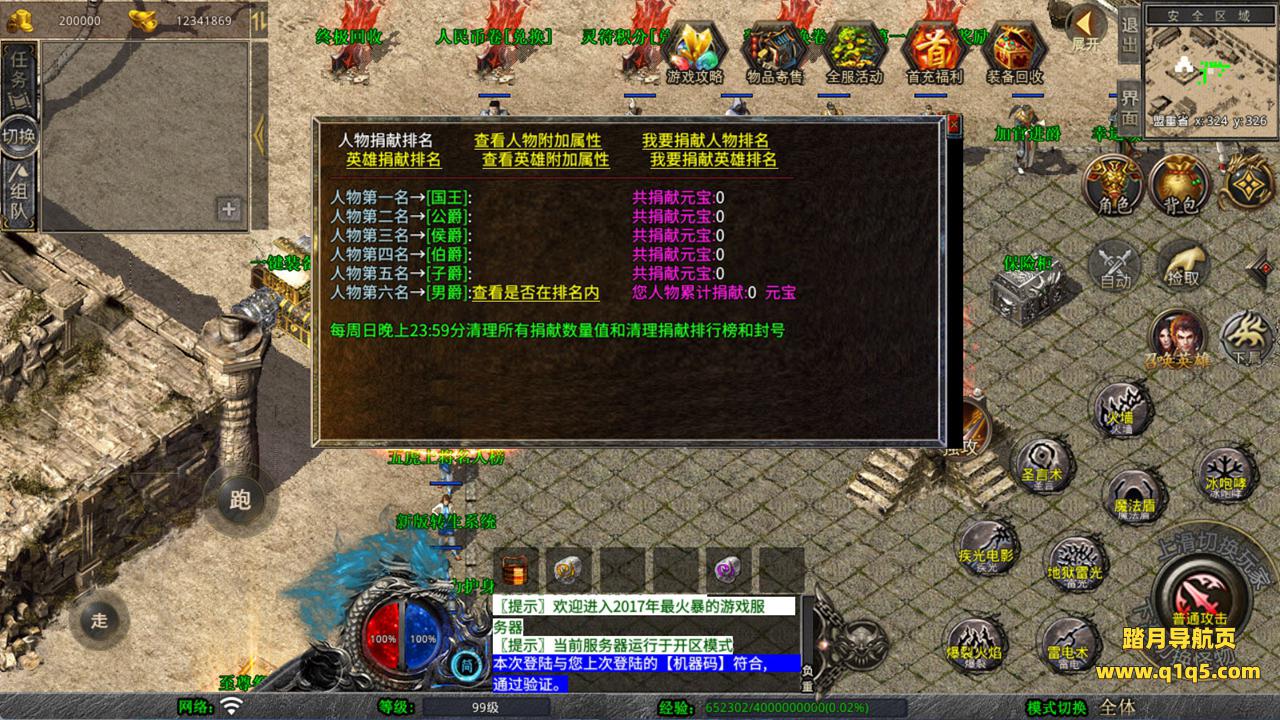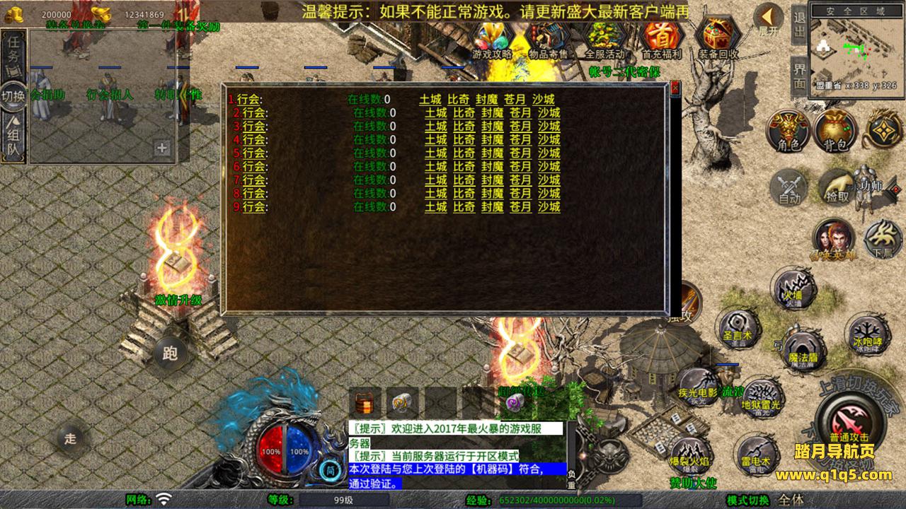 下面我们去测试下游戏里的功能看看。好了。其他功能就自行测试吧。更多的游戏资源可以访问www.q1q5.com下载,我们每款游戏资源均单独制作了独立的视频架设教程,让小白也可以快速上手游戏架设,快来体验自己做GM的乐趣吧!