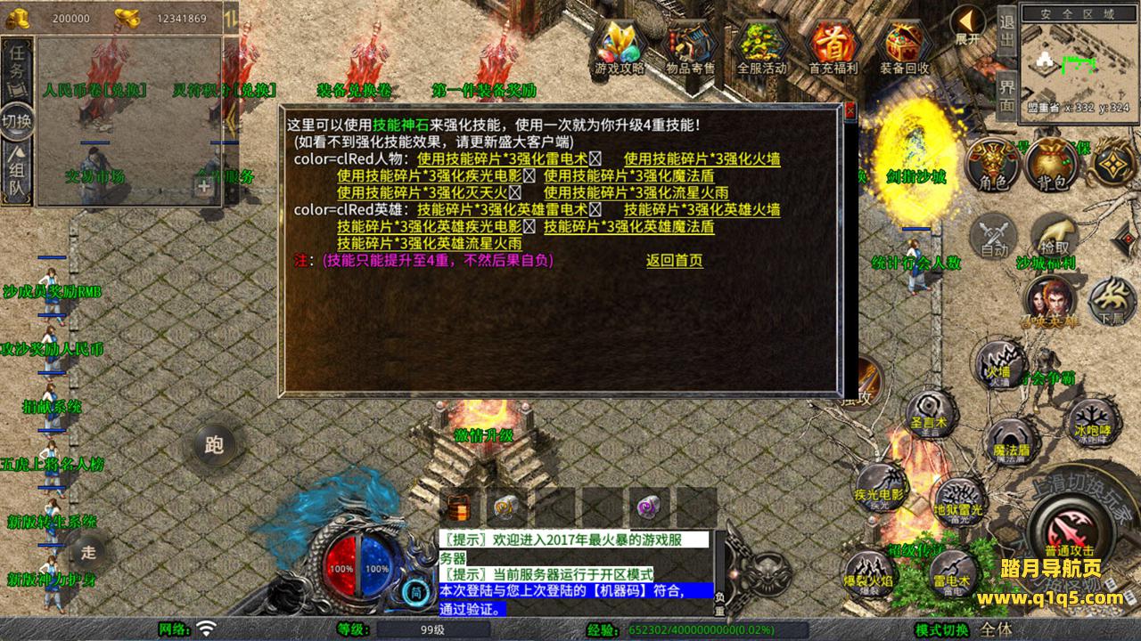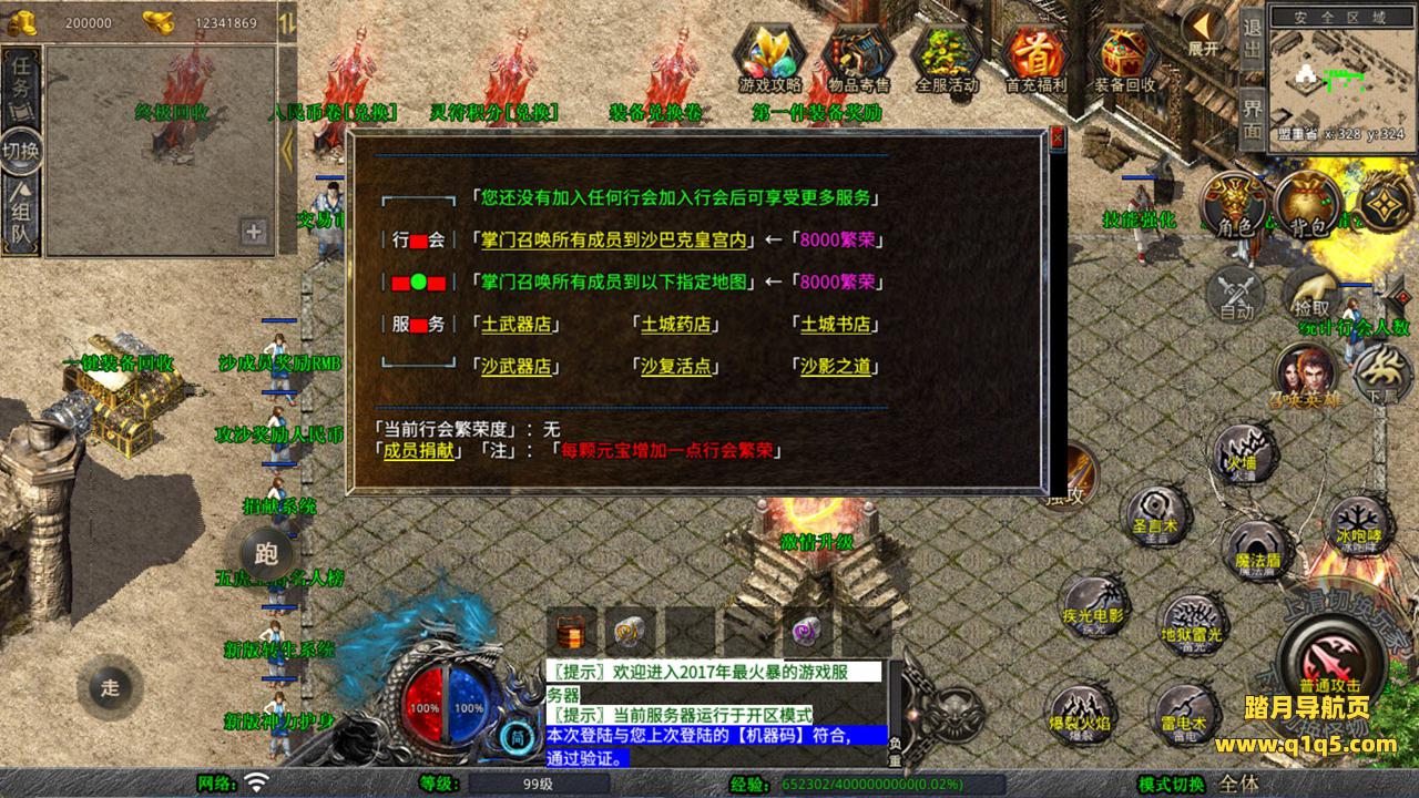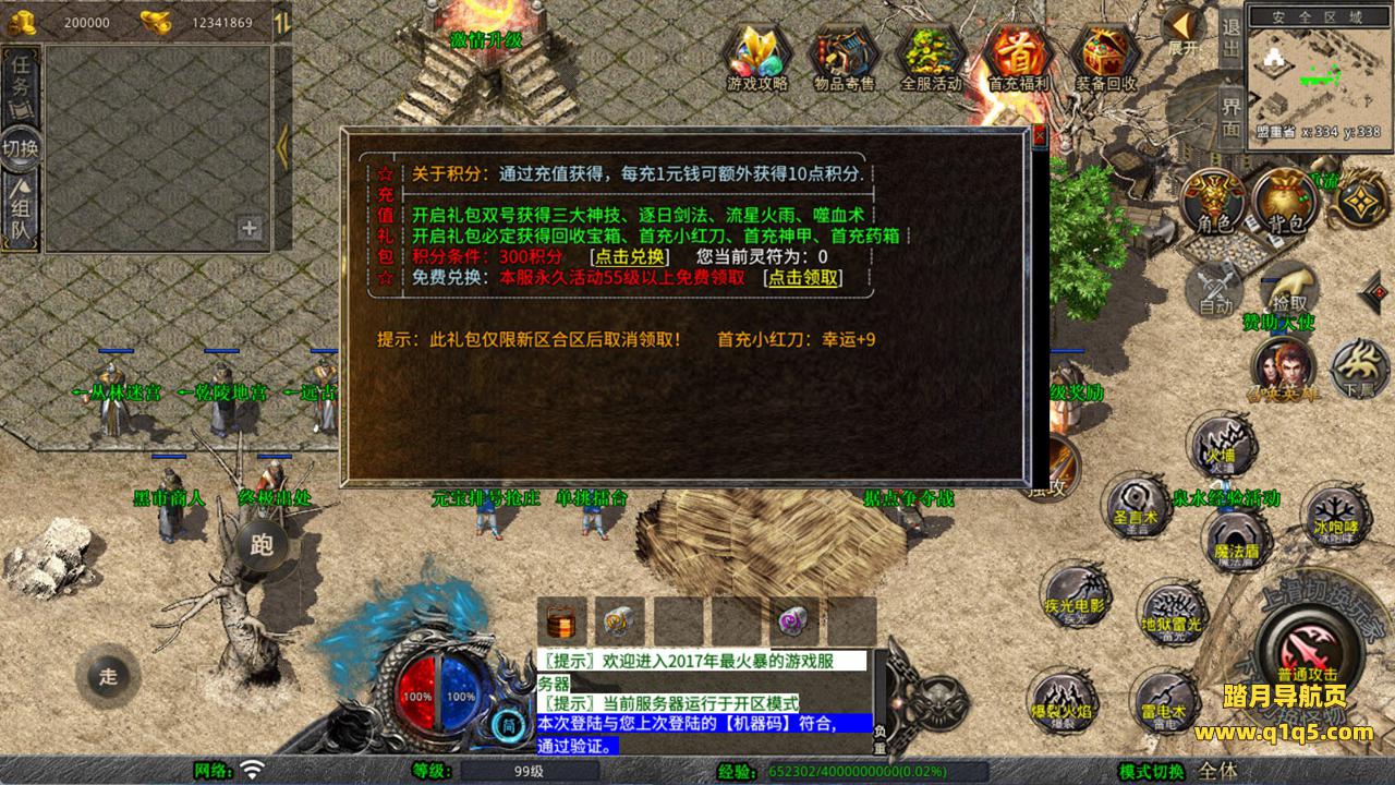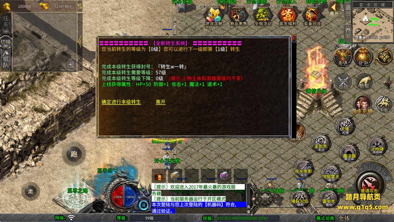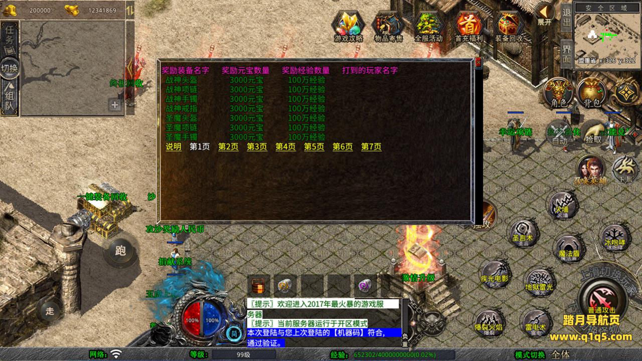 下面我们去测试下游戏里的功能看看。好了。其他功能就自行测试吧。更多的游戏资源可以访问www.q1q5.com下载,我们每款游戏资源均单独制作了独立的视频架设教程,让小白也可以快速上手游戏架设,快来体验自己做GM的乐趣吧!