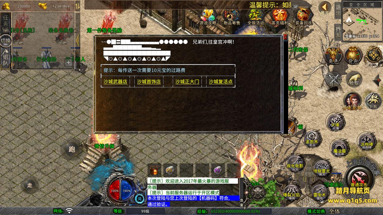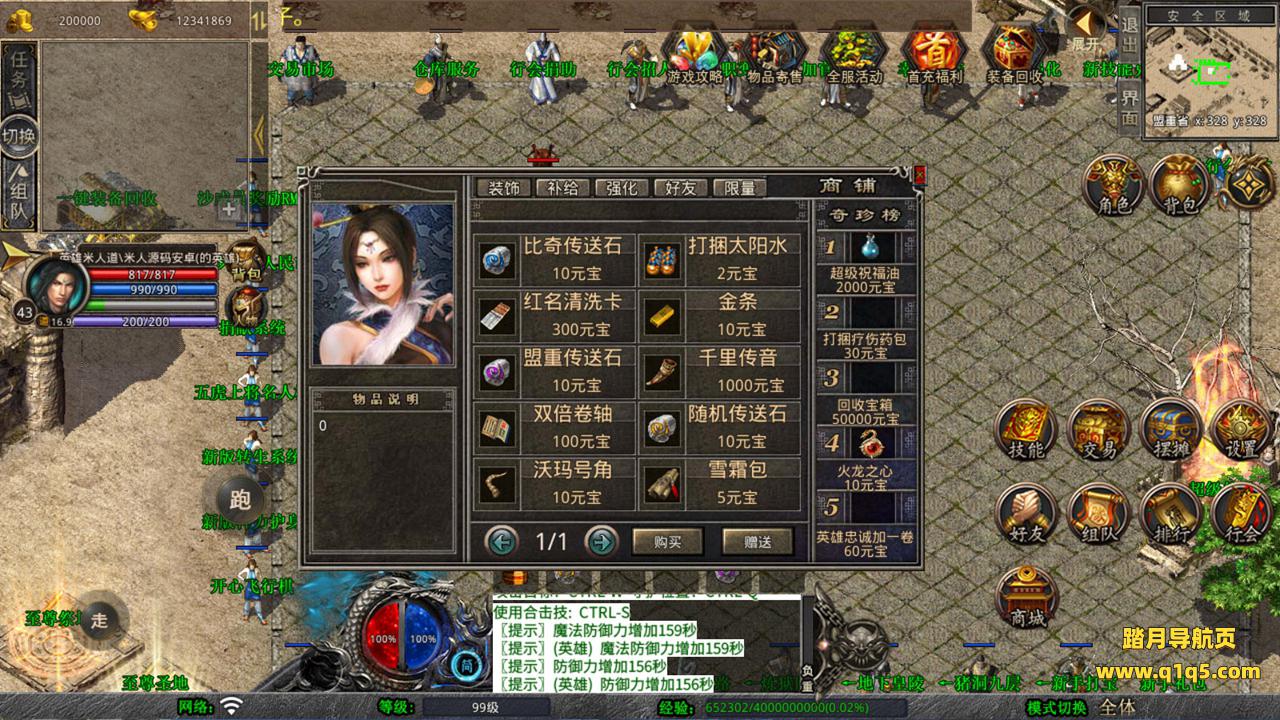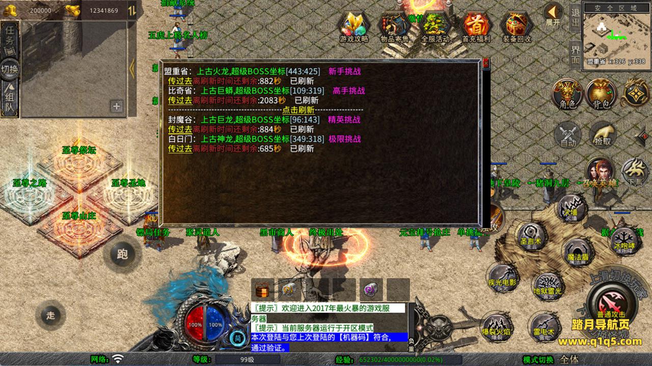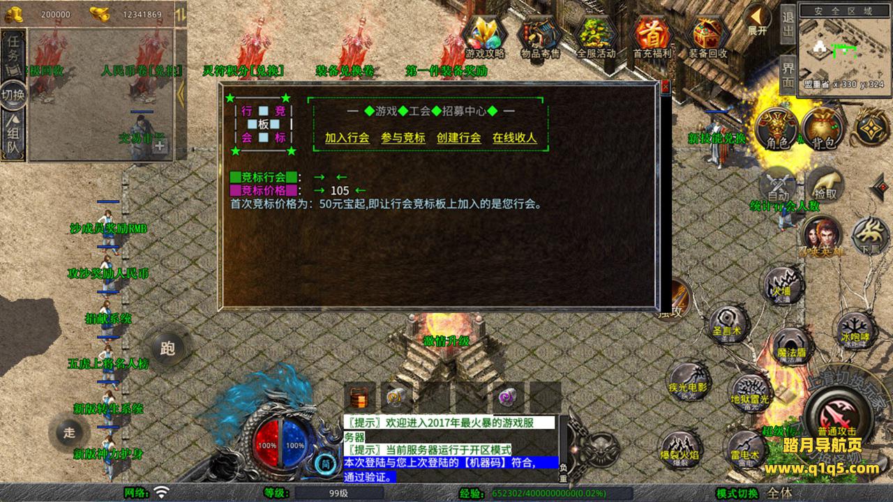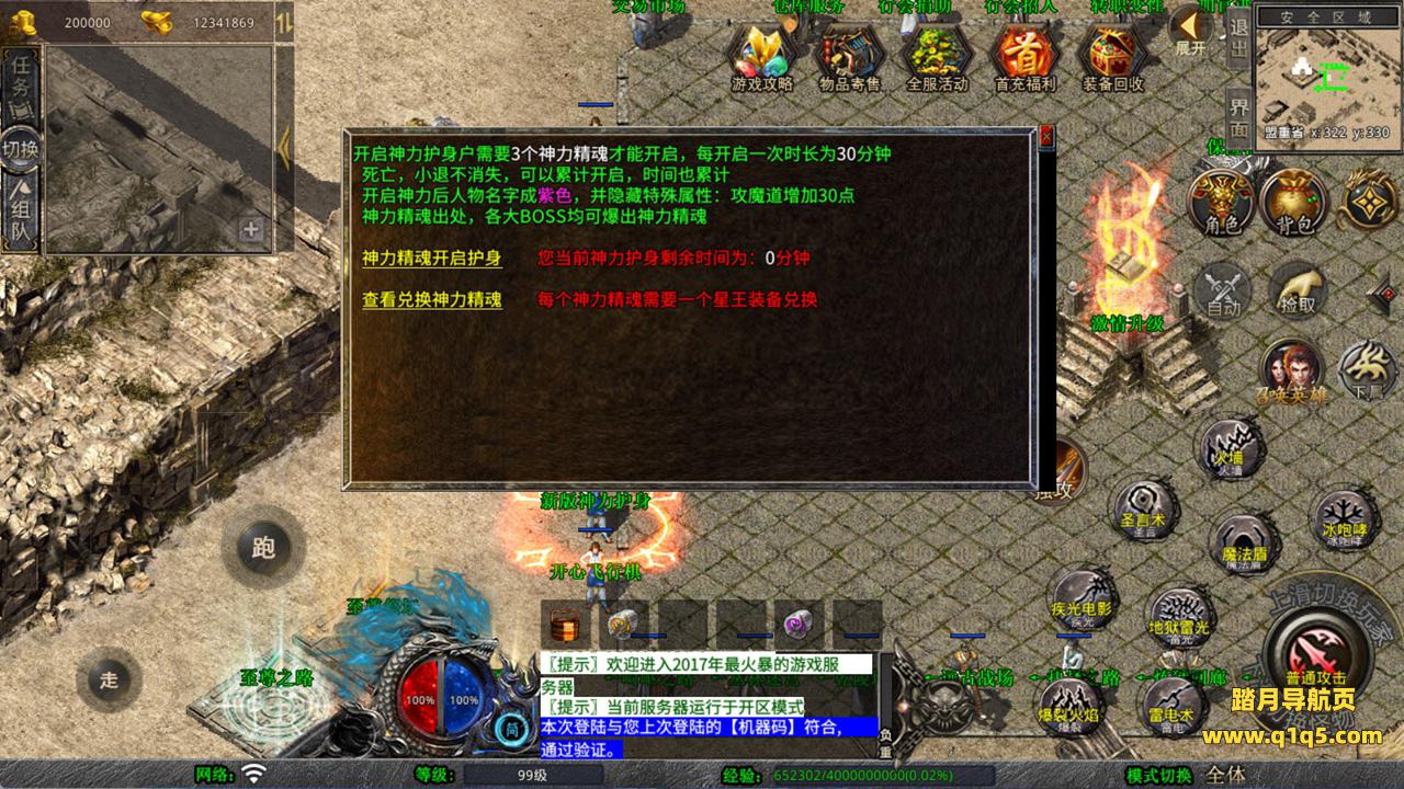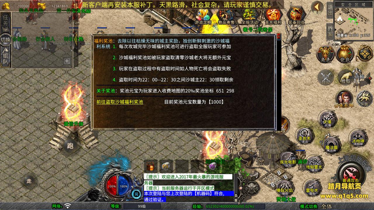 下面我们去测试下游戏里的功能看看。好了。其他功能就自行测试吧。更多的游戏资源可以访问www.q1q5.com下载,我们每款游戏资源均单独制作了独立的视频架设教程,让小白也可以快速上手游戏架设,快来体验自己做GM的乐趣吧!