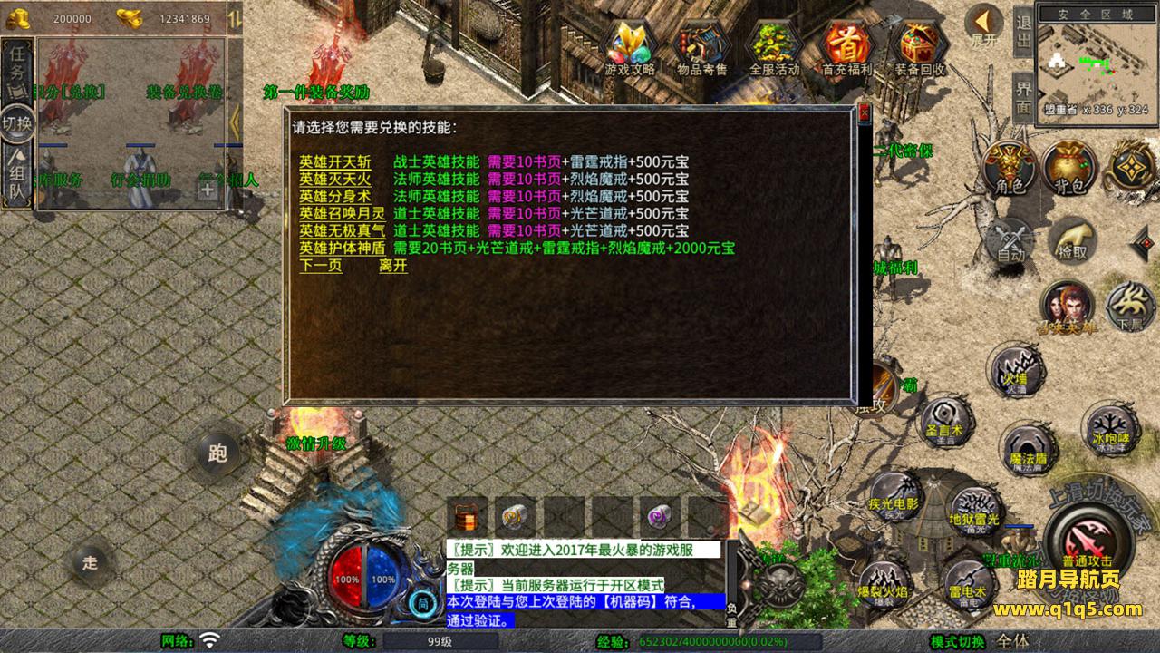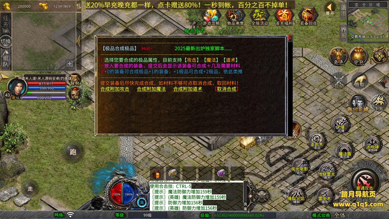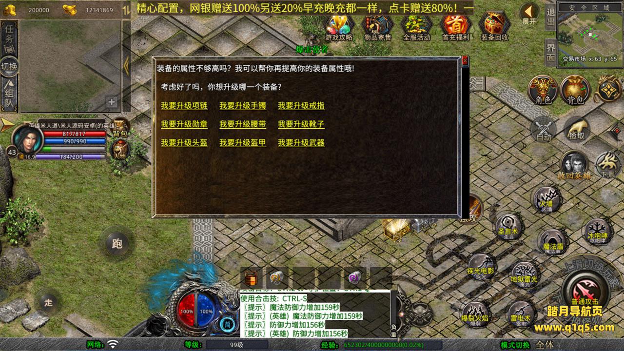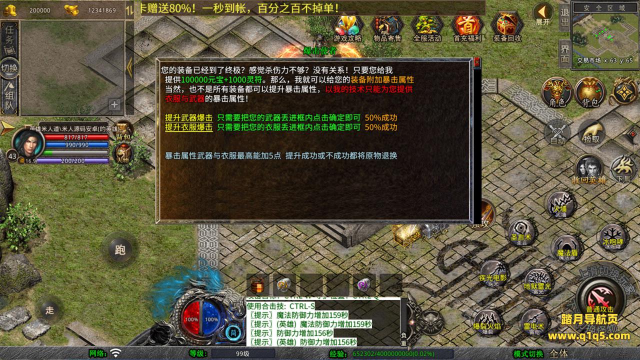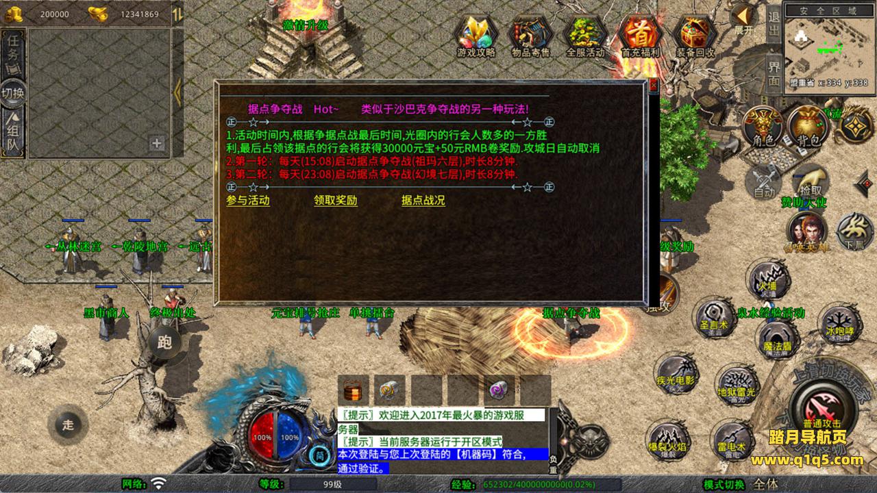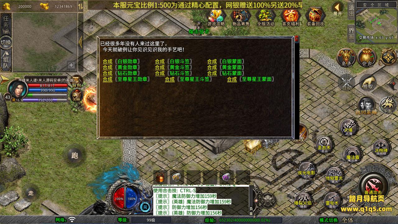 下面我们去测试下游戏里的功能看看。好了。其他功能就自行测试吧。更多的游戏资源可以访问www.q1q5.com下载,我们每款游戏资源均单独制作了独立的视频架设教程,让小白也可以快速上手游戏架设,快来体验自己做GM的乐趣吧!