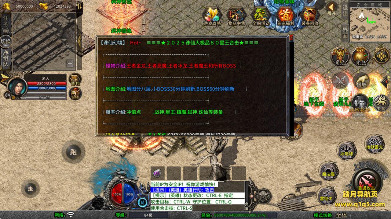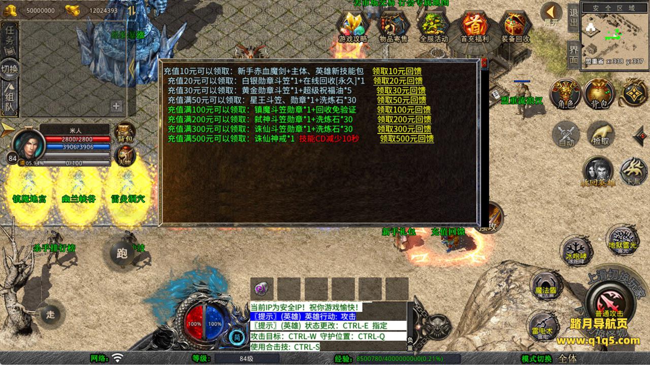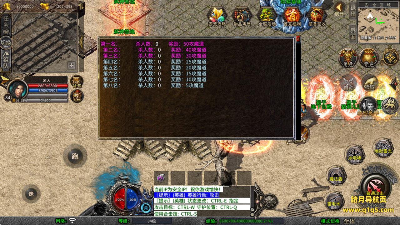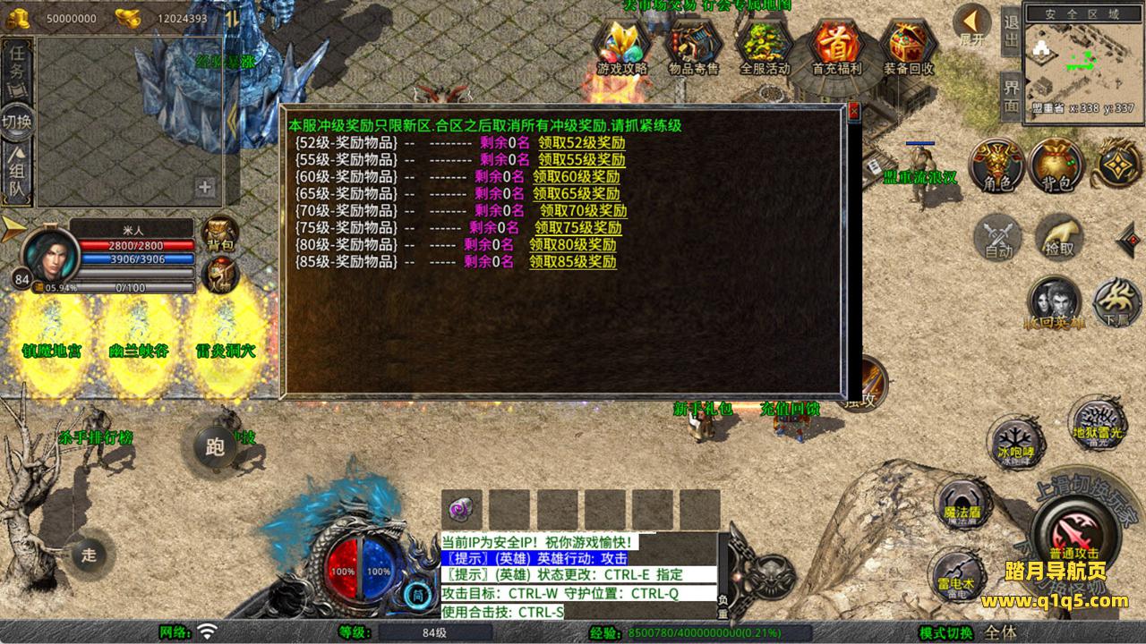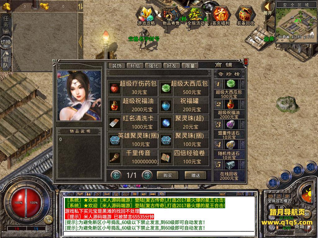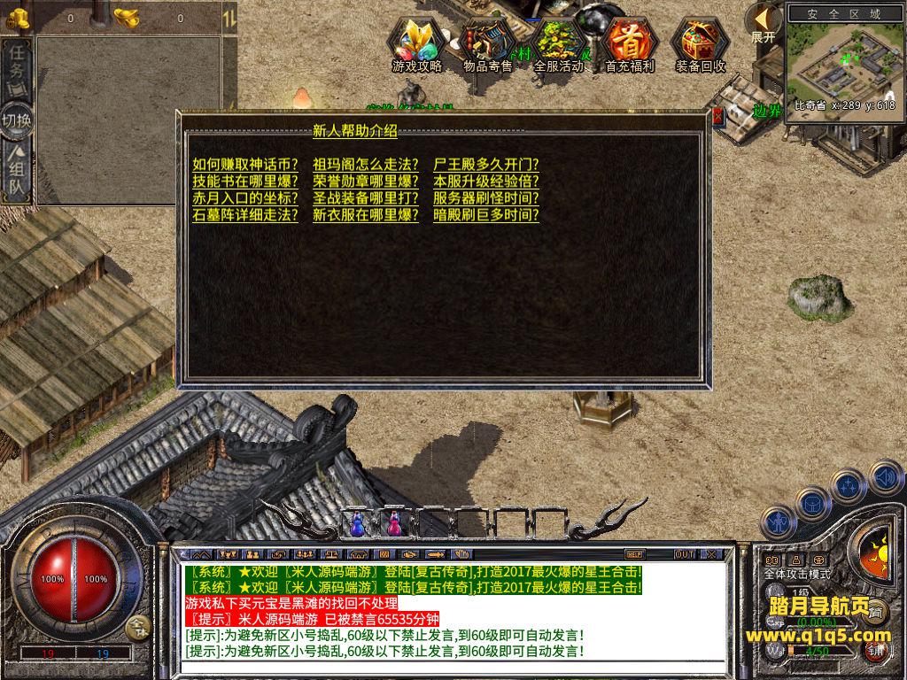 下面我们来测试下游戏里的功能看看。好了,其他功能就自行测试吧。更多的游戏资源可以访问www.q1q5.com下载,我们每款游戏资源均单独制作了独立的视频架设教程,让小白也可以快速上手游戏架设,快来体验自己做GM的乐趣吧!