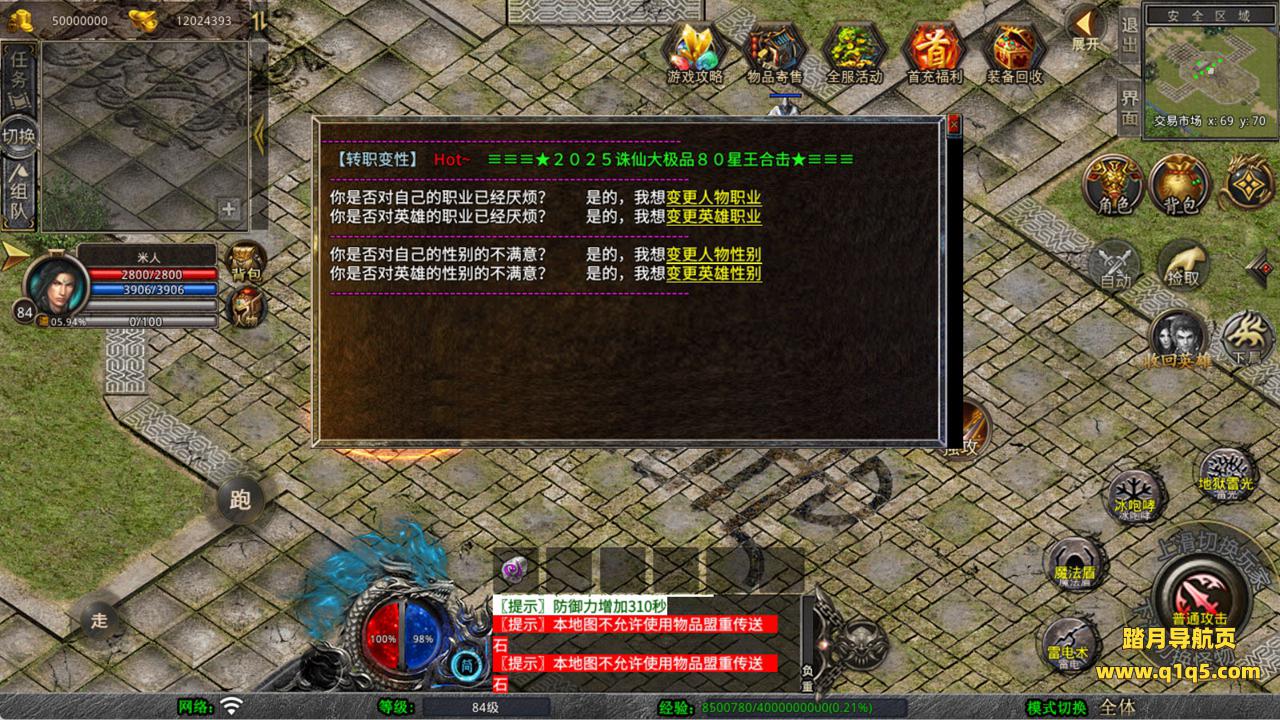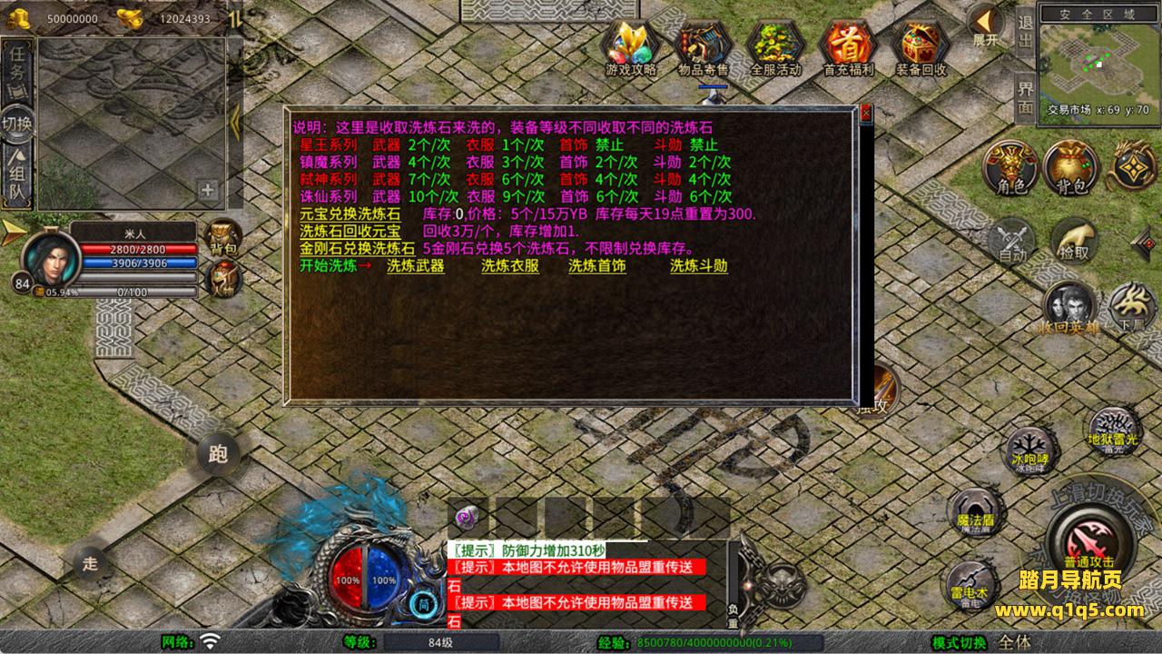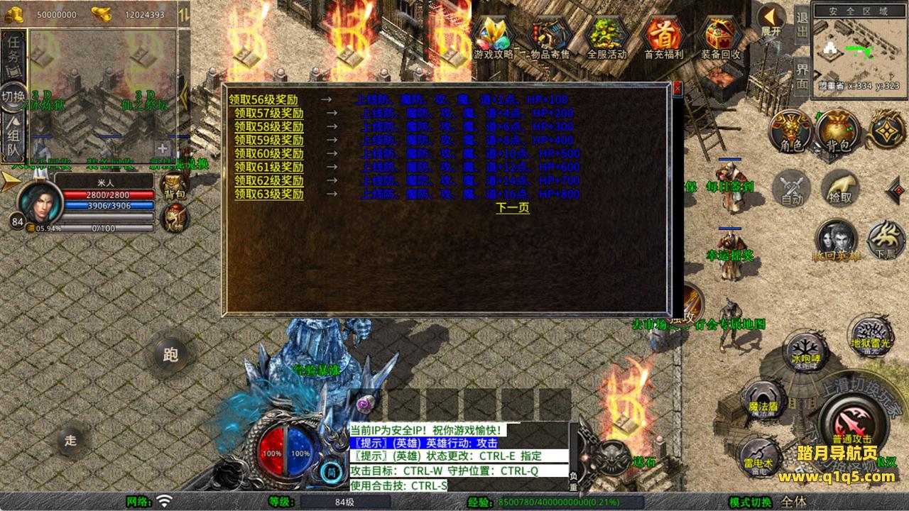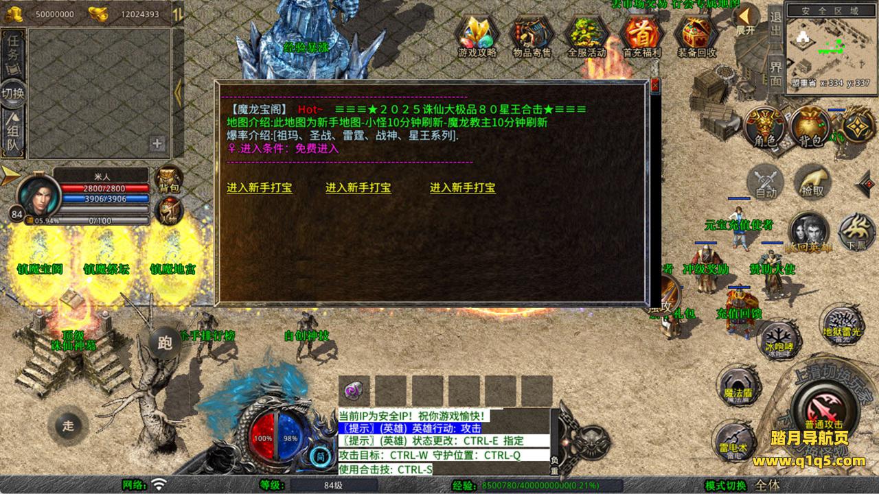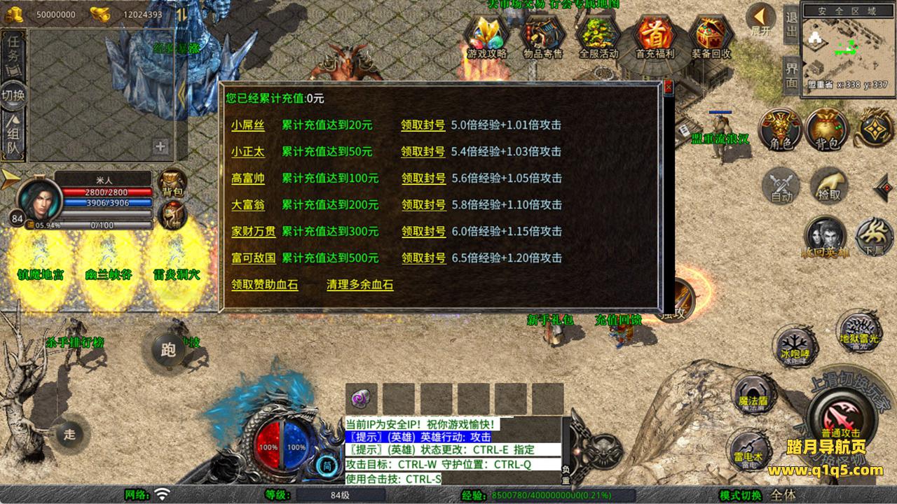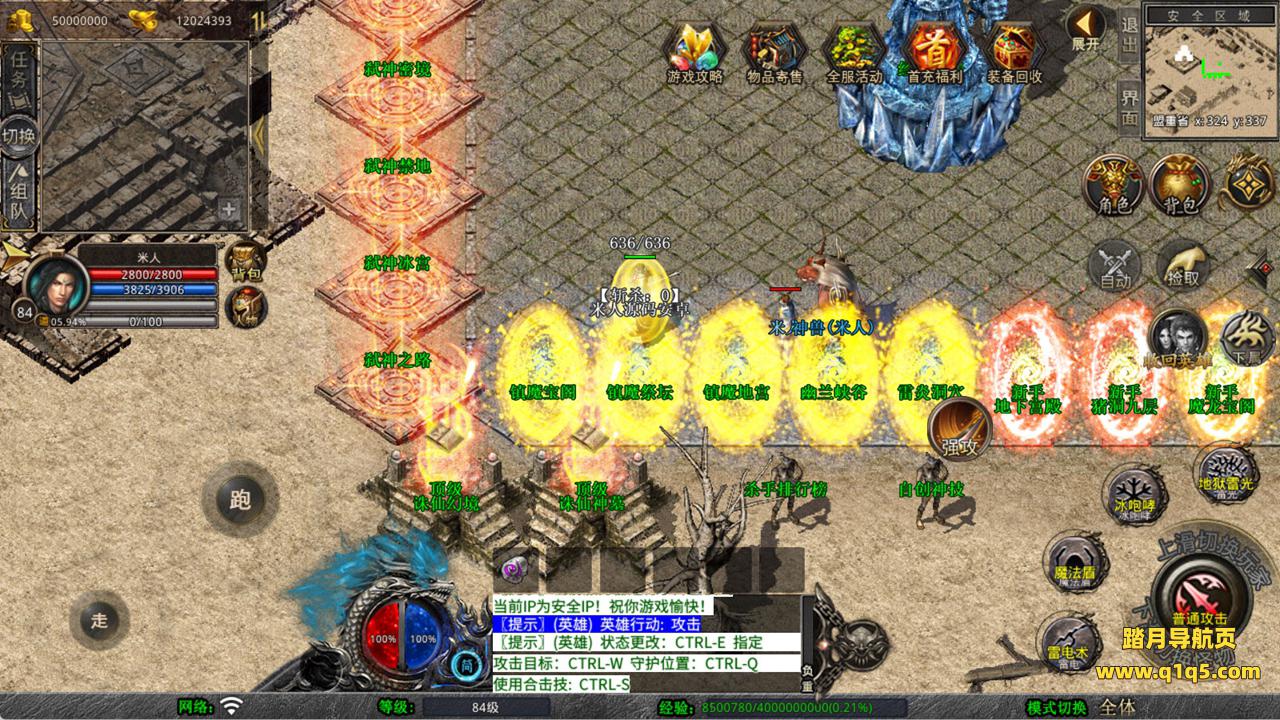 下面我们来测试下游戏里的功能看看。好了,其他功能就自行测试吧。更多的游戏资源可以访问www.q1q5.com下载,我们每款游戏资源均单独制作了独立的视频架设教程,让小白也可以快速上手游戏架设,快来体验自己做GM的乐趣吧!
