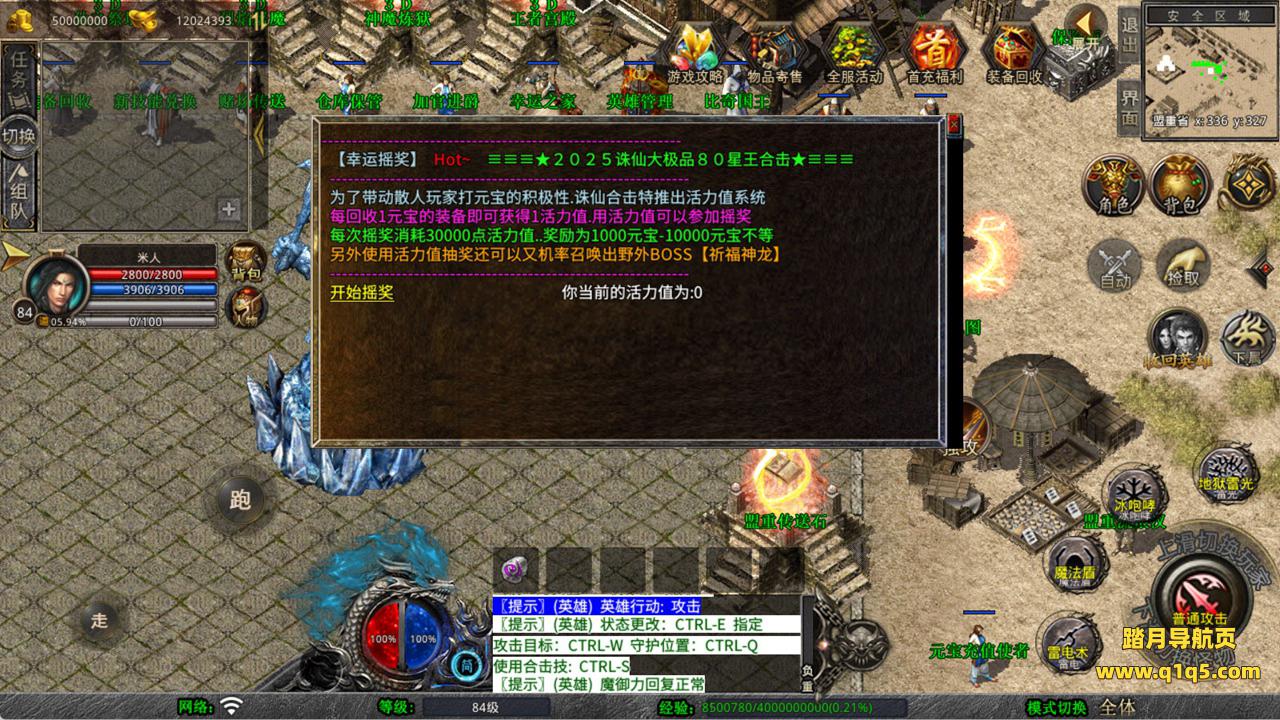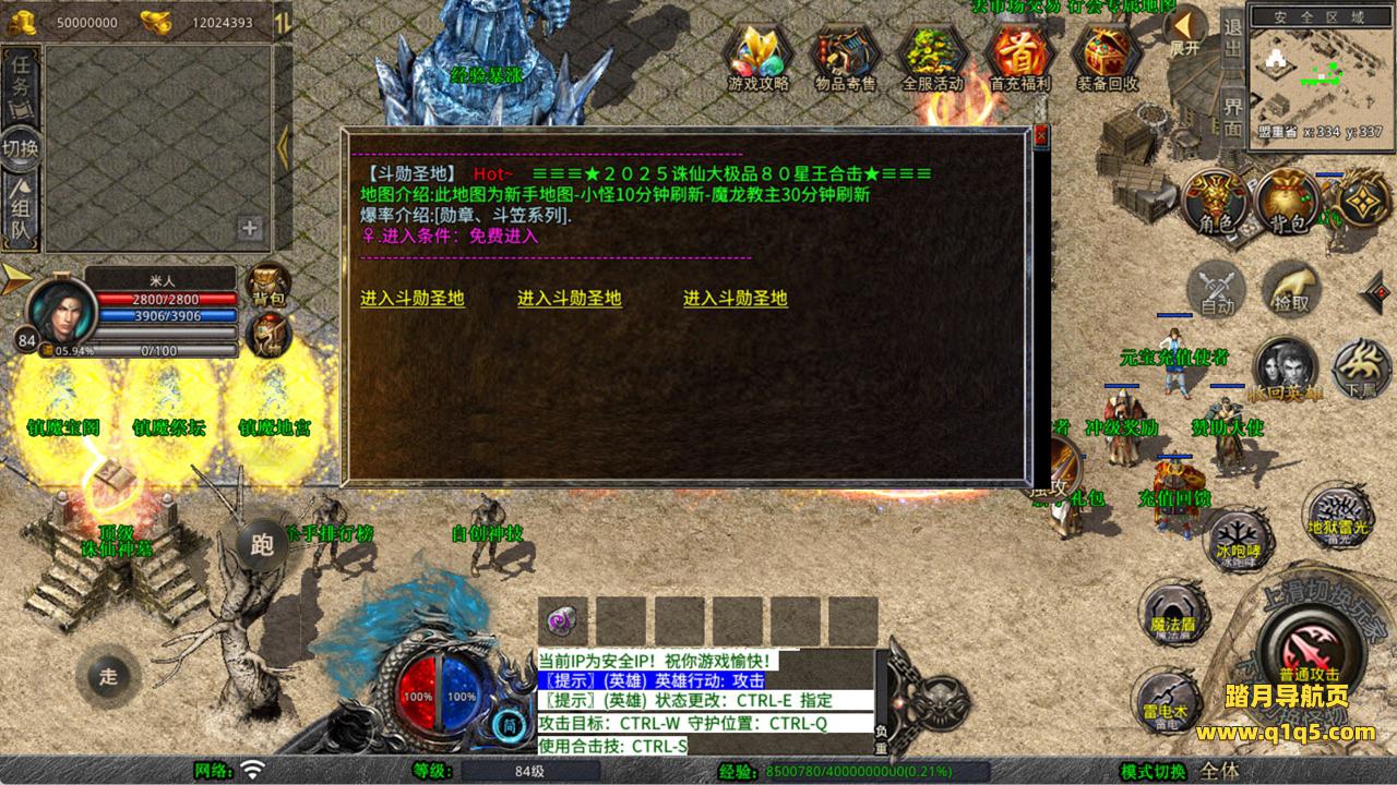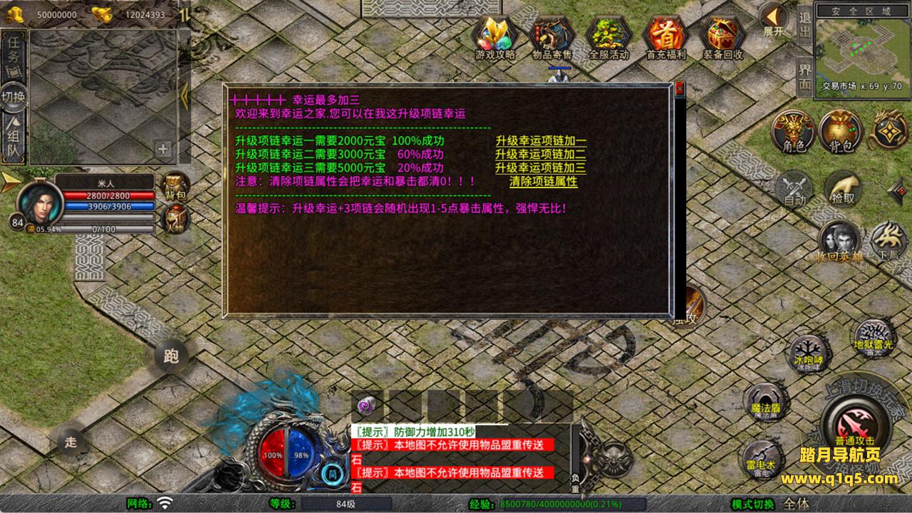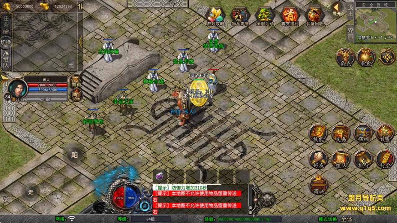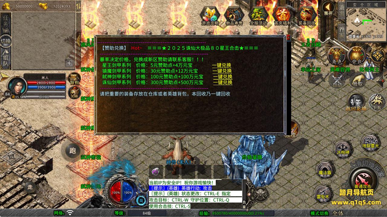 下面我们来测试下游戏里的功能看看。好了,其他功能就自行测试吧。更多的游戏资源可以访问www.q1q5.com下载,我们每款游戏资源均单独制作了独立的视频架设教程,让小白也可以快速上手游戏架设,快来体验自己做GM的乐趣吧!