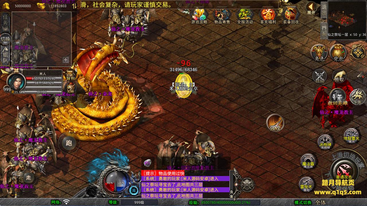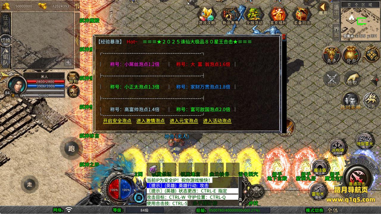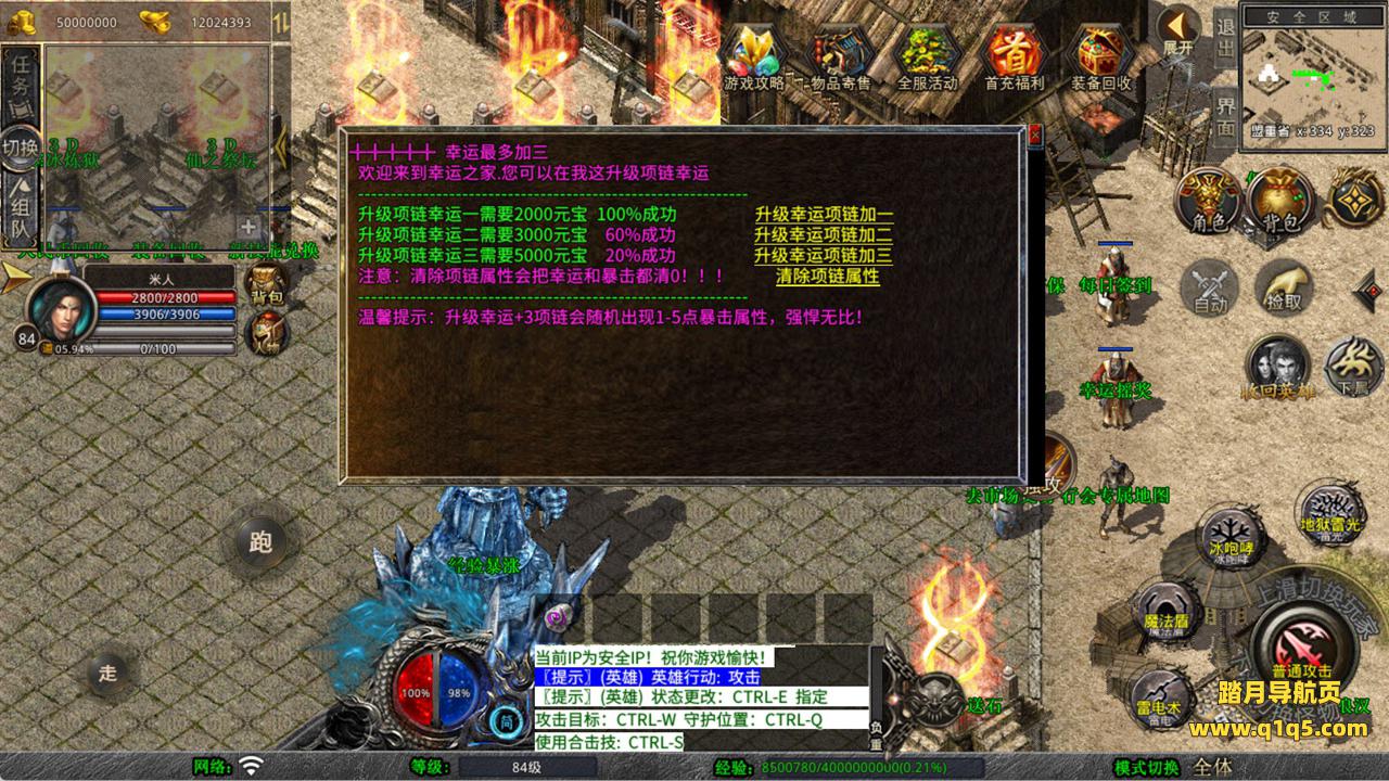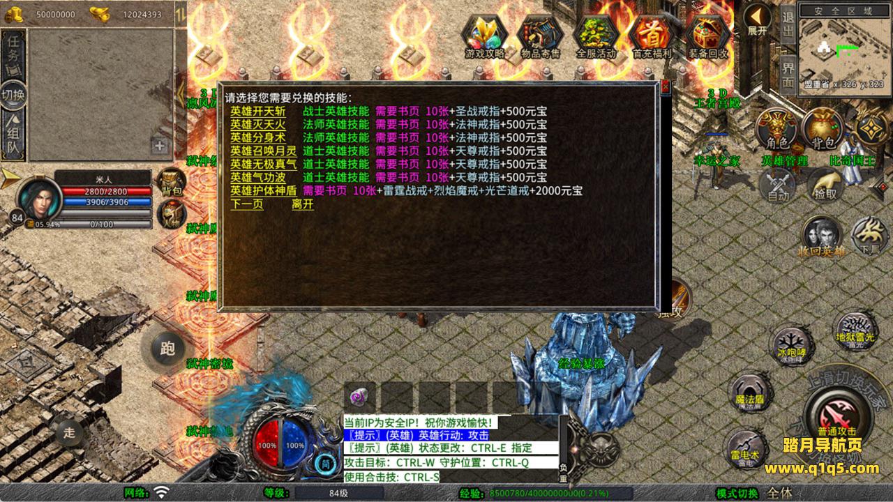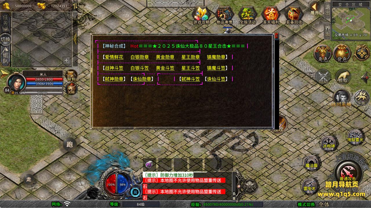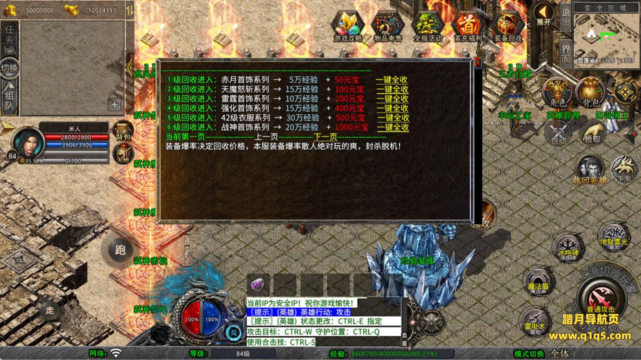 下面我们来测试下游戏里的功能看看。好了,其他功能就自行测试吧。更多的游戏资源可以访问www.q1q5.com下载,我们每款游戏资源均单独制作了独立的视频架设教程,让小白也可以快速上手游戏架设,快来体验自己做GM的乐趣吧!
