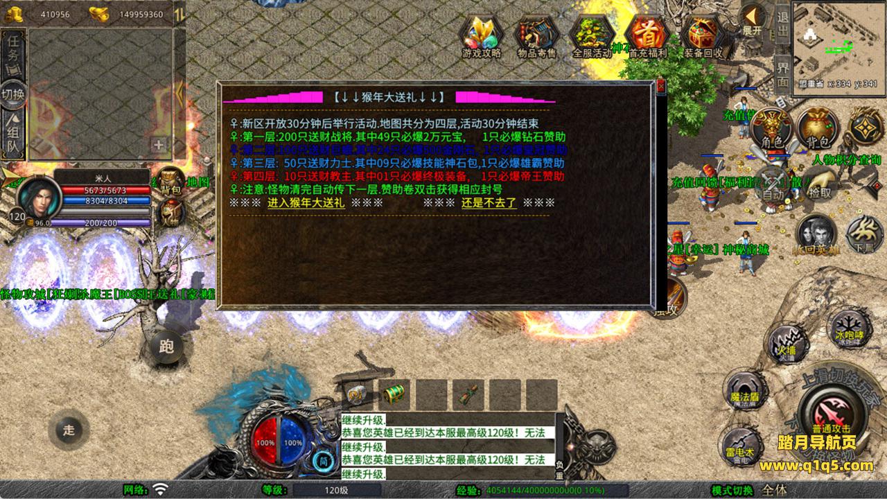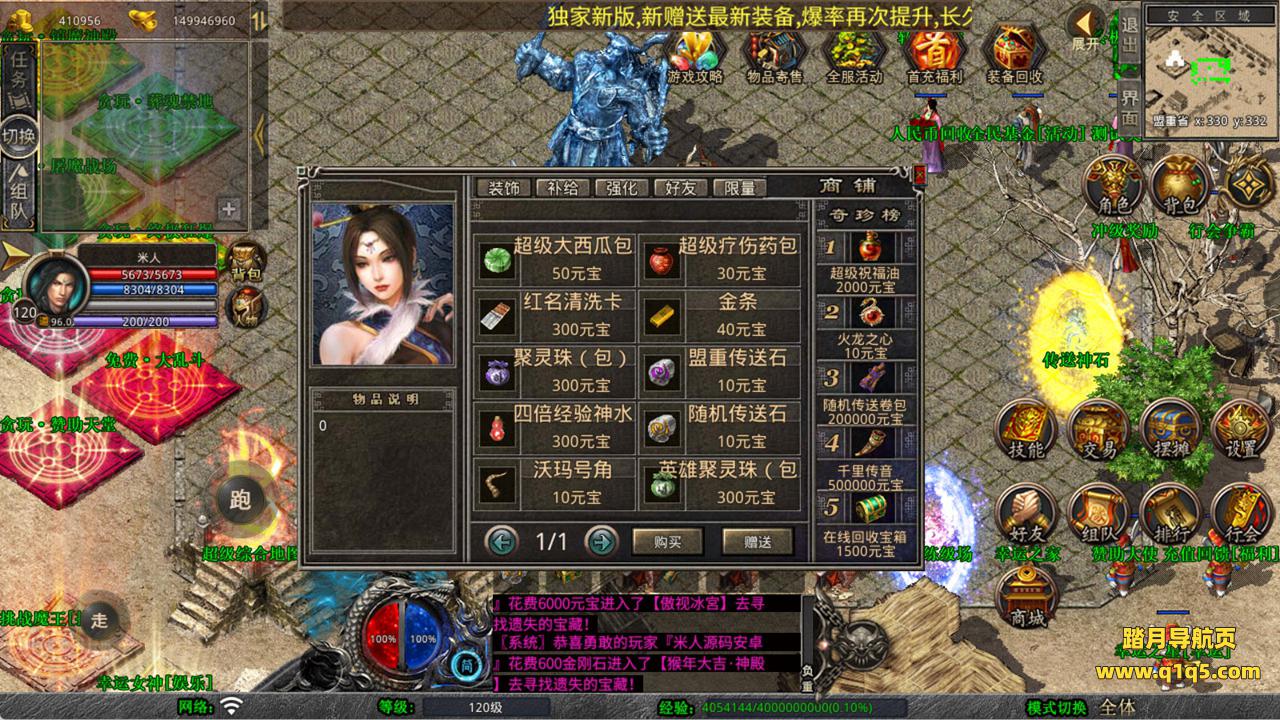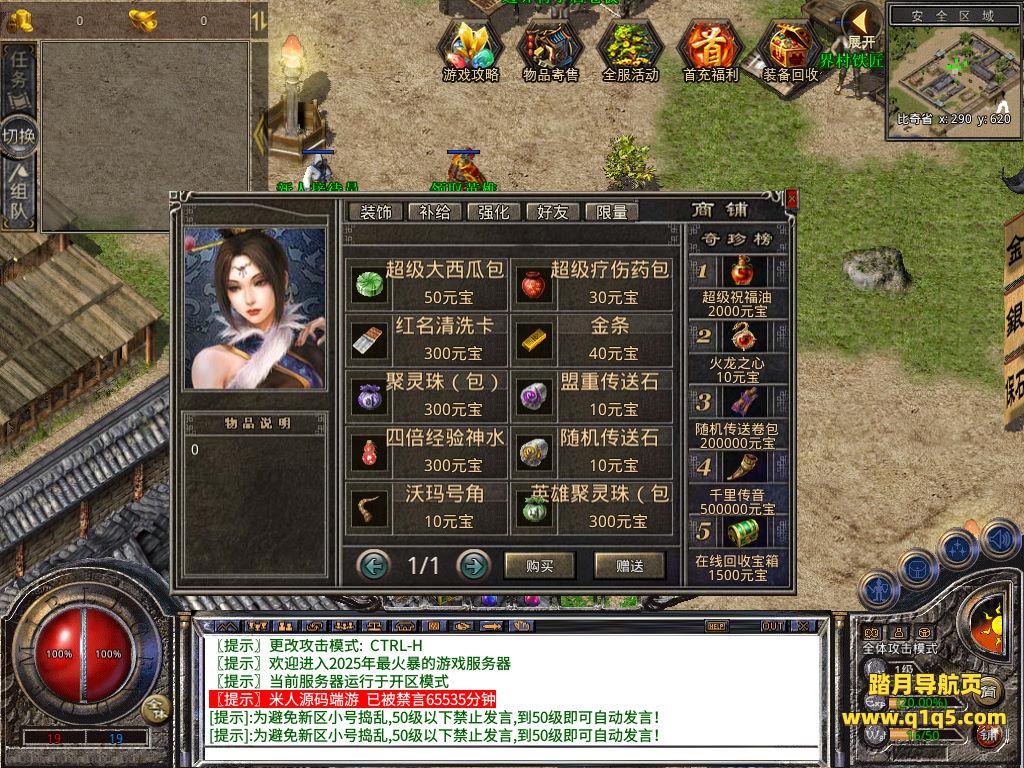 下面我们来测试下游戏里的功能看看。好了,其他功能就自行测试吧。更多的游戏资源可以访问www.q1q5.com下载,我们每款游戏资源均单独制作了独立的视频架设教程,让小白也可以快速上手游戏架设,快来体验自己做GM的乐趣吧!