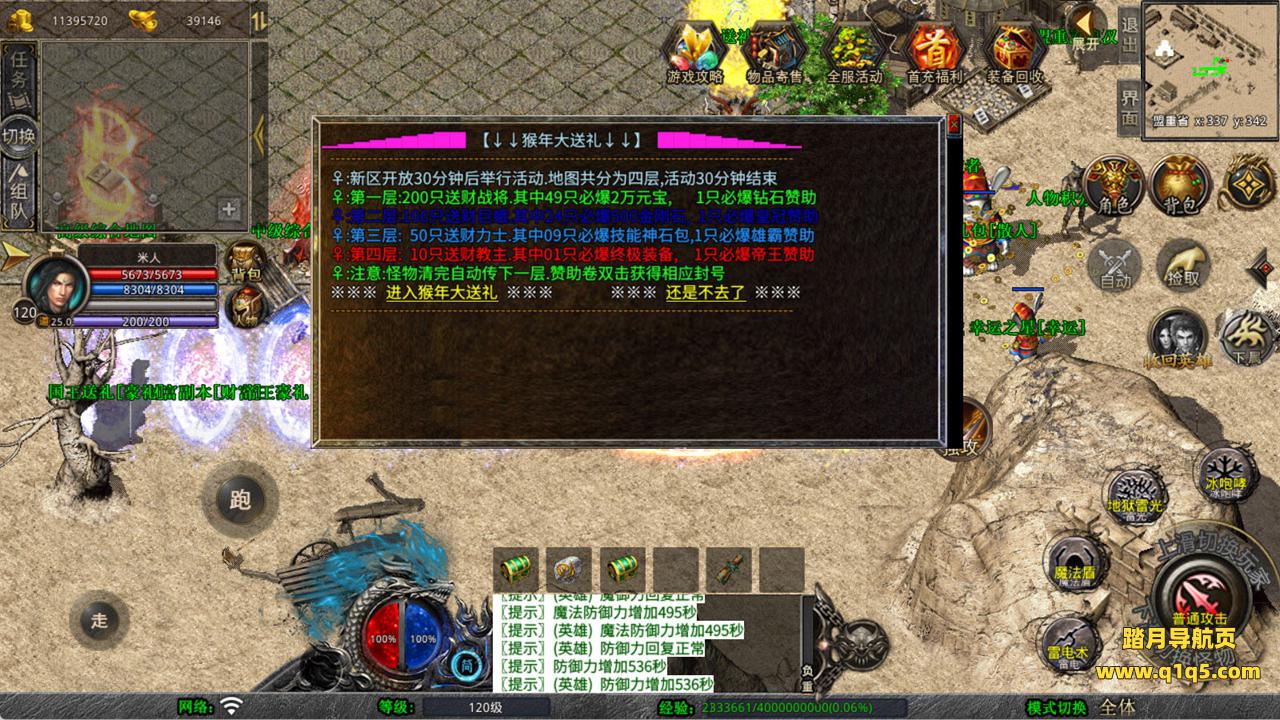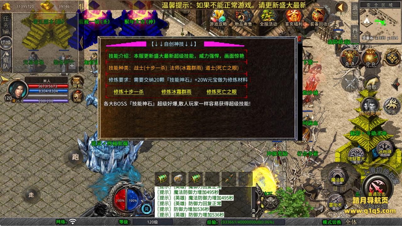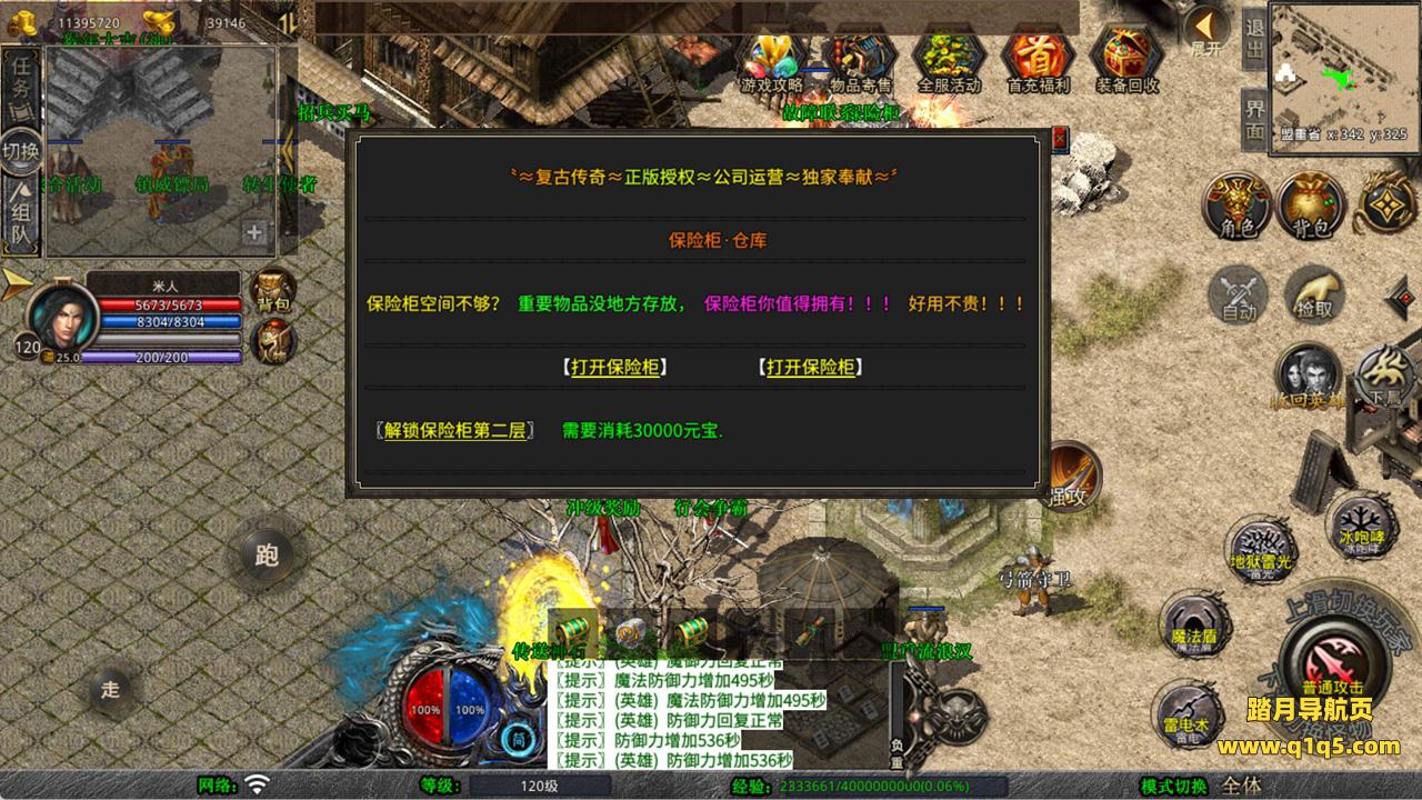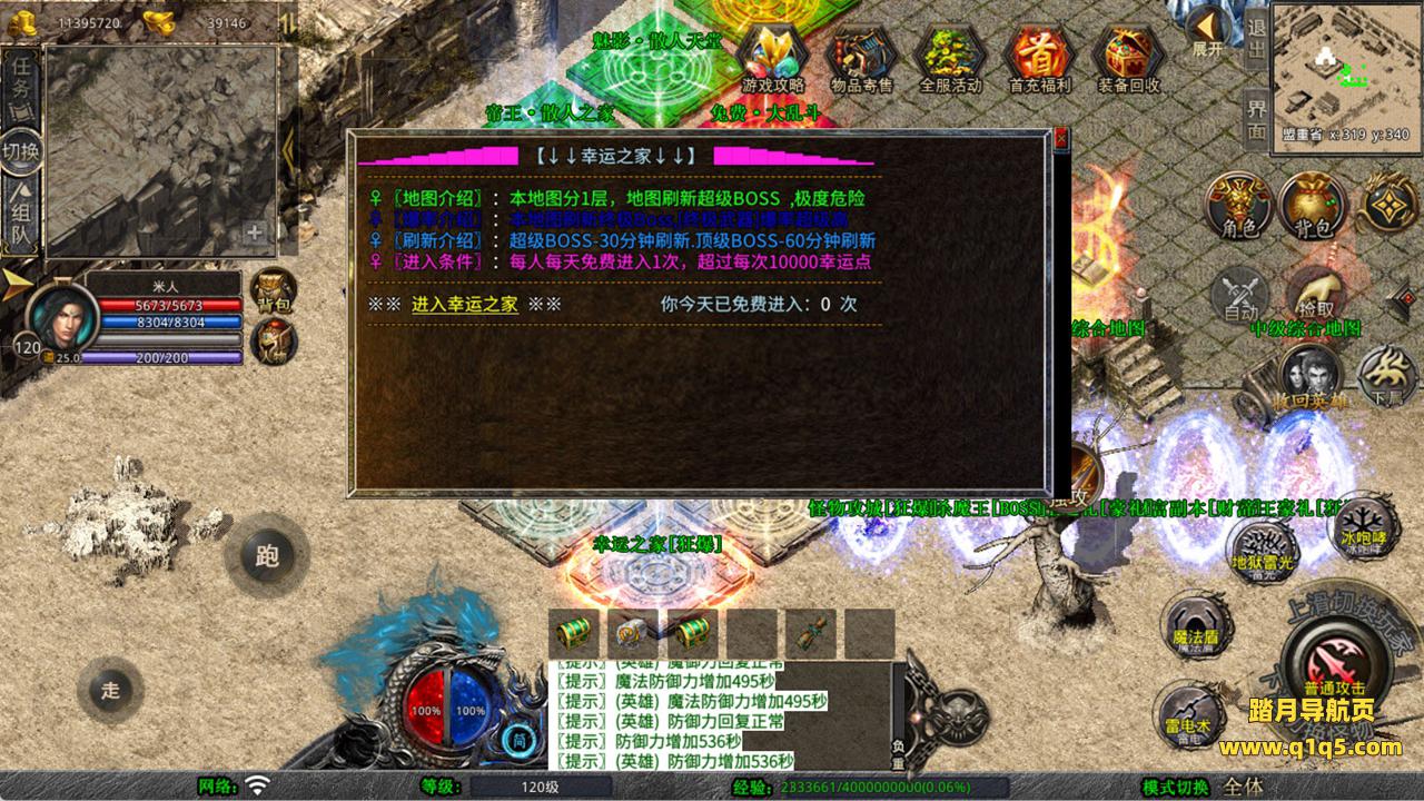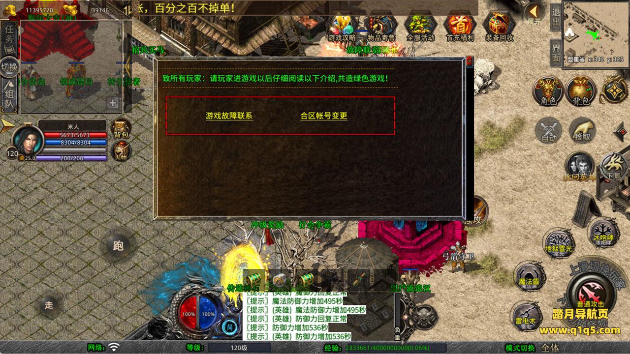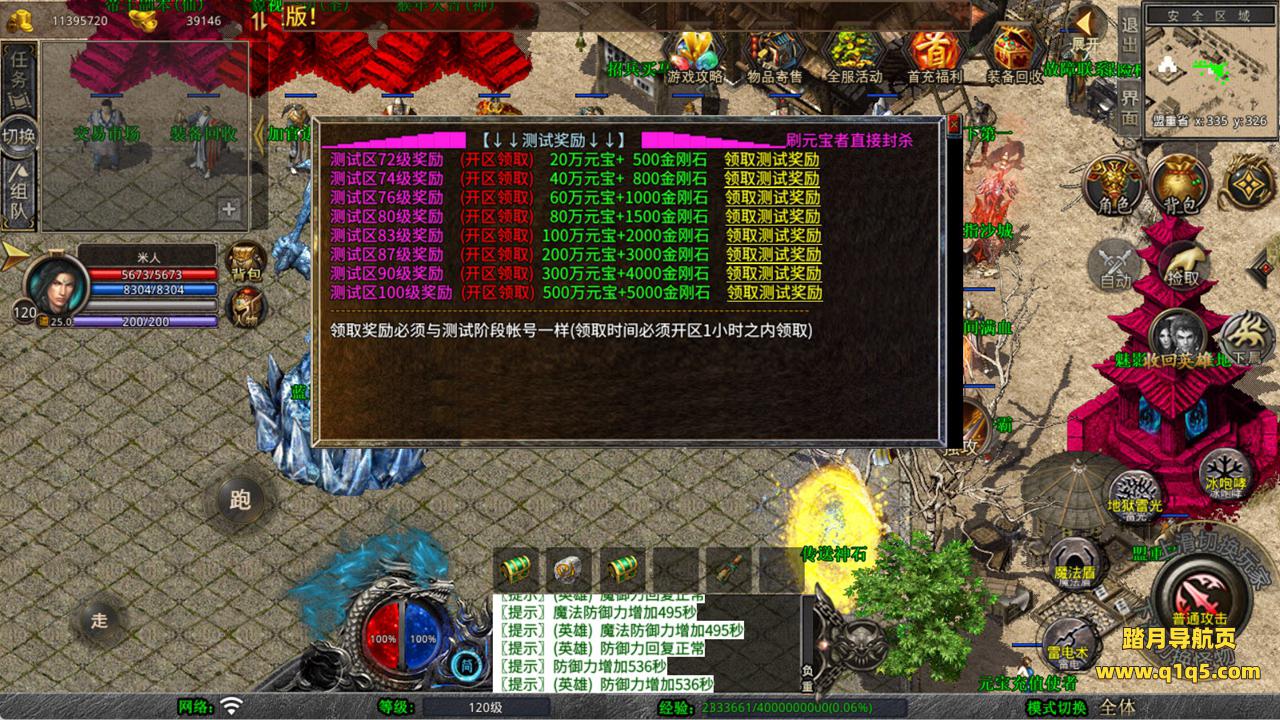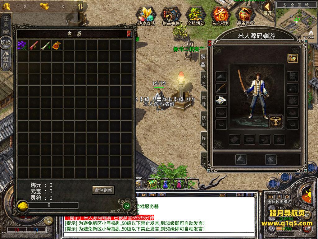 下面我们来测试下游戏里的功能看看。好了,其他功能就自行测试吧。更多的游戏资源可以访问www.q1q5.com下载,我们每款游戏资源均单独制作了独立的视频架设教程,让小白也可以快速上手游戏架设,快来体验自己做GM的乐趣吧!