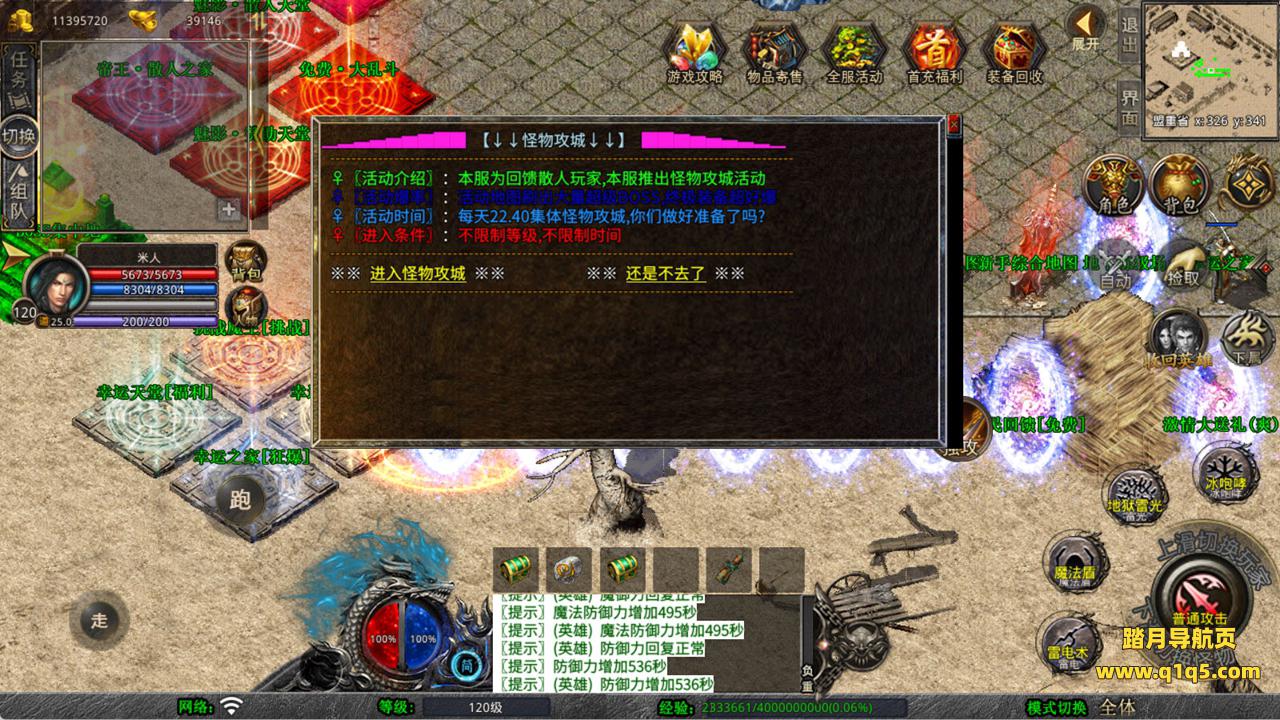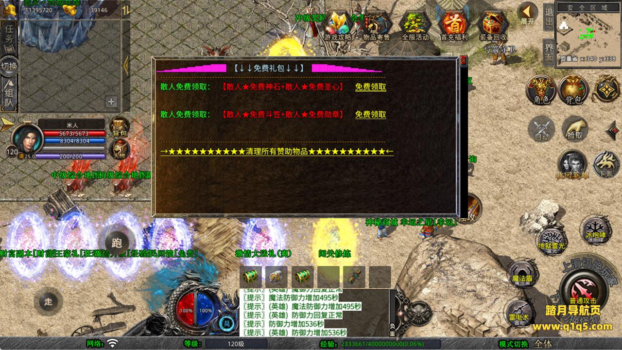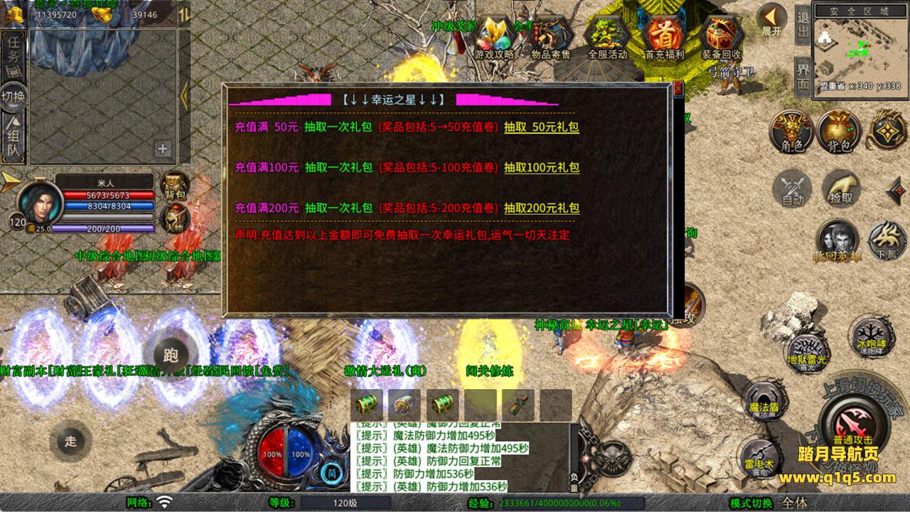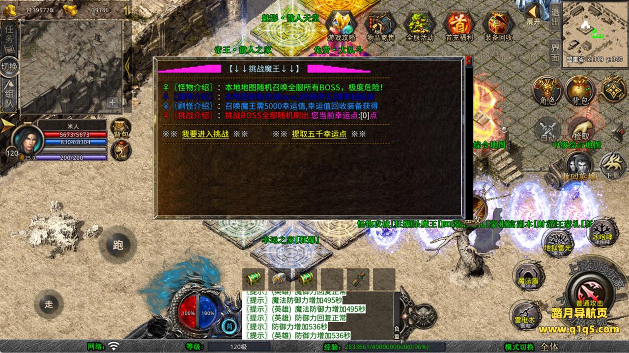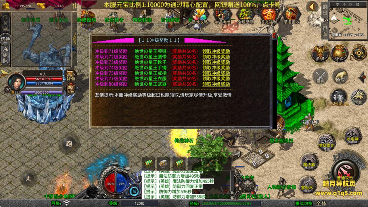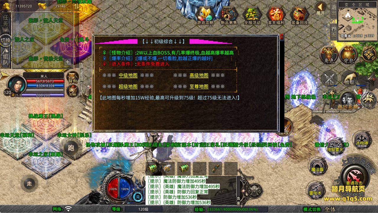 下面我们来测试下游戏里的功能看看。好了,其他功能就自行测试吧。更多的游戏资源可以访问www.q1q5.com下载,我们每款游戏资源均单独制作了独立的视频架设教程,让小白也可以快速上手游戏架设,快来体验自己做GM的乐趣吧!