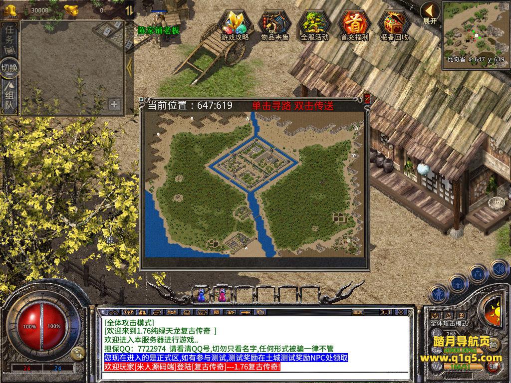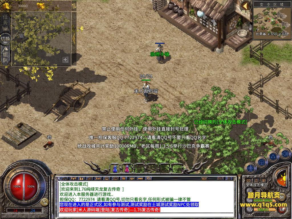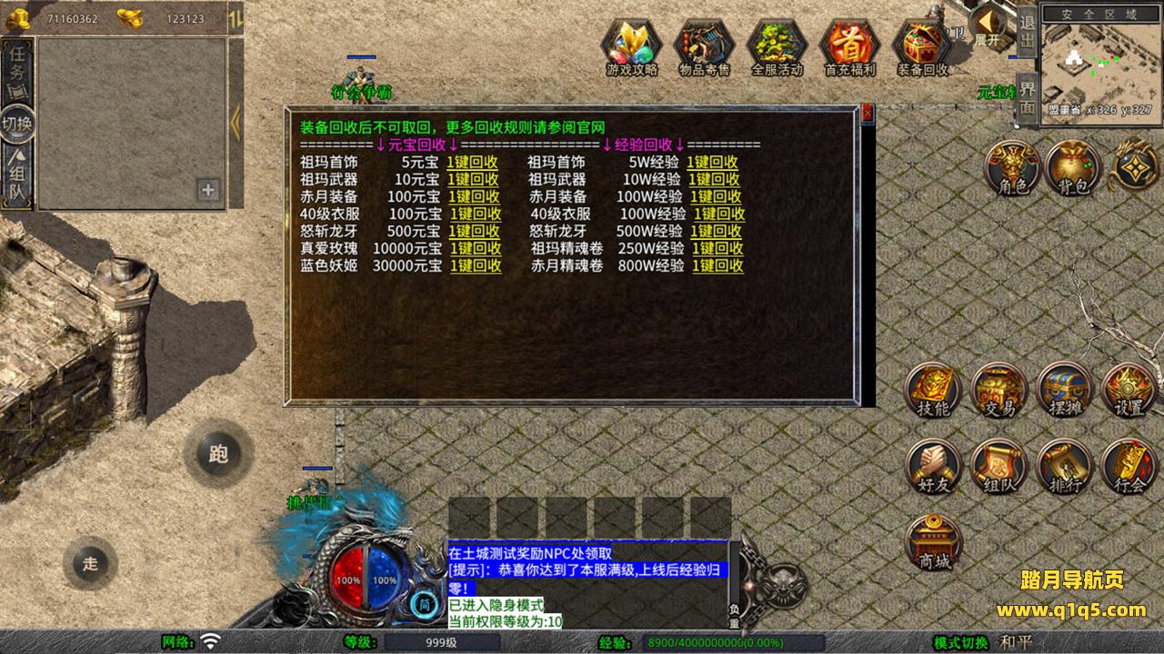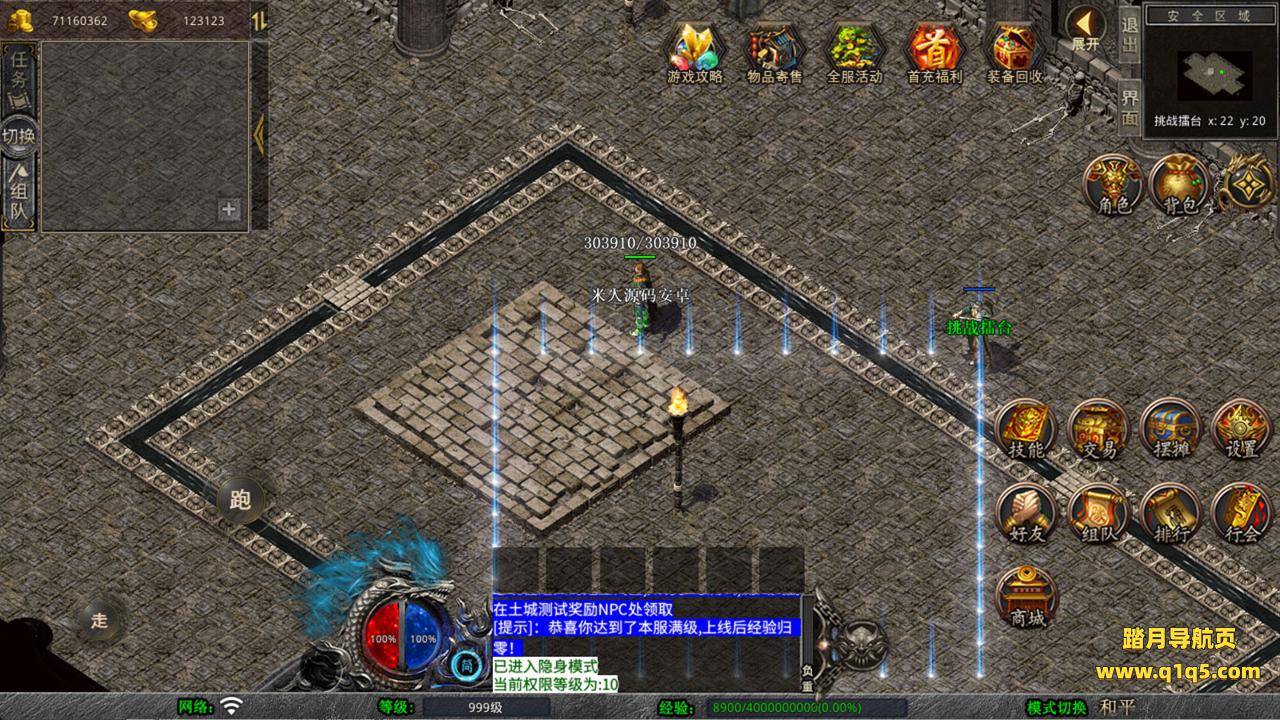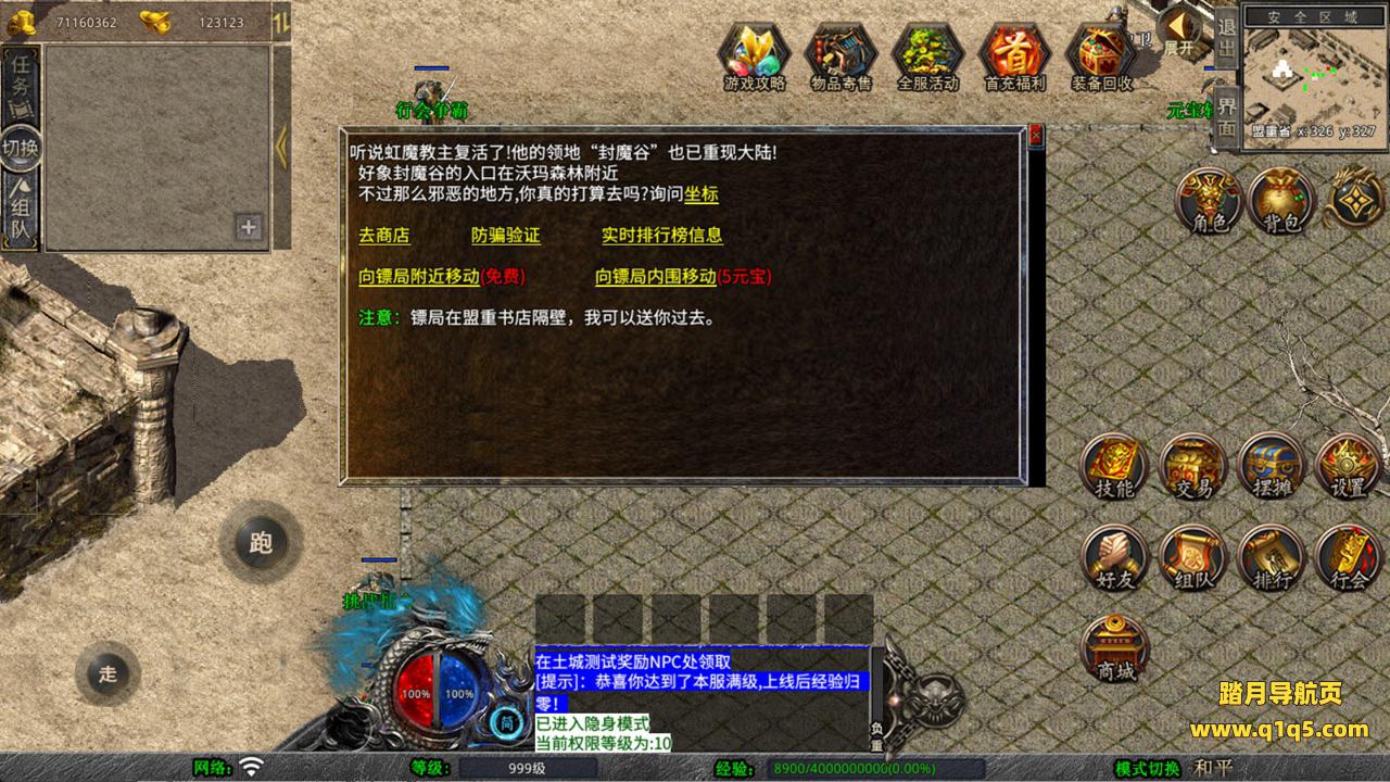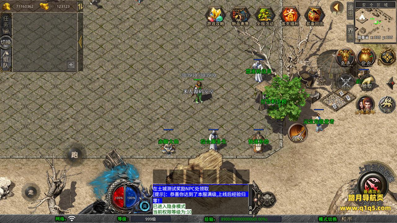 下面我们来测试下游戏里的功能看看。好了,其他功能就自行测试吧。更多的游戏资源可以访问www.q1q5.com下载,我们每款游戏资源均单独制作了独立的视频架设教程,让小白也可以快速上手游戏架设,快来体验自己做GM的乐趣吧!