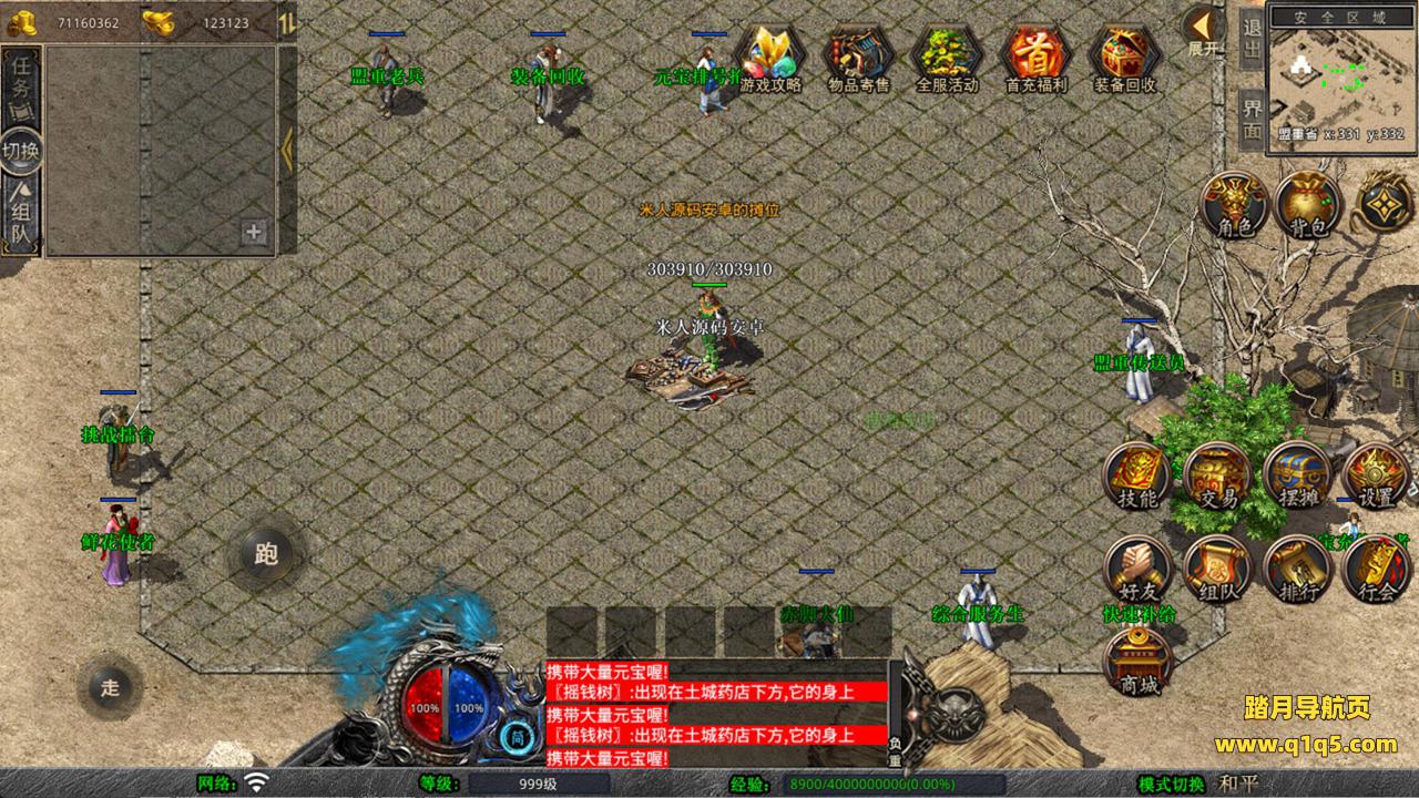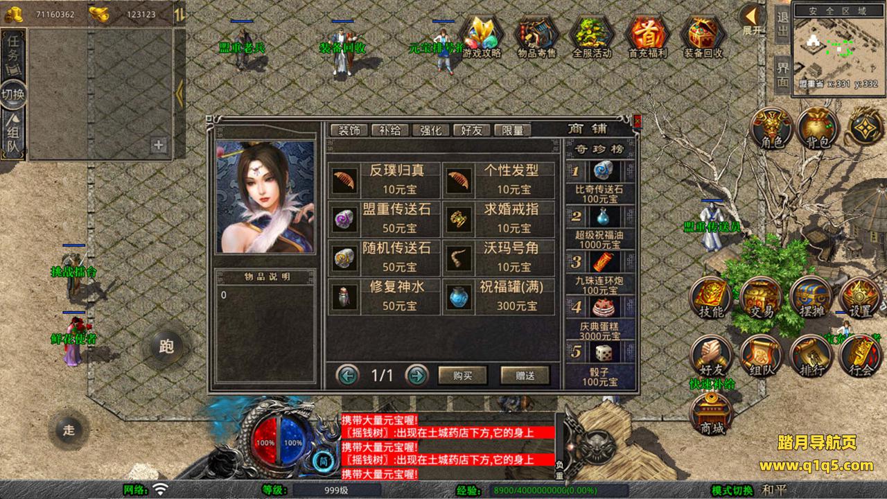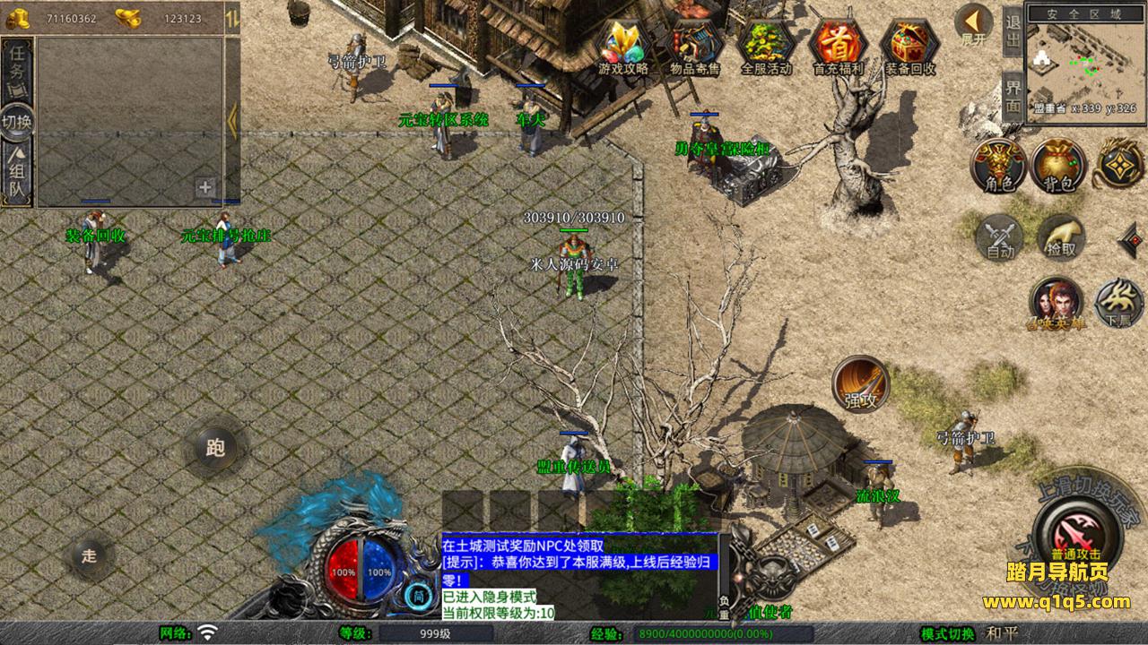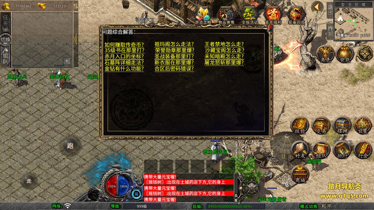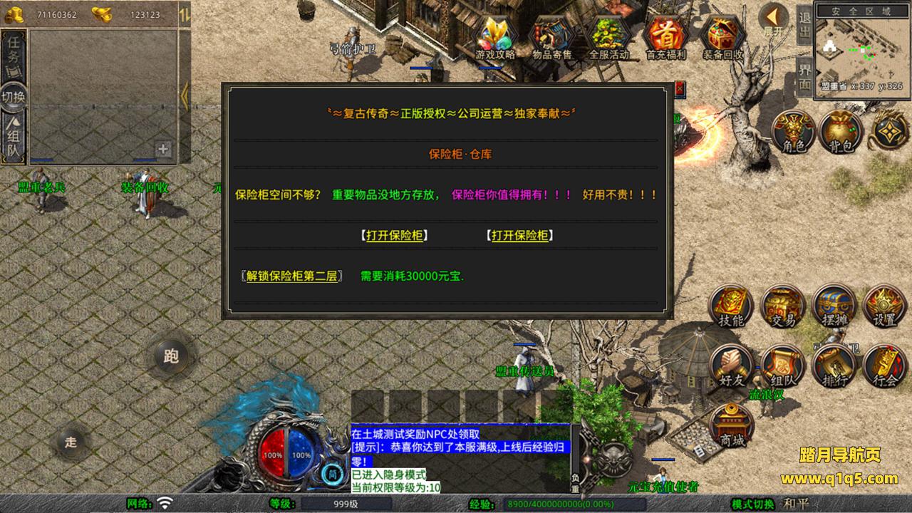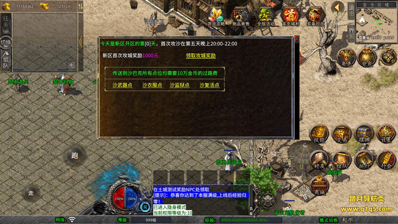 下面我们来测试下游戏里的功能看看。好了,其他功能就自行测试吧。更多的游戏资源可以访问www.q1q5.com下载,我们每款游戏资源均单独制作了独立的视频架设教程,让小白也可以快速上手游戏架设,快来体验自己做GM的乐趣吧!
