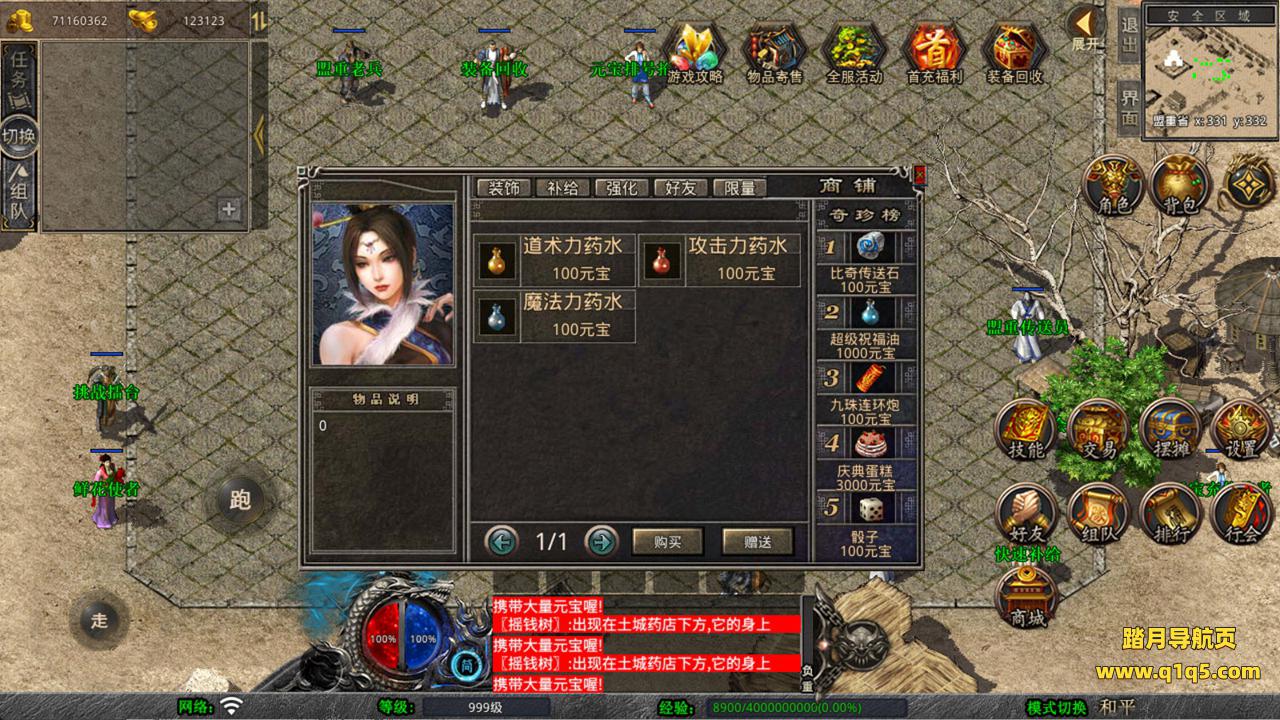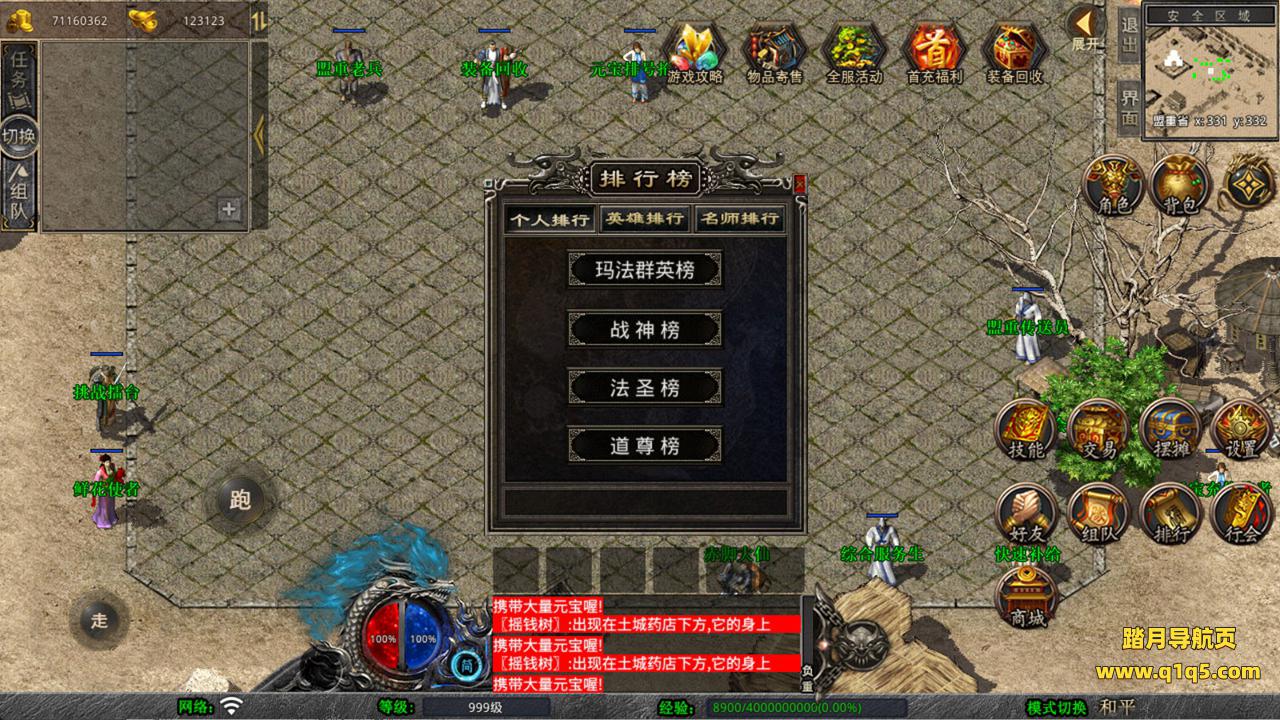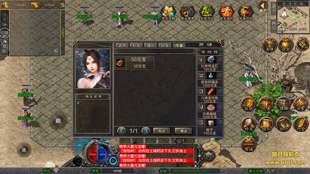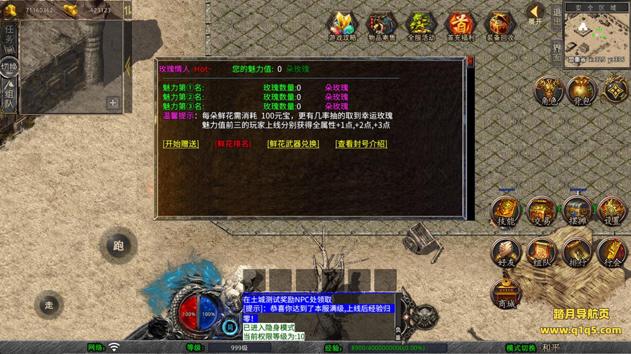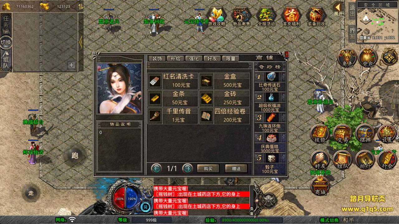 下面我们来测试下游戏里的功能看看。好了,其他功能就自行测试吧。更多的游戏资源可以访问www.q1q5.com下载,我们每款游戏资源均单独制作了独立的视频架设教程,让小白也可以快速上手游戏架设,快来体验自己做GM的乐趣吧!
