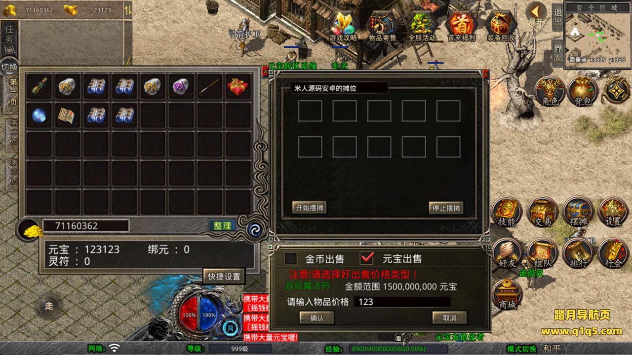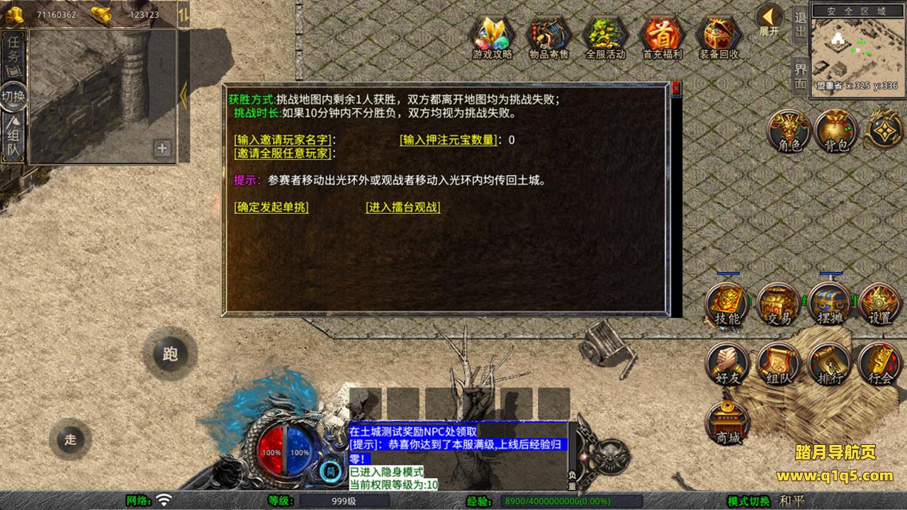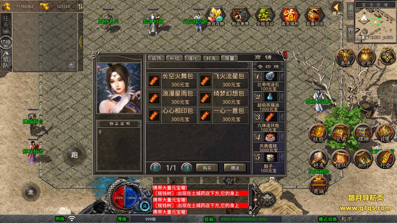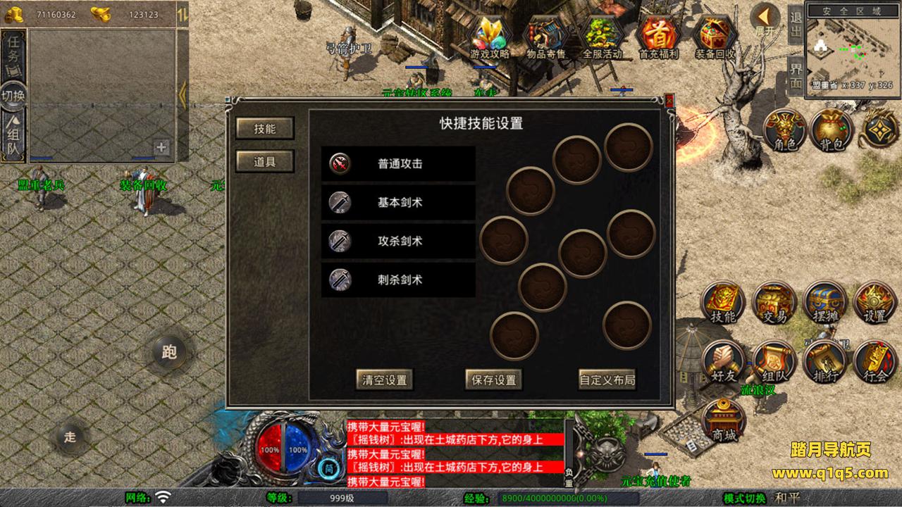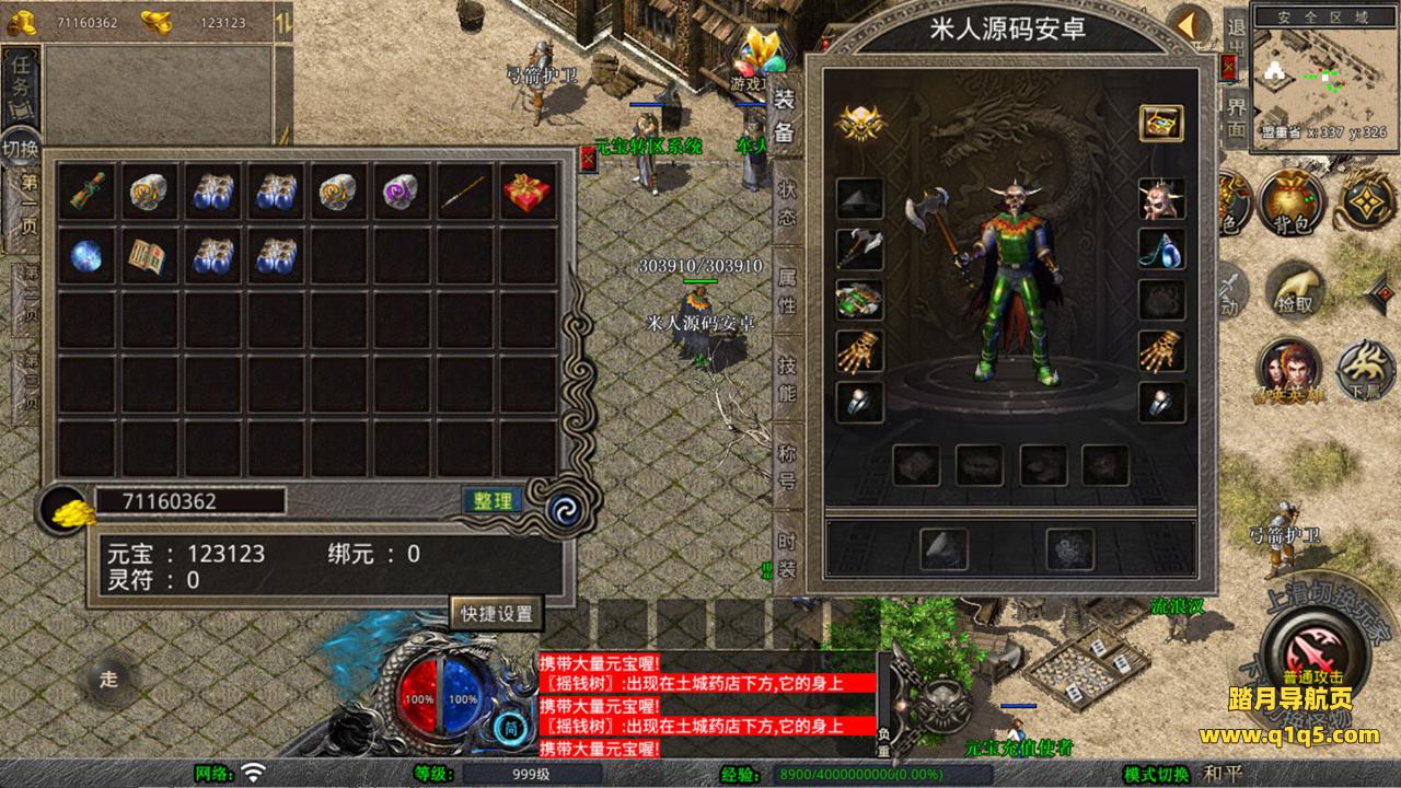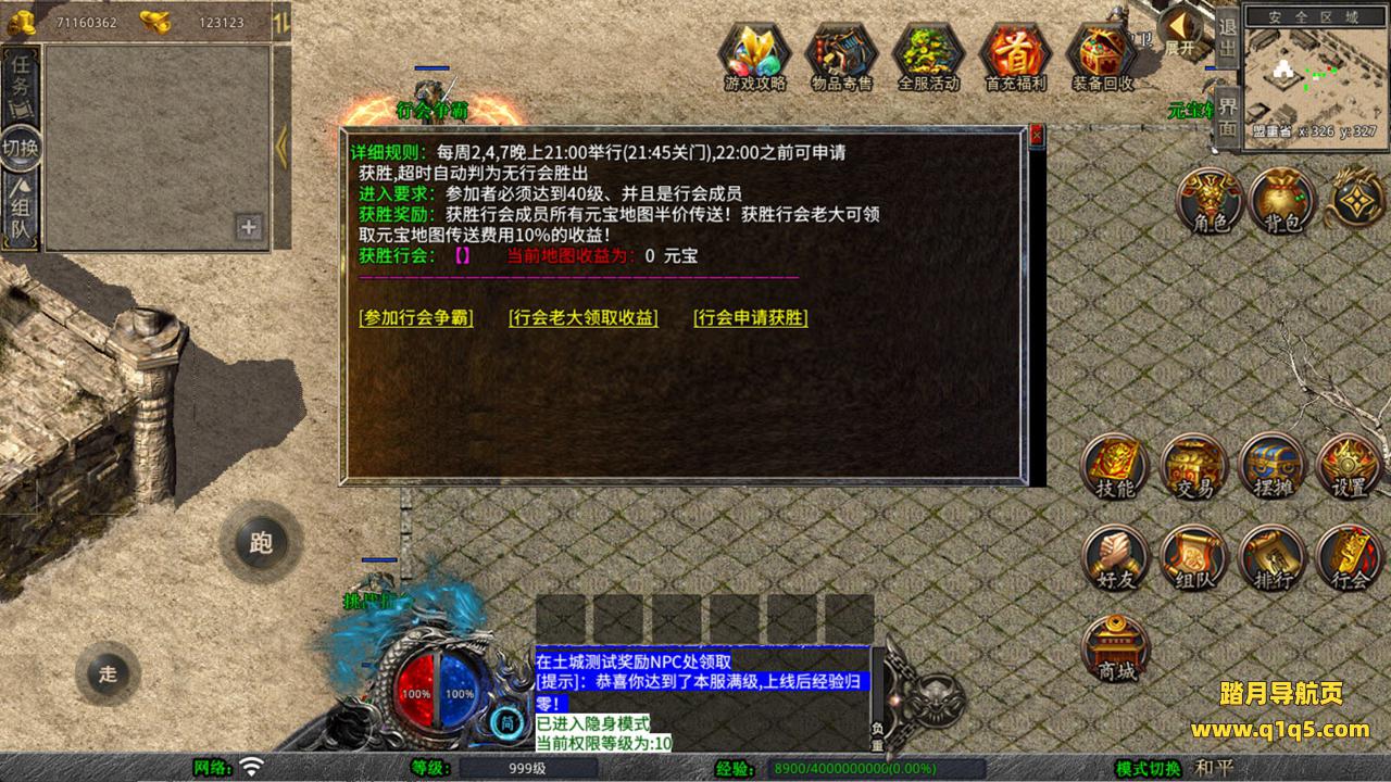 下面我们来测试下游戏里的功能看看。好了,其他功能就自行测试吧。更多的游戏资源可以访问www.q1q5.com下载,我们每款游戏资源均单独制作了独立的视频架设教程,让小白也可以快速上手游戏架设,快来体验自己做GM的乐趣吧!