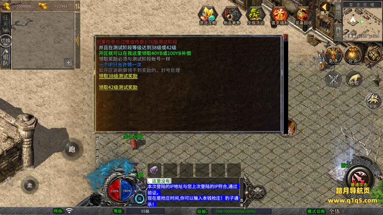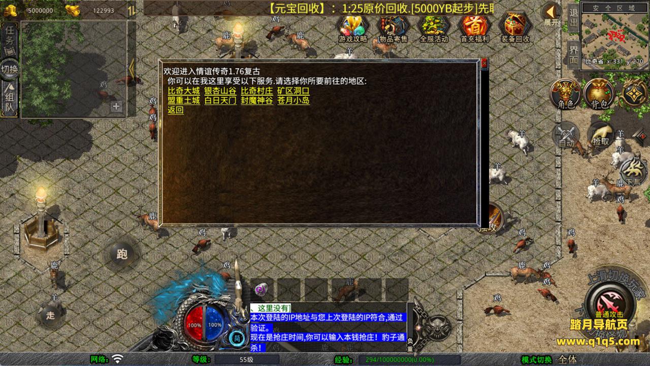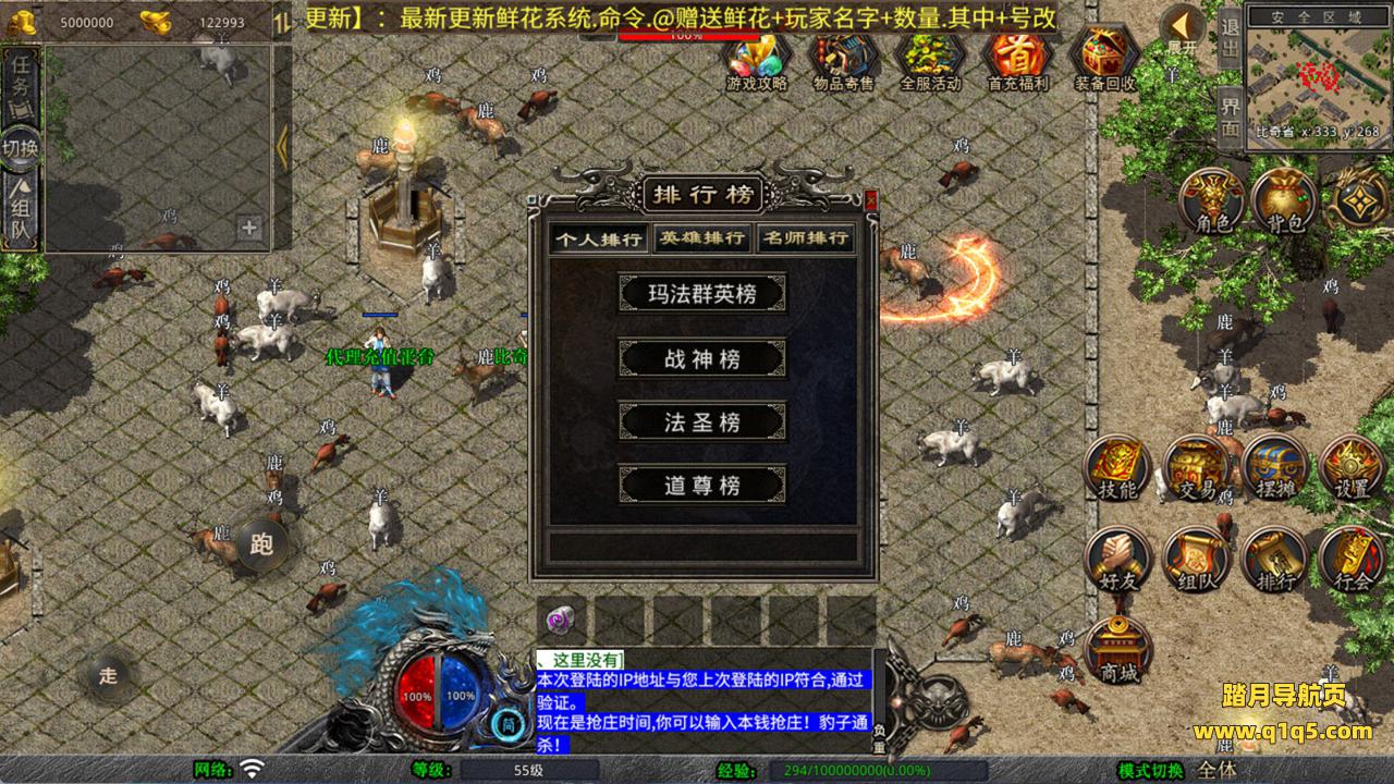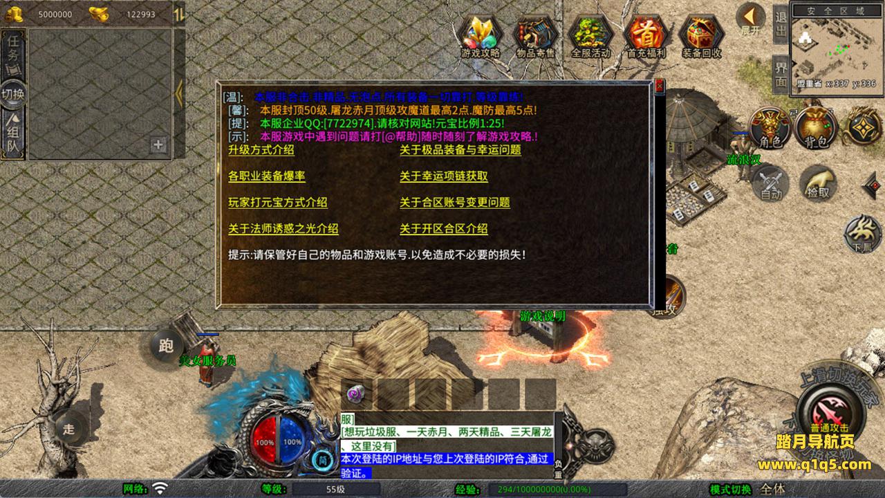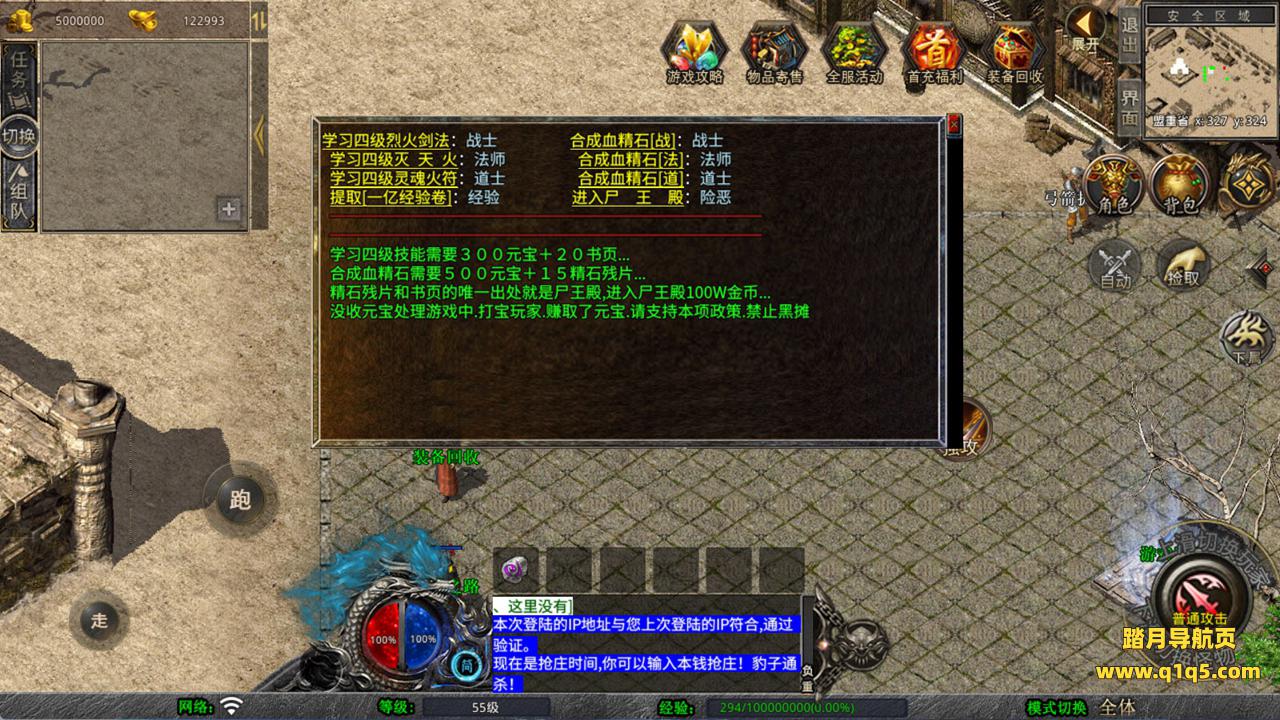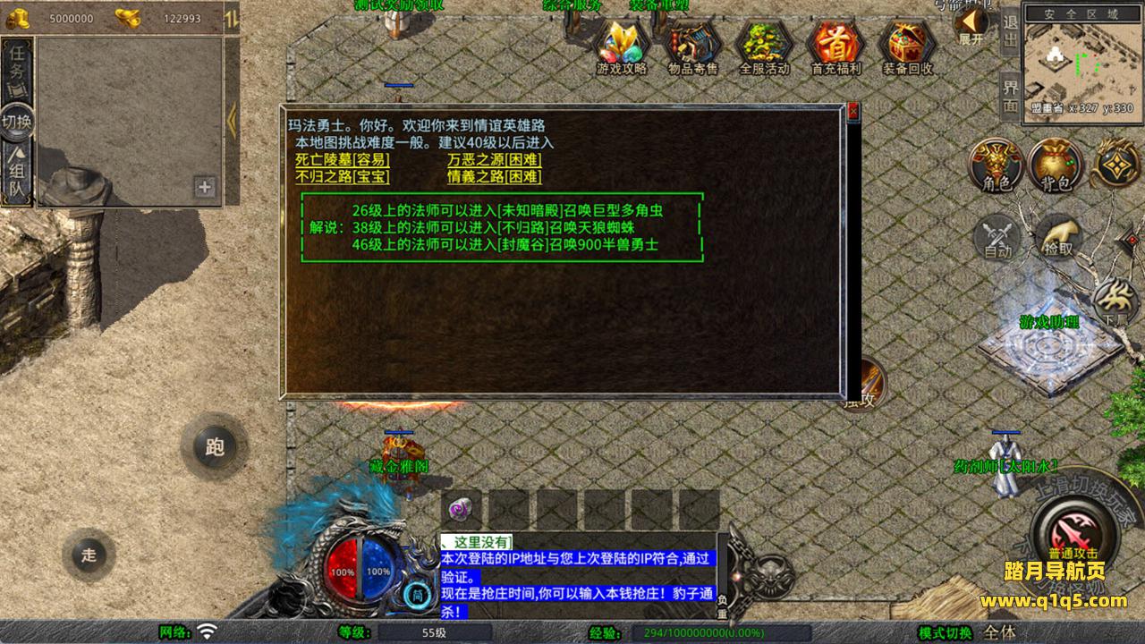 下面我们来测试下游戏里的功能看看。好了。其他功能就自行测试吧。更多的游戏资源可以访问www.q1q5.com下载,我们每款游戏资源均单独制作了独立的视频架设教程,让小白也可以快速上手游戏架设,快来体验自己做GM的乐趣吧!