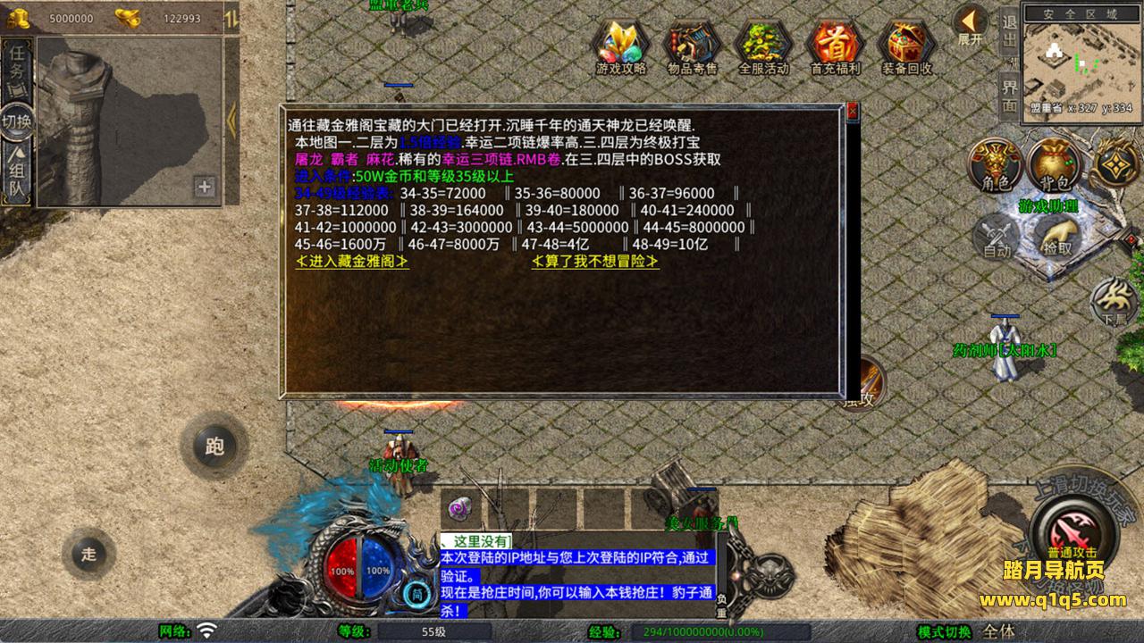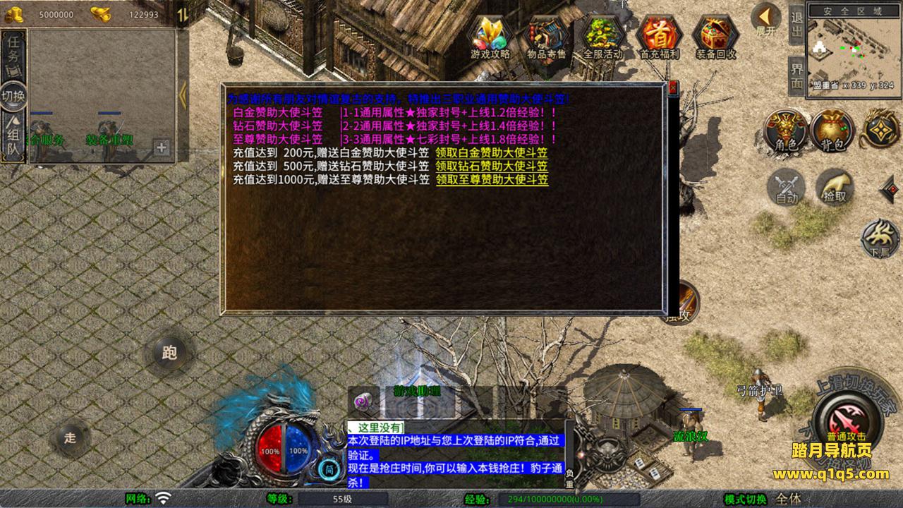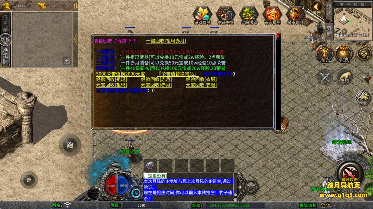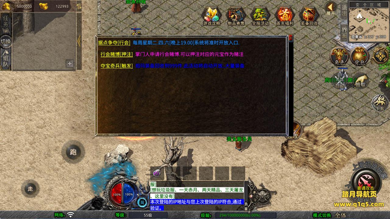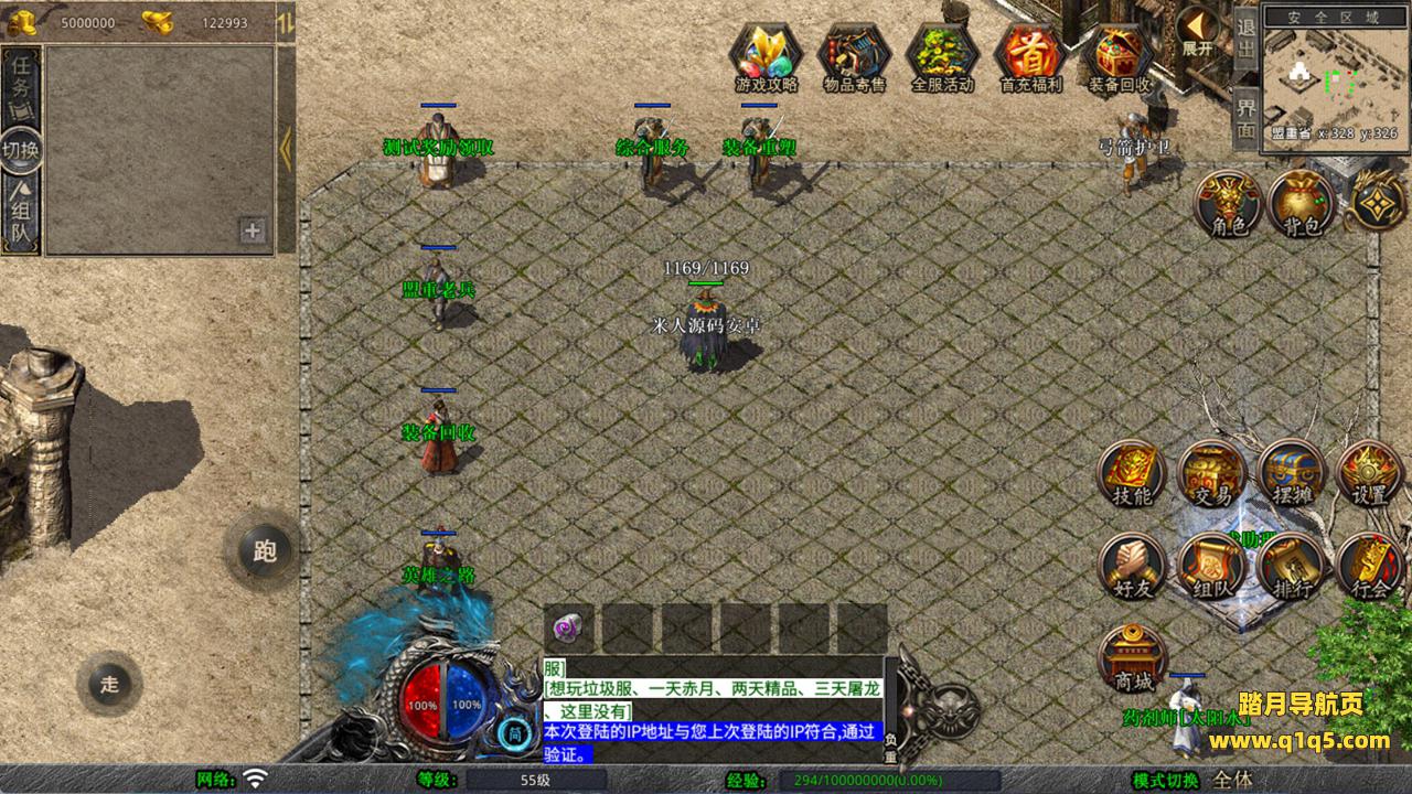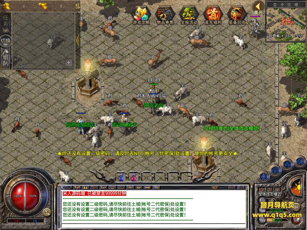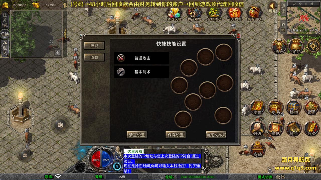 下面我们来测试下游戏里的功能看看。好了。其他功能就自行测试吧。更多的游戏资源可以访问www.q1q5.com下载,我们每款游戏资源均单独制作了独立的视频架设教程,让小白也可以快速上手游戏架设,快来体验自己做GM的乐趣吧!