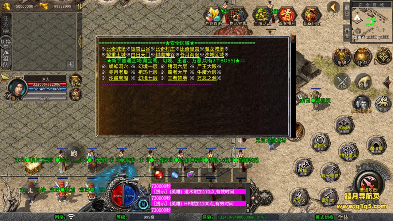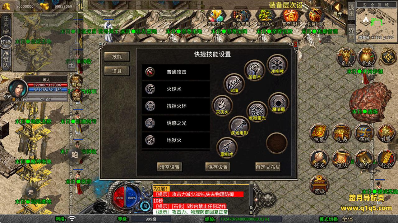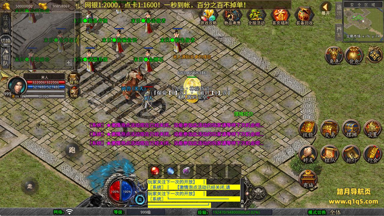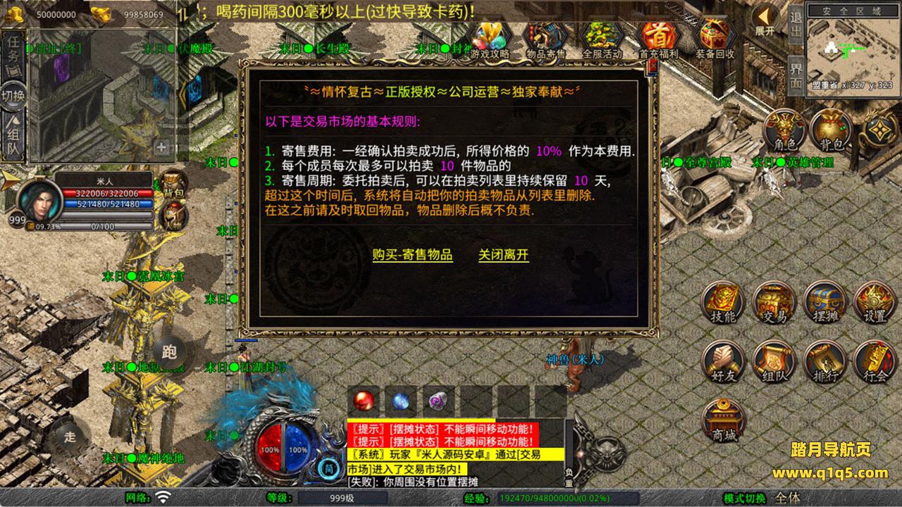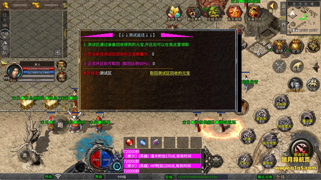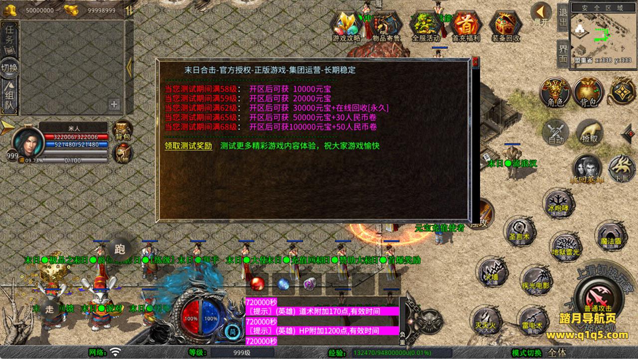 下面我们来测试下游戏里的功能看看。好了,其他功能就自行测试吧。更多的游戏资源可以访问www.q1q5.com下载,我们每款游戏资源均单独制作了独立的视频架设教程,让小白也可以快速上手游戏架设,快来体验自己做GM的乐趣吧!