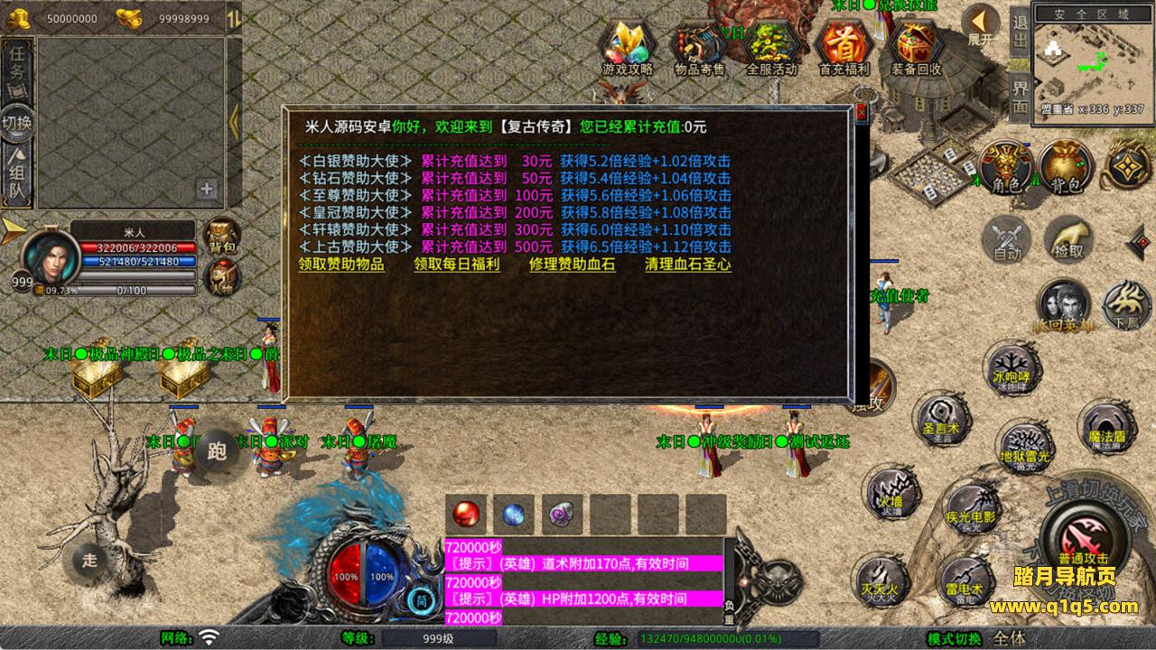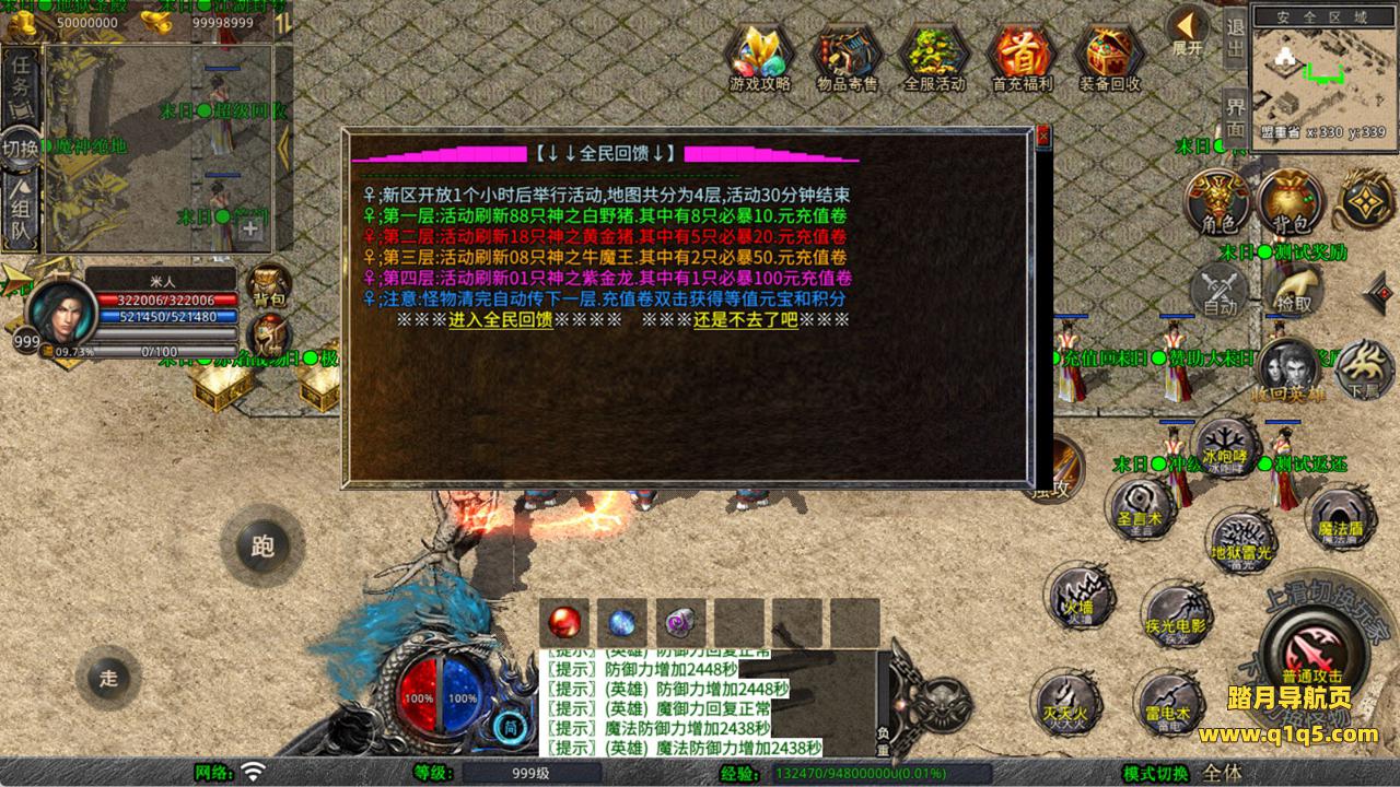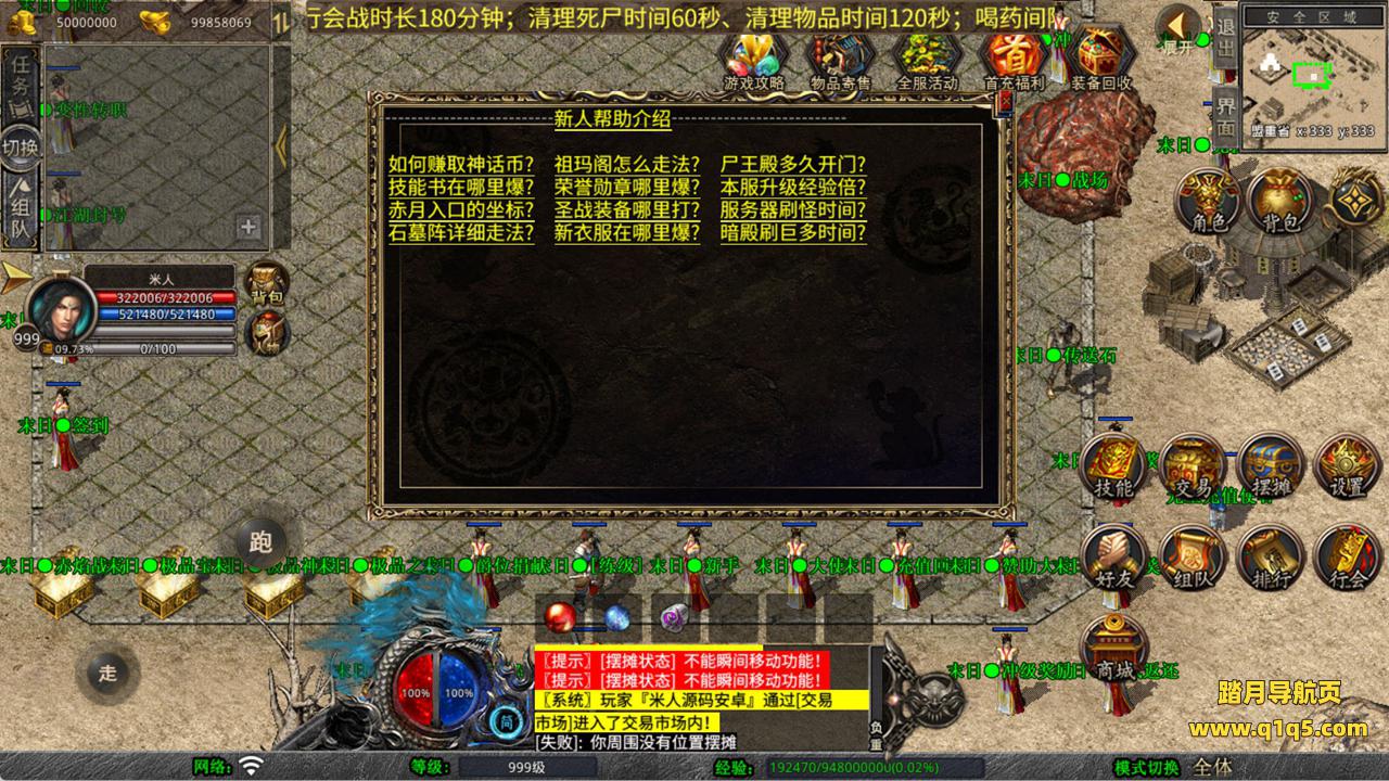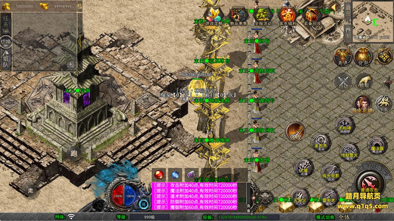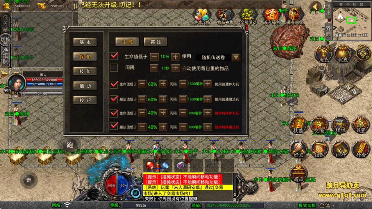 下面我们来测试下游戏里的功能看看。好了,其他功能就自行测试吧。更多的游戏资源可以访问www.q1q5.com下载,我们每款游戏资源均单独制作了独立的视频架设教程,让小白也可以快速上手游戏架设,快来体验自己做GM的乐趣吧!