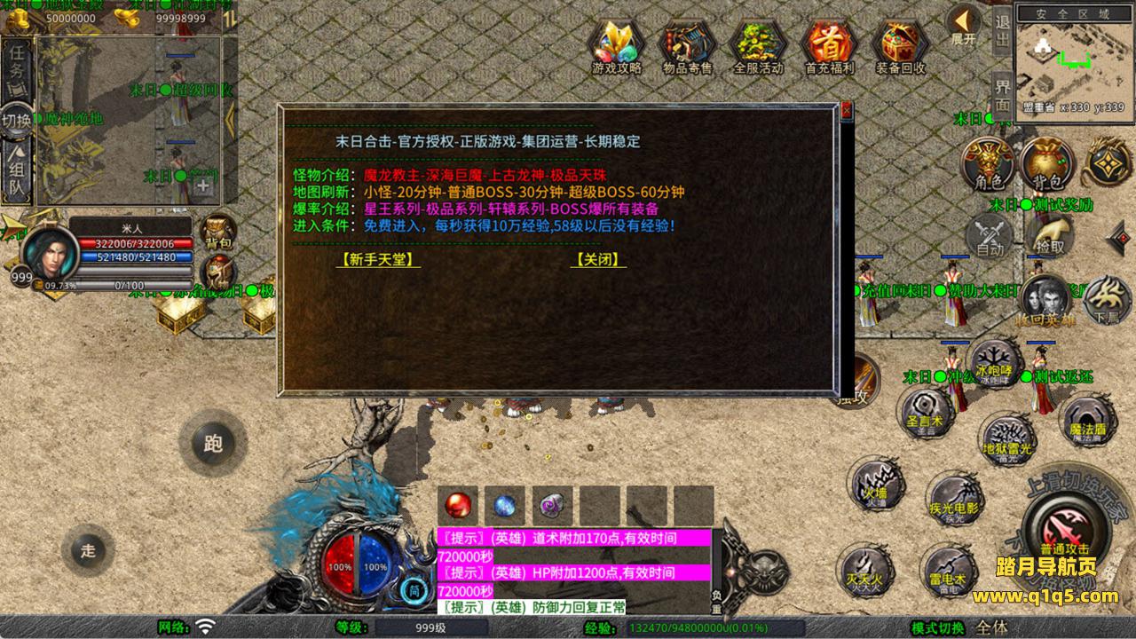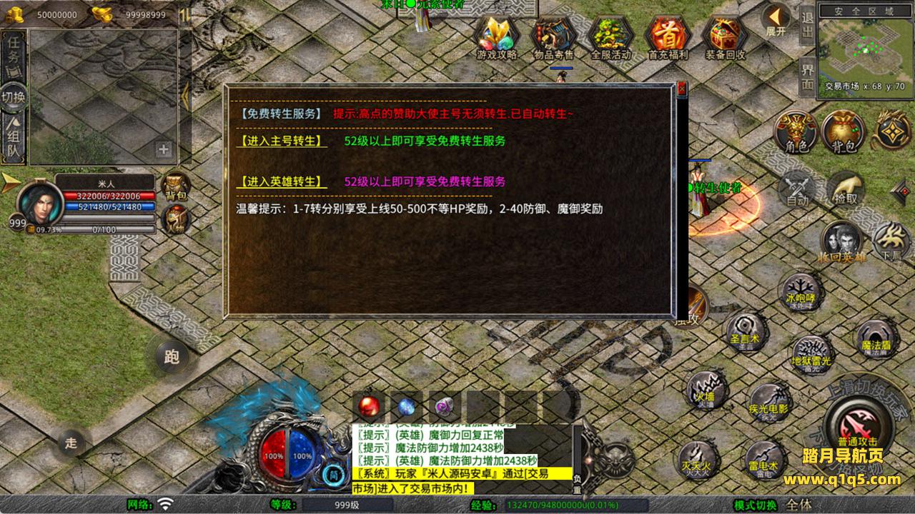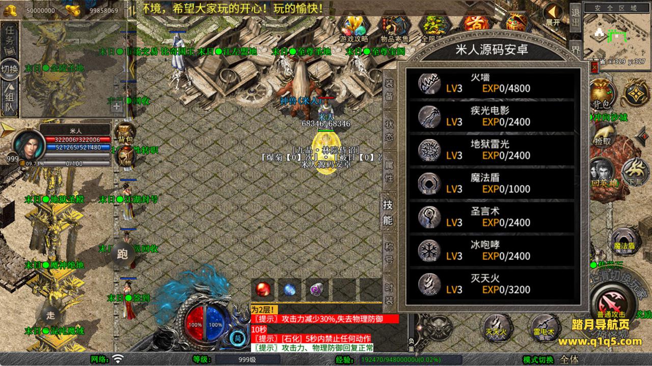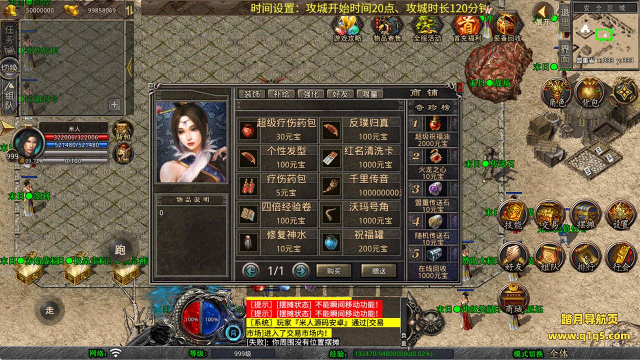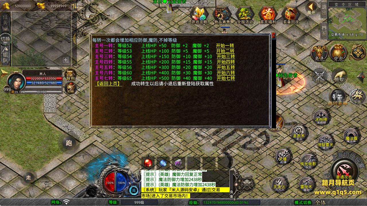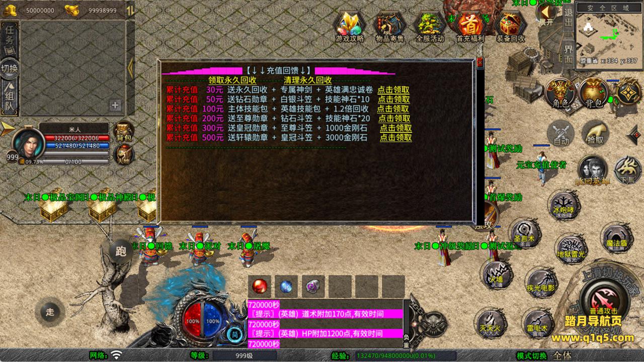下面我们来测试下游戏里的功能看看。好了,其他功能就自行测试吧。更多的游戏资源可以访问www.q1q5.com下载,我们每款游戏资源均单独制作了独立的视频架设教程,让小白也可以快速上手游戏架设,快来体验自己做GM的乐趣吧!