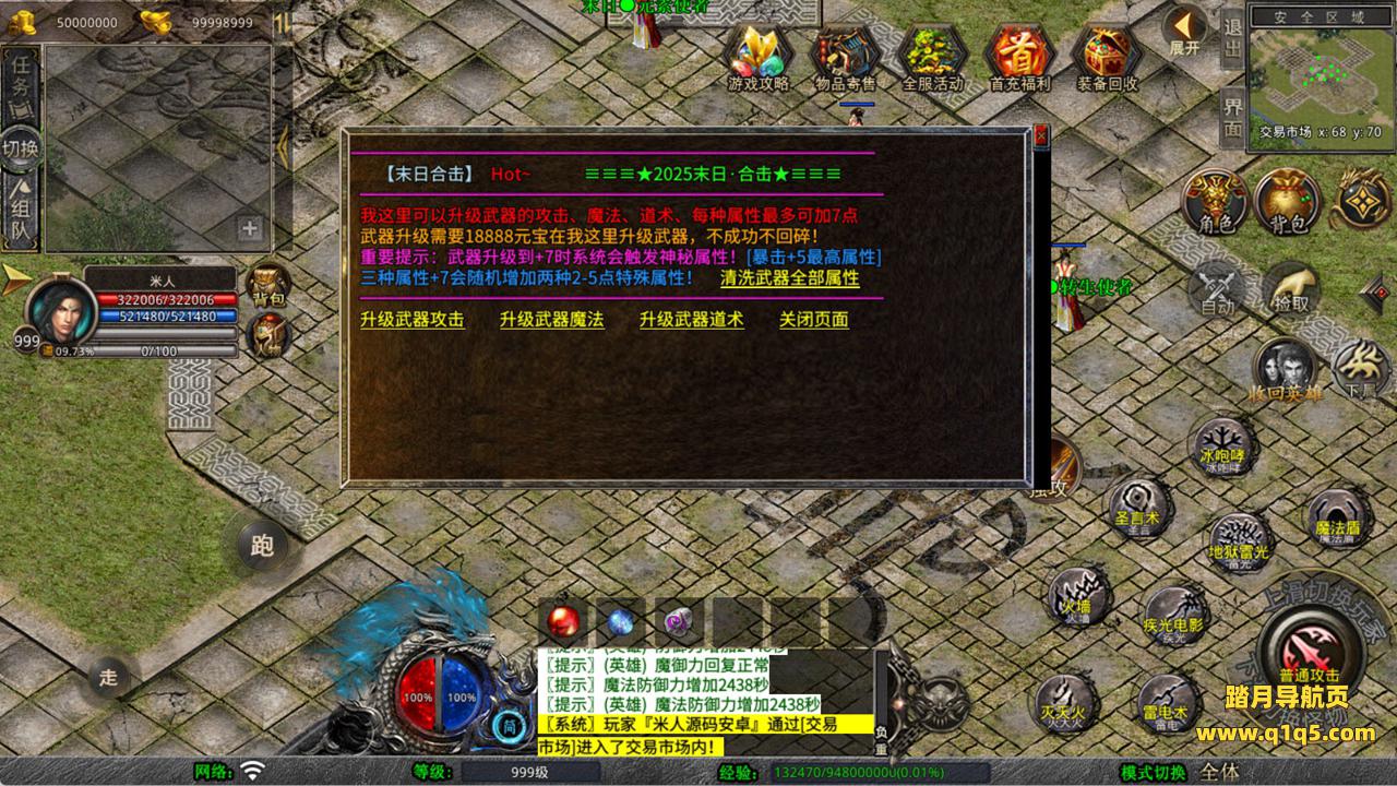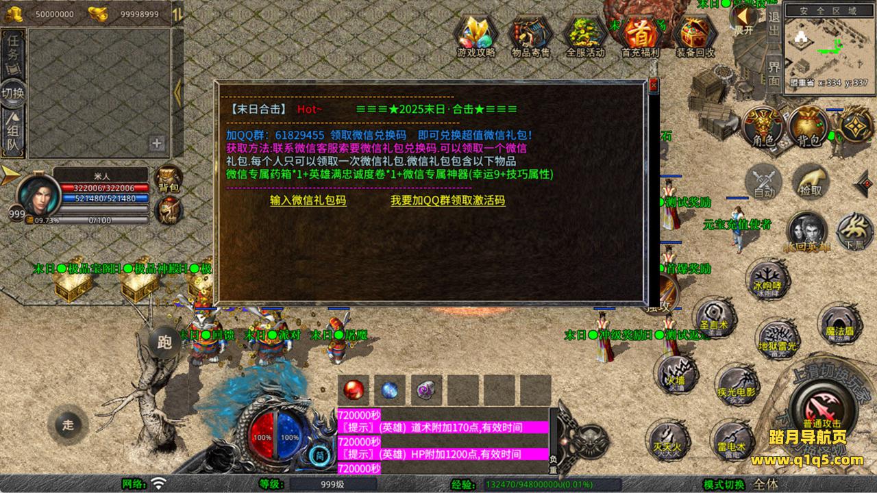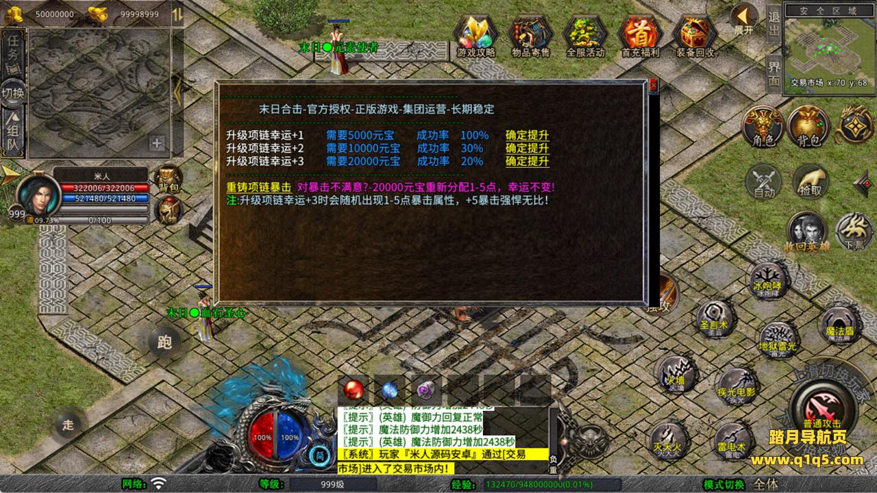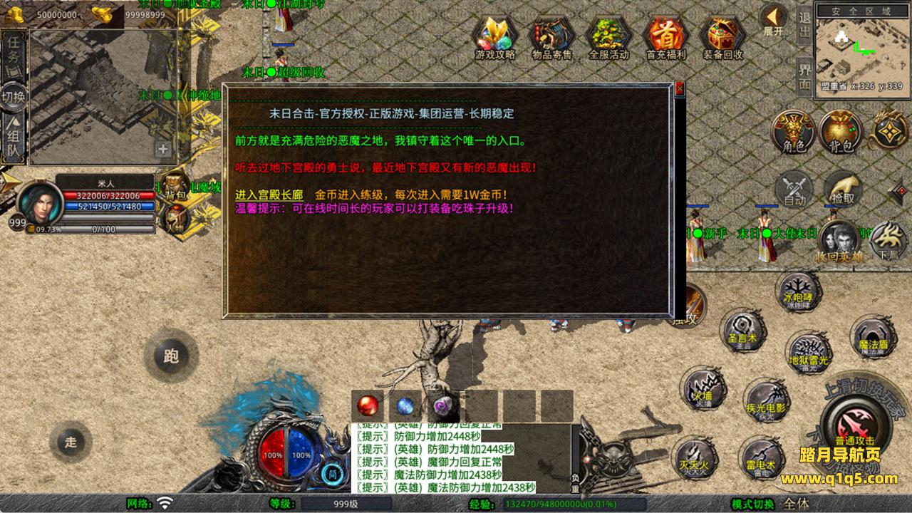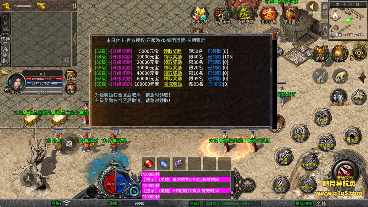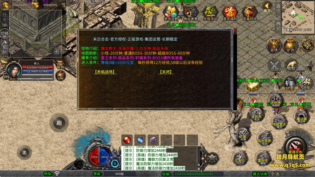 下面我们来测试下游戏里的功能看看。好了,其他功能就自行测试吧。更多的游戏资源可以访问www.q1q5.com下载,我们每款游戏资源均单独制作了独立的视频架设教程,让小白也可以快速上手游戏架设,快来体验自己做GM的乐趣吧!