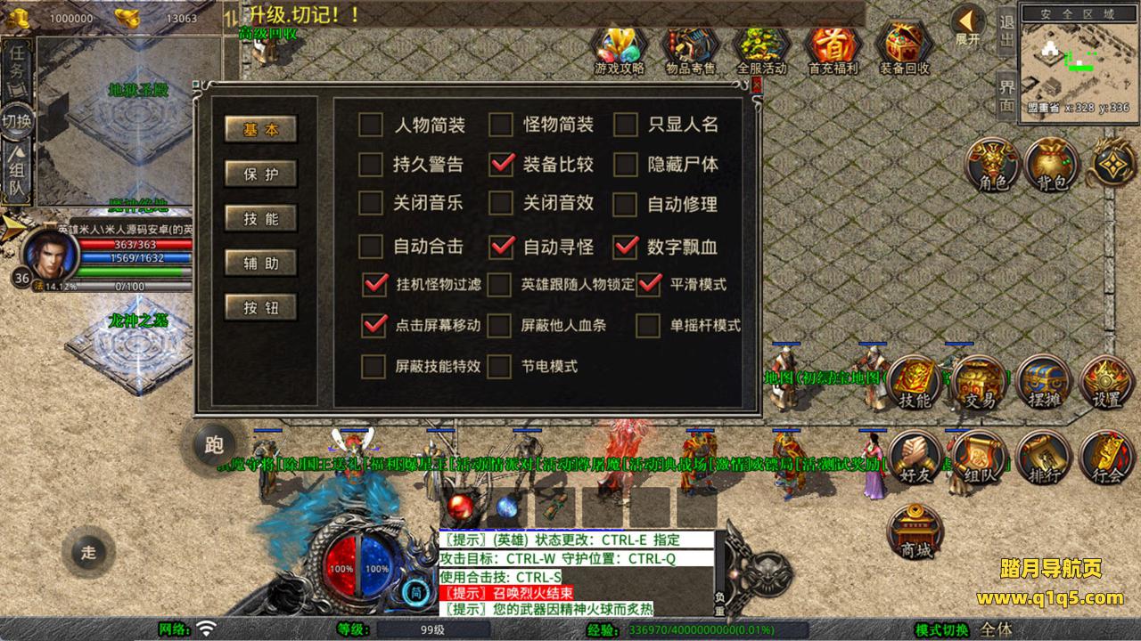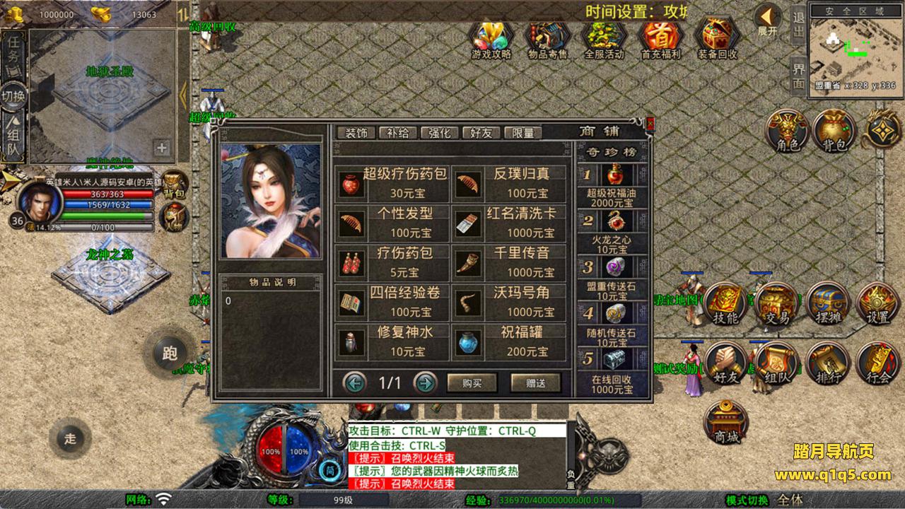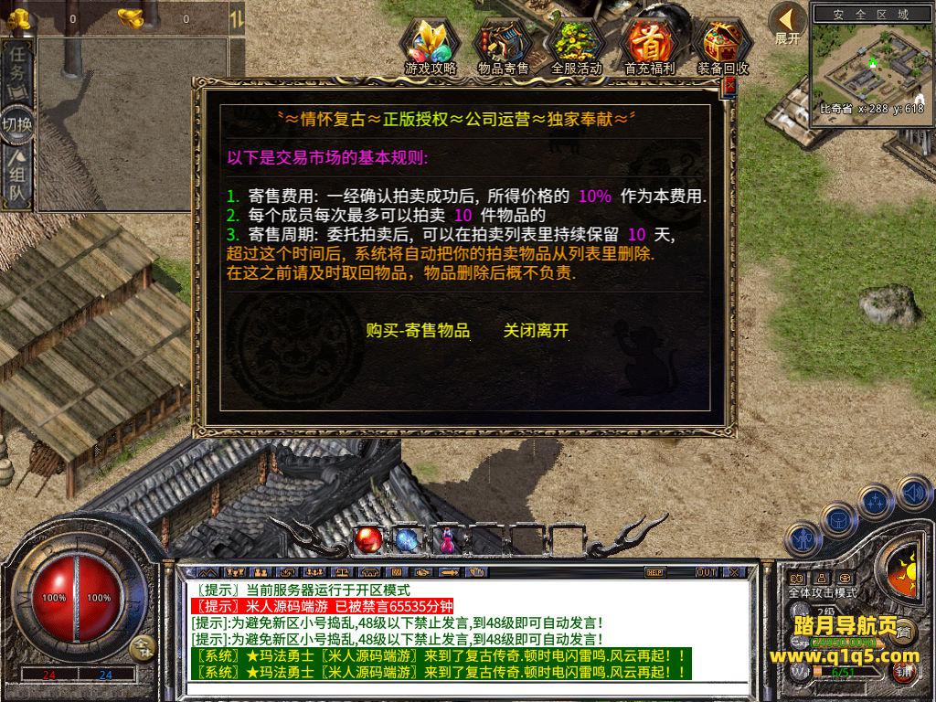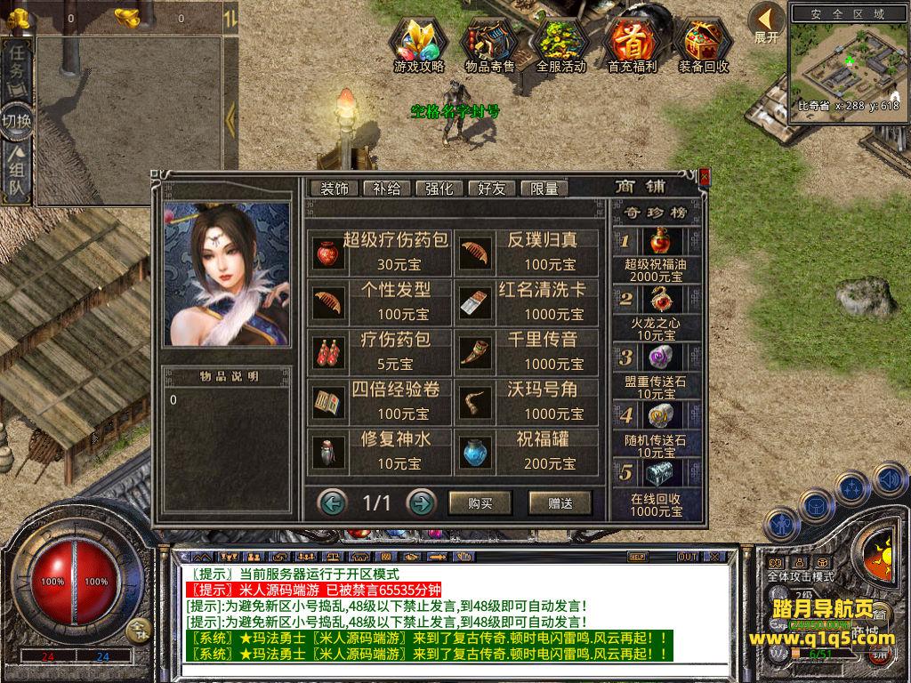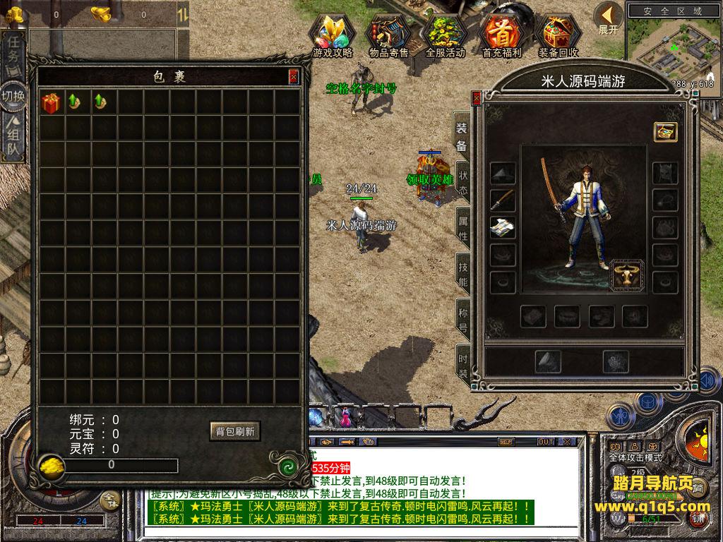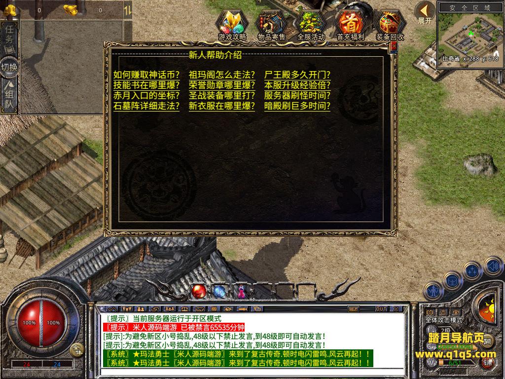下面我们测试下游戏里的功能看看。好了,其他功能就自行测试吧。更多的游戏资源可以访问www.q1q5.com下载,我们每款游戏资源均单独制作的有独立的视频架设教程,让小白也可以快速上手游戏架设,快来体验自己做GM的乐趣吧!