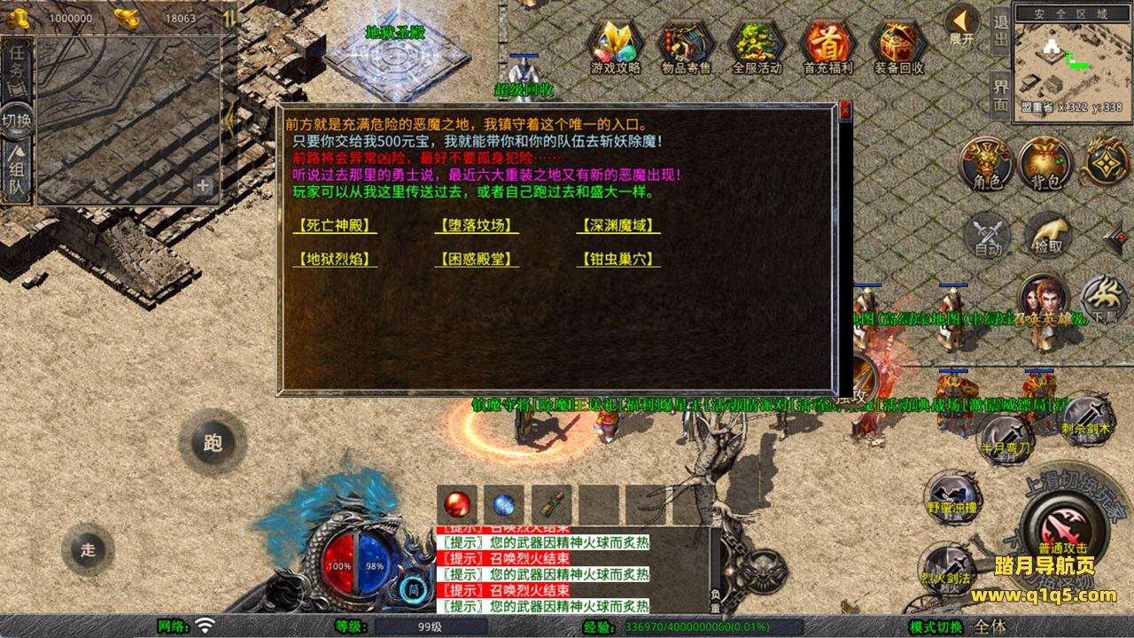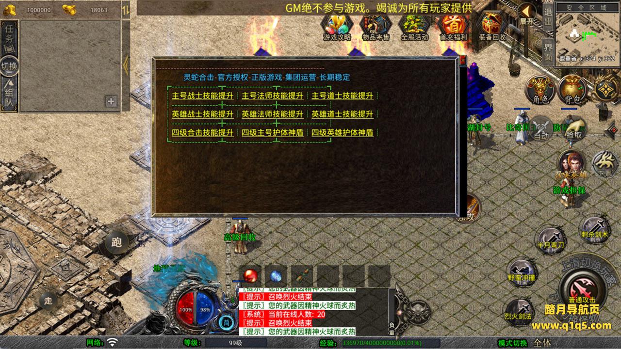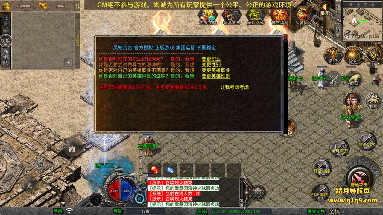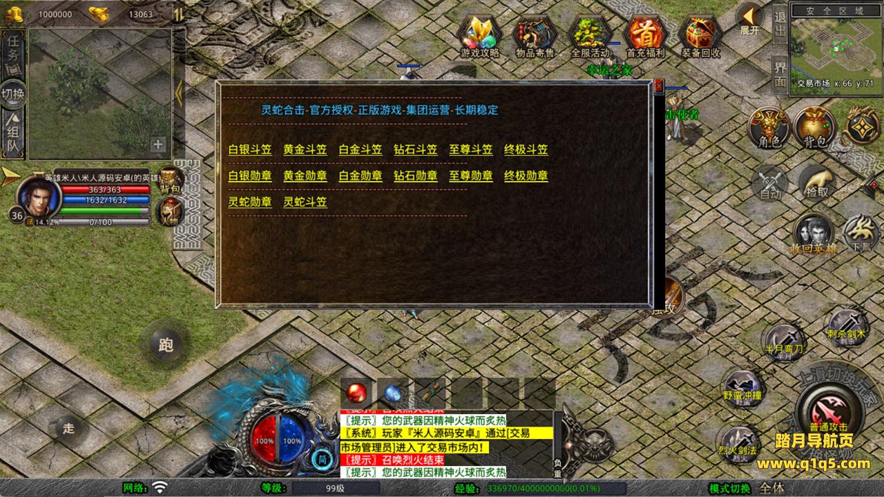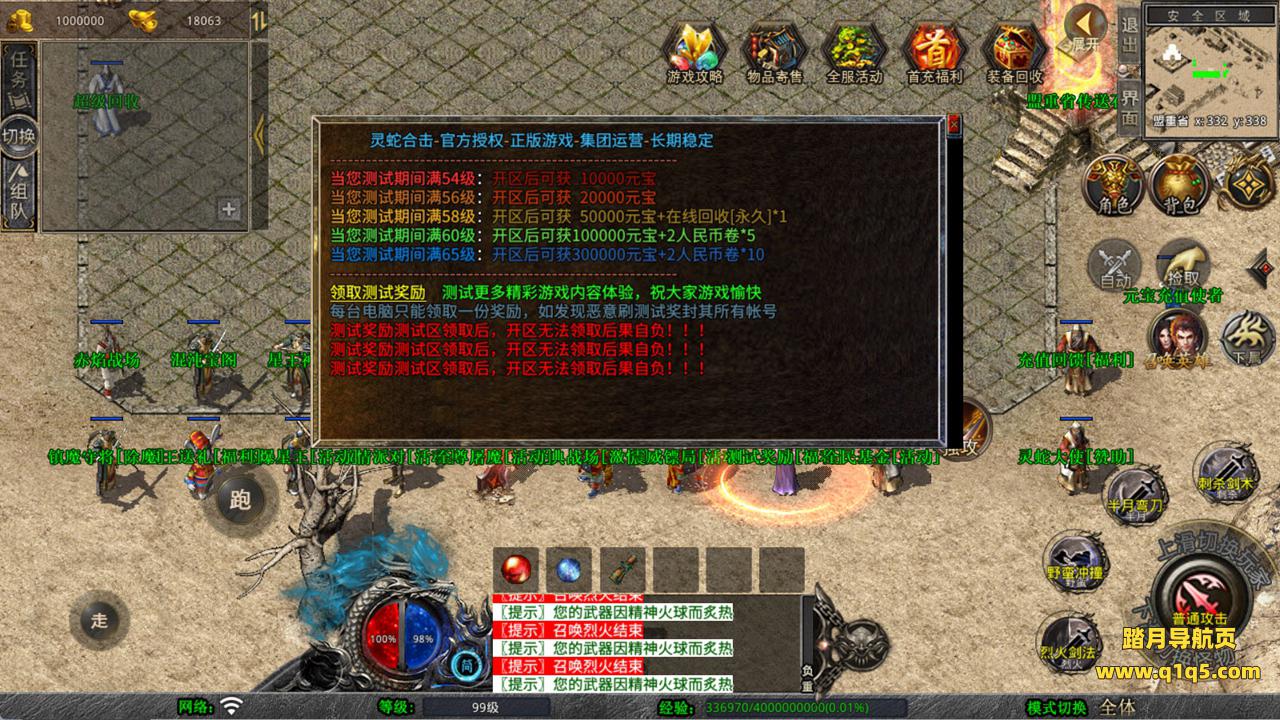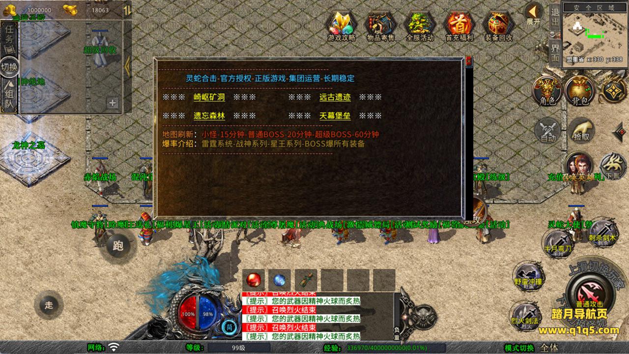 下面我们测试下游戏里的功能看看。好了,其他功能就自行测试吧。更多的游戏资源可以访问www.q1q5.com下载,我们每款游戏资源均单独制作的有独立的视频架设教程,让小白也可以快速上手游戏架设,快来体验自己做GM的乐趣吧!