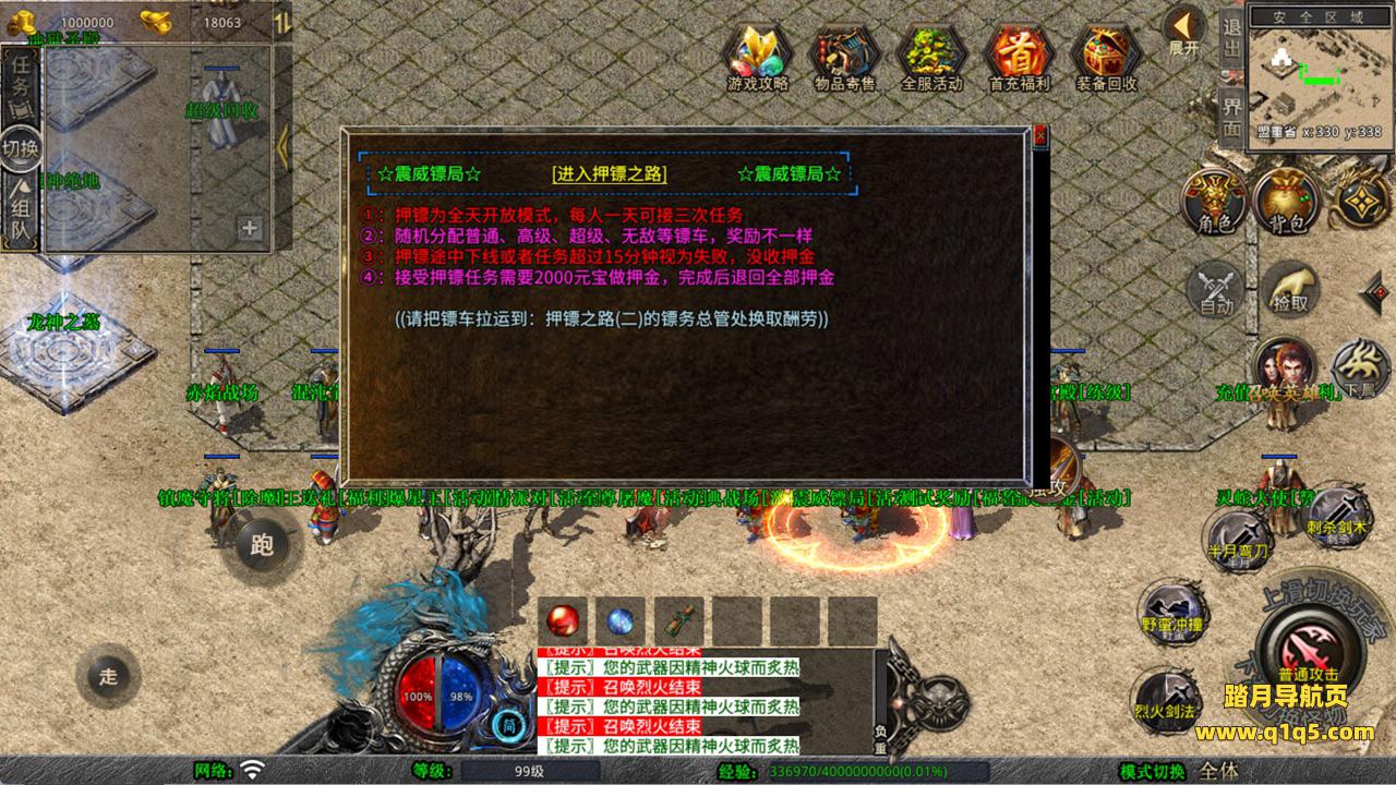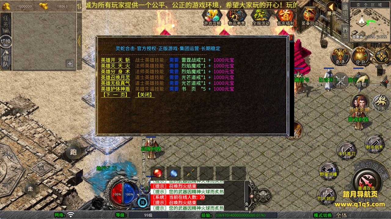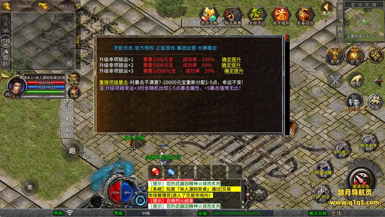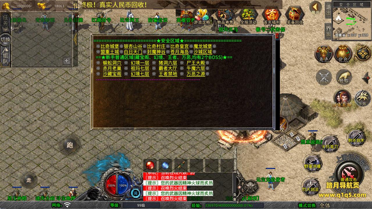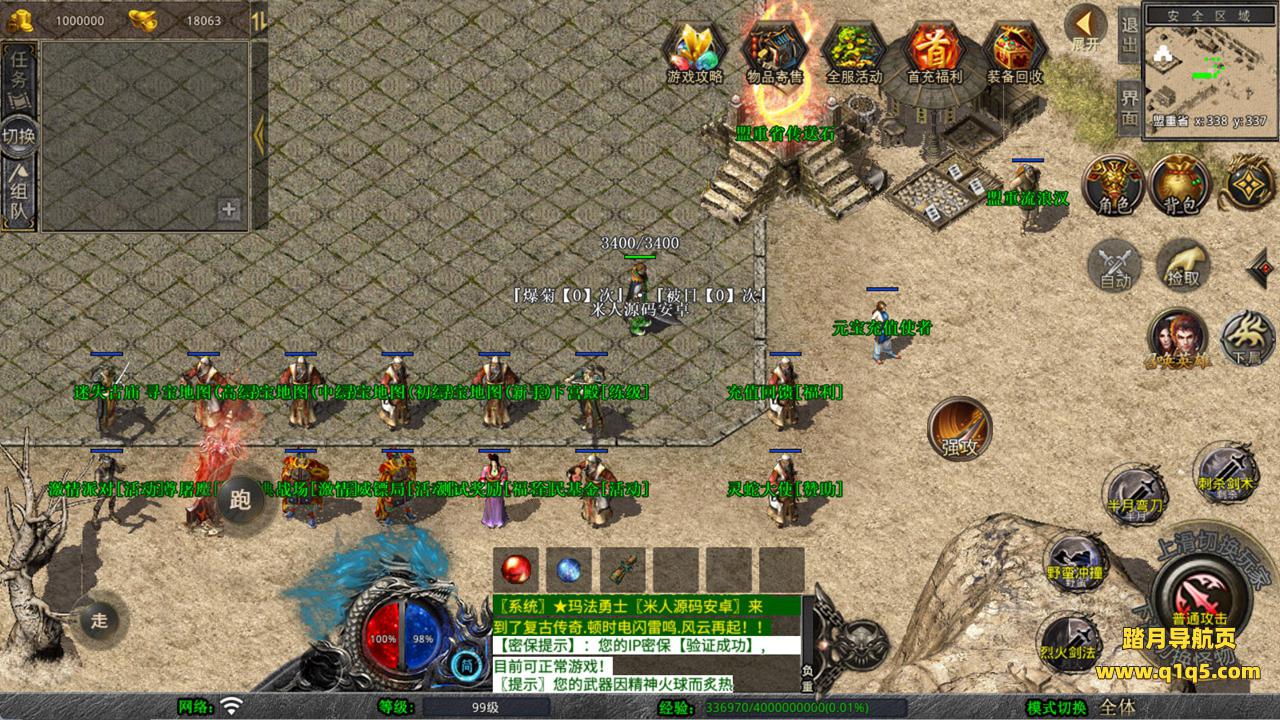 下面我们测试下游戏里的功能看看。好了,其他功能就自行测试吧。更多的游戏资源可以访问www.q1q5.com下载,我们每款游戏资源均单独制作的有独立的视频架设教程,让小白也可以快速上手游戏架设,快来体验自己做GM的乐趣吧!