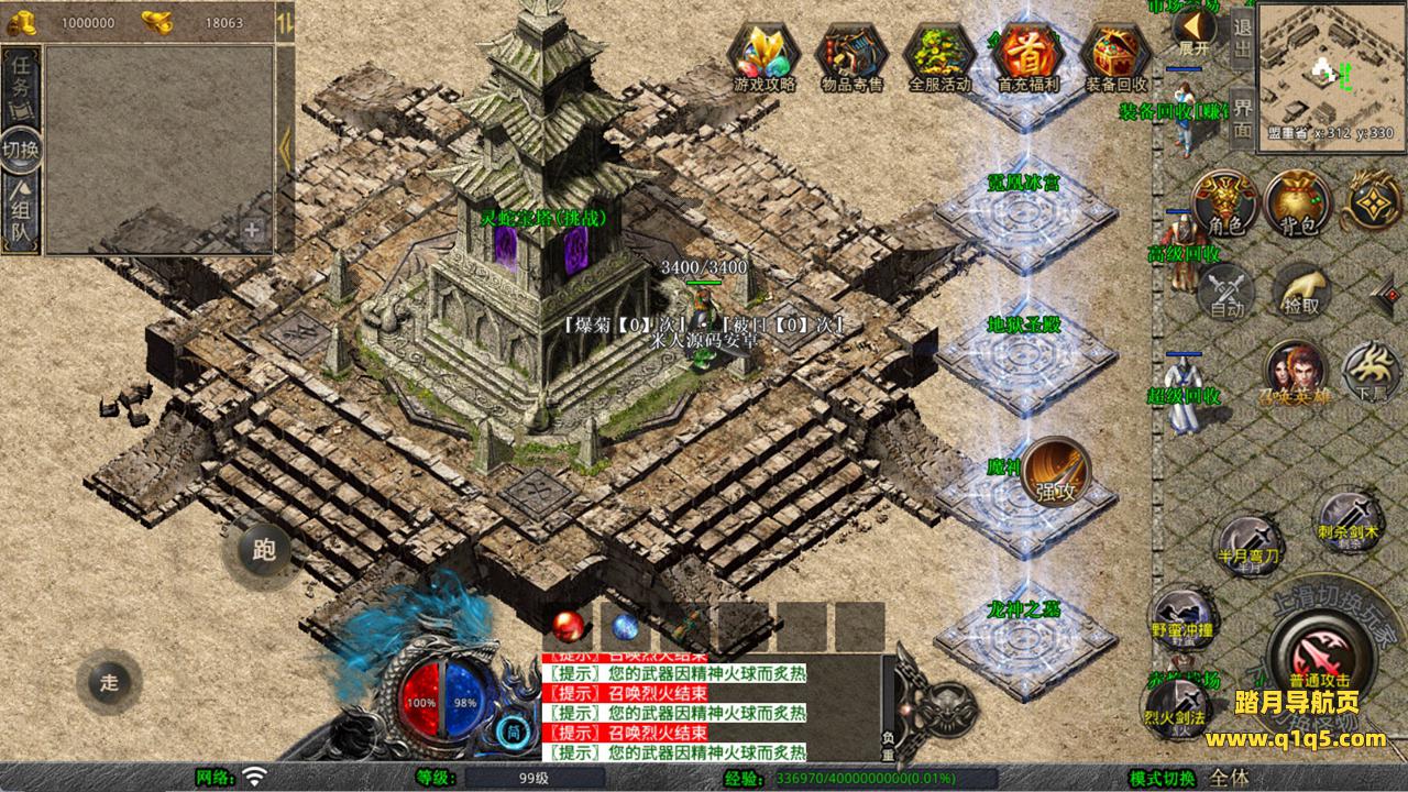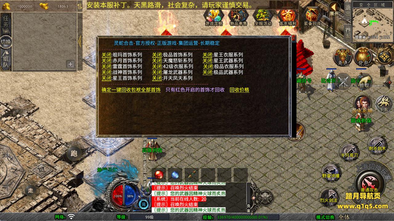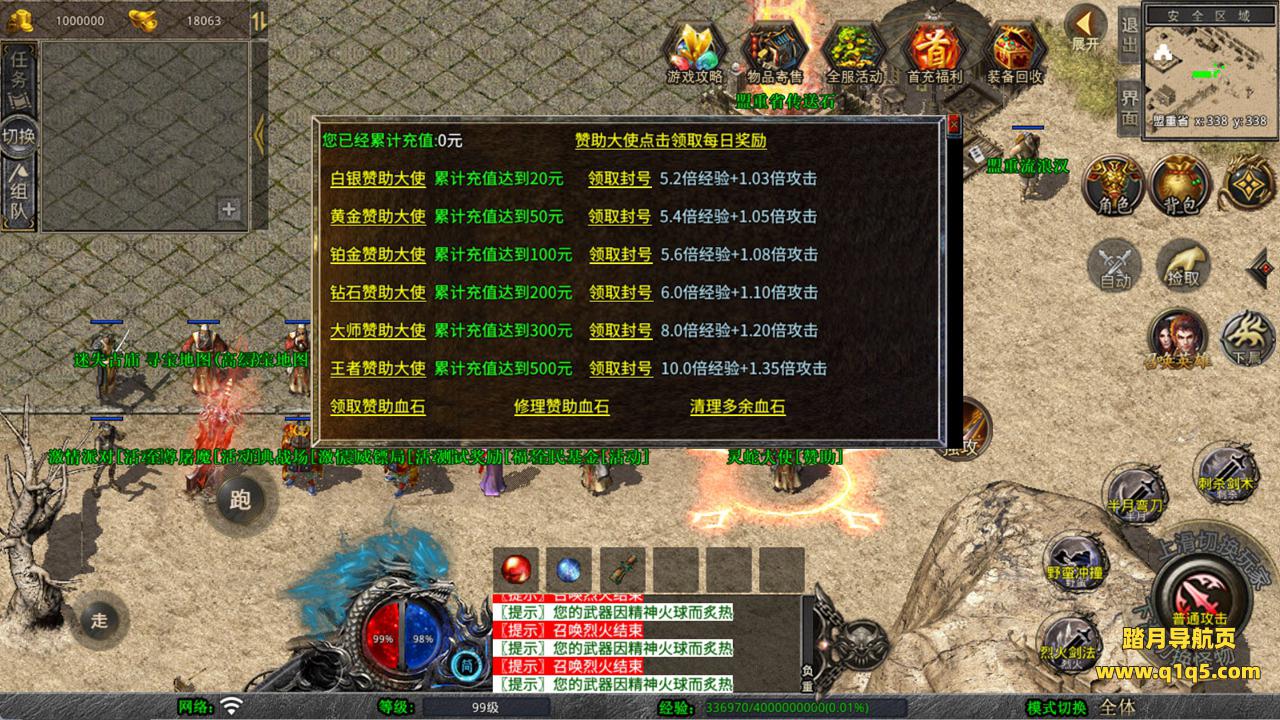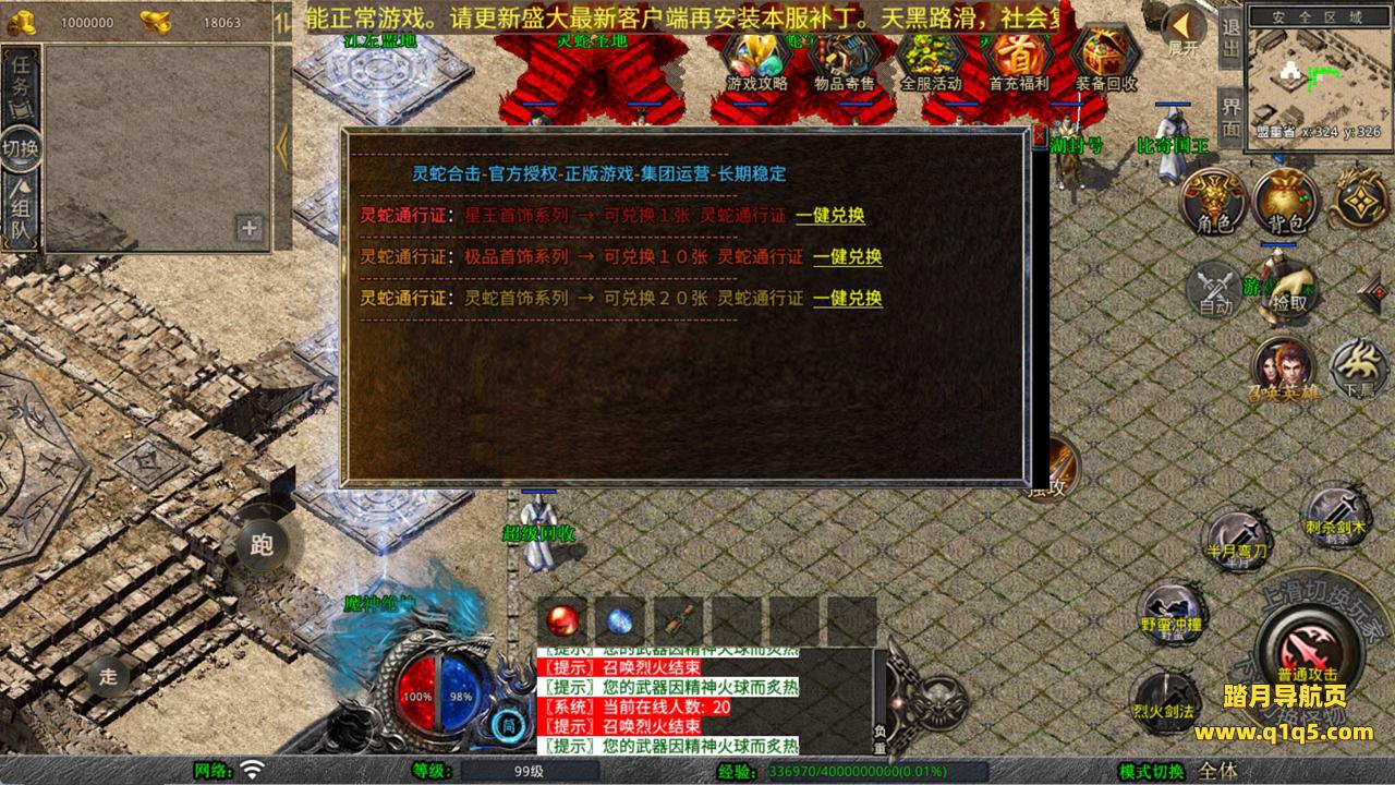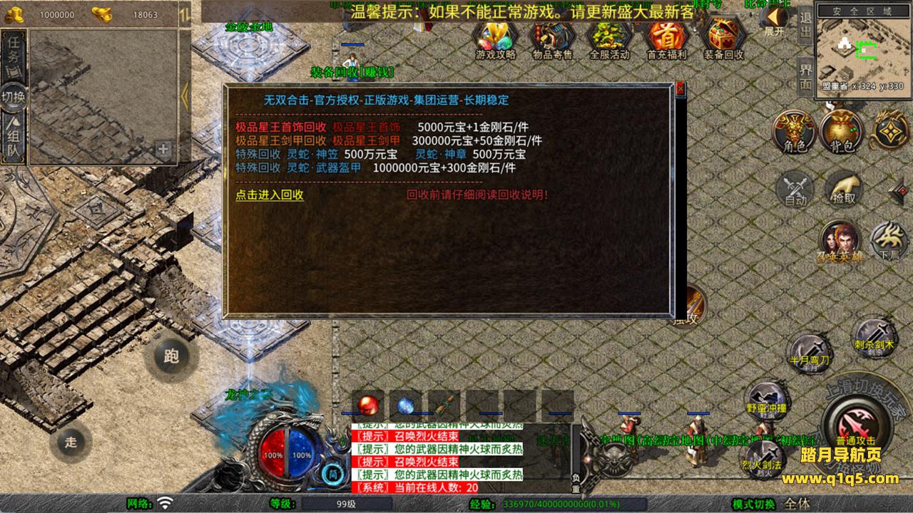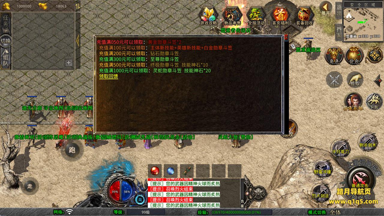下面我们测试下游戏里的功能看看。好了,其他功能就自行测试吧。更多的游戏资源可以访问www.q1q5.com下载,我们每款游戏资源均单独制作的有独立的视频架设教程,让小白也可以快速上手游戏架设,快来体验自己做GM的乐趣吧!