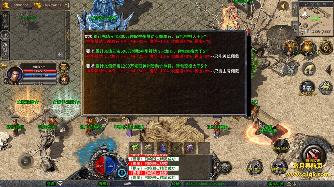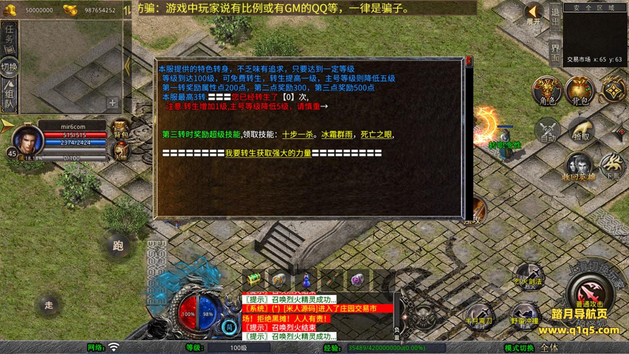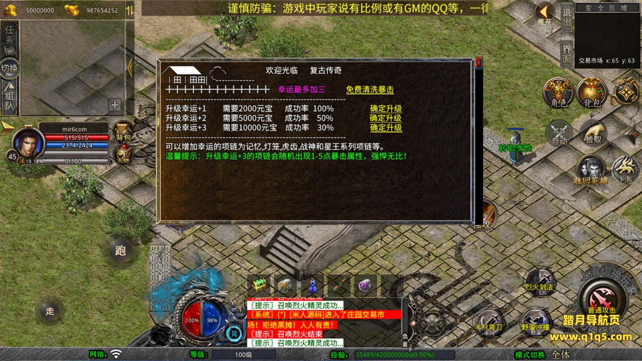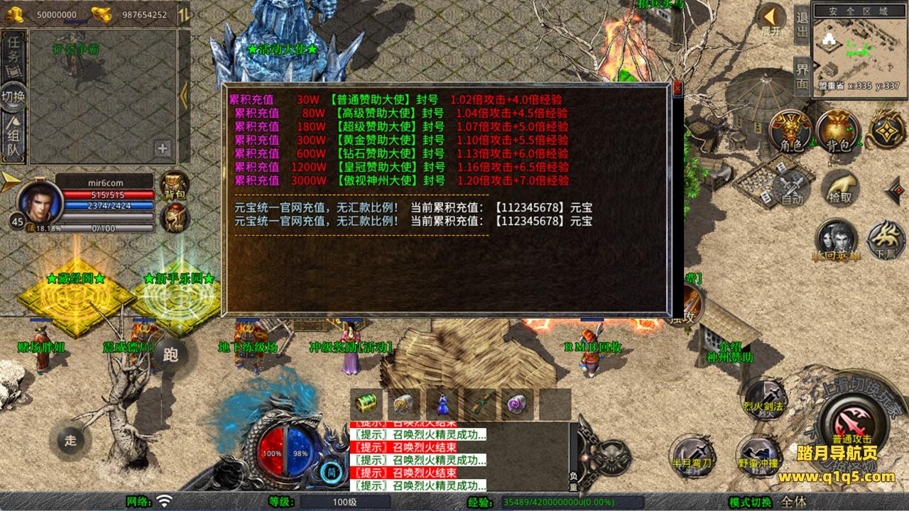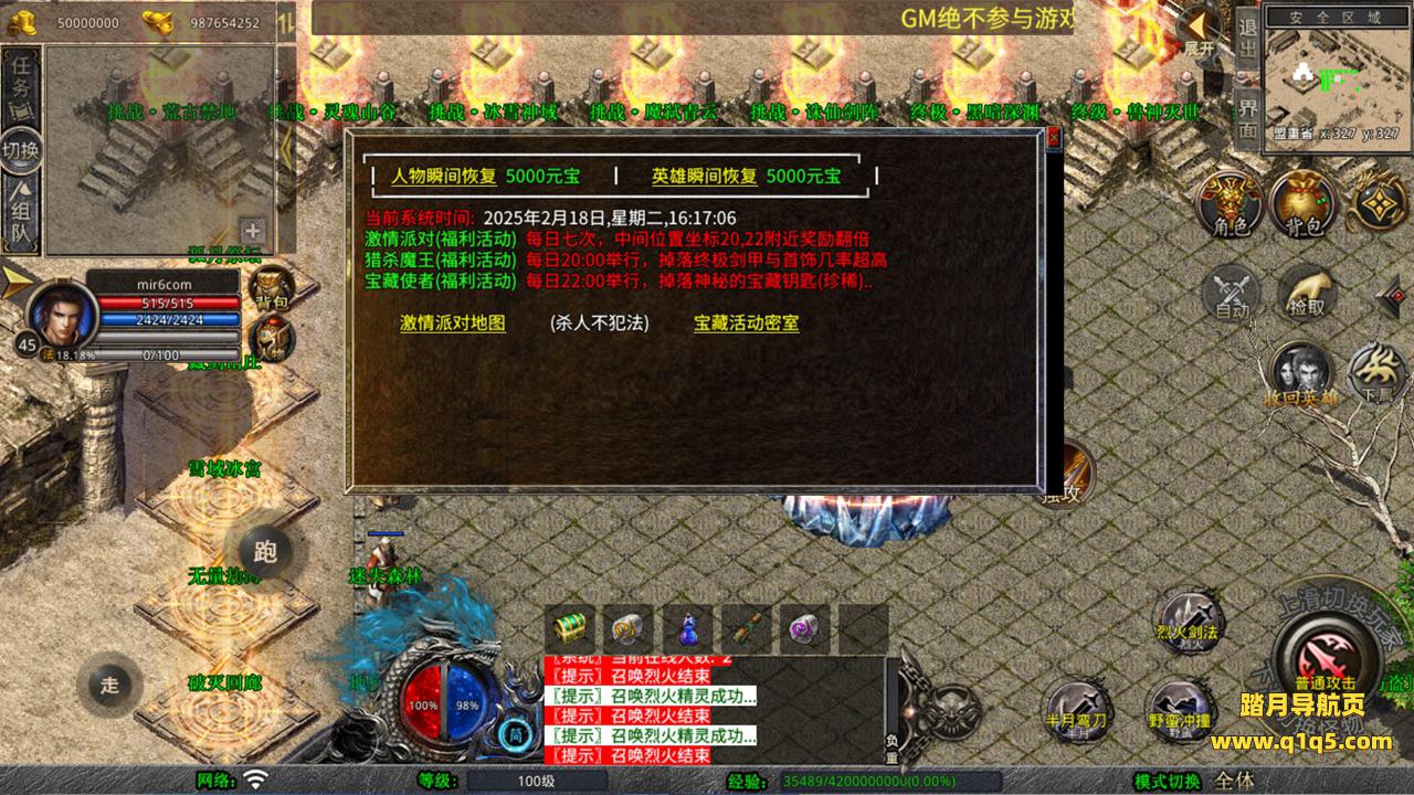 下面我们来测试下游戏里的功能看看吧。好了,其他功能就自行测试吧。更多的游戏资源可以访问www.q1q5.com下载,我们每款游戏资源均单独制作了独立的视频架设教程,让小白也可以快速上手游戏架设,快来体验自己做GM的乐趣吧!