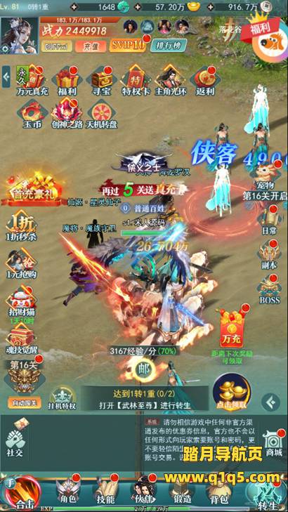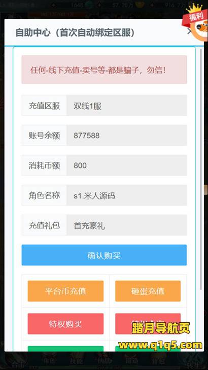 下面我们来测试下游戏里的功能看看。好了,其他功能就自行测试吧。更多的游戏资源可以访问www.q1q5.com下载,我们每款游戏资源均单独制作了独立的视频架设教程,让小白也可以快速上手游戏架设,快来体验自己做GM的乐趣吧!