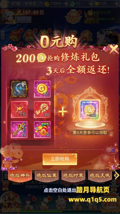 2.新增幻化:神兵、仙翼、时装、天珠,冠名图鉴到350!