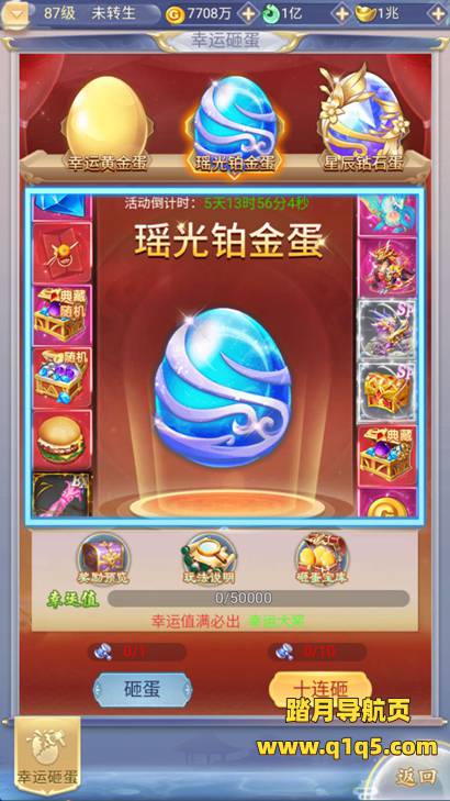 5.修复砸蛋:幸运黄金蛋、瑶光铂金蛋、星辰钻石蛋!
