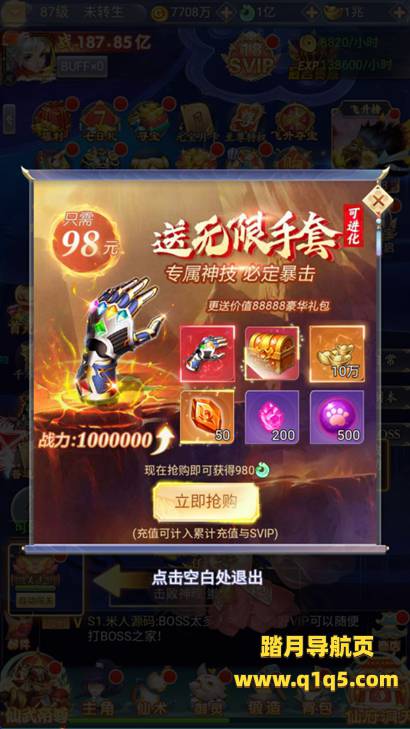 注:首次进游戏卡初始化99,刷新下网页即可,如果使用的apk,就关掉重新进就行!然后选择一区进入。