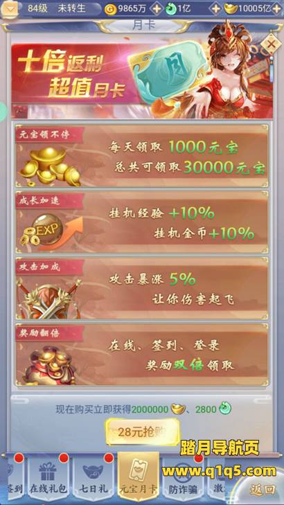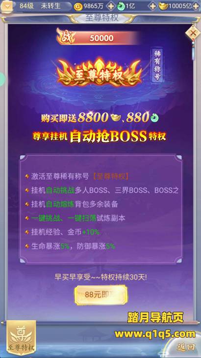 好了,下面我们测试下游戏里的功能看看。其他功能就自行测试吧。更多的游戏资源可以访问www.q1q5.com下载,我们每款游戏资源均单独制作了独立的视频架设教程,让小白也可以快速上手游戏架设,快来体验自己做GM的乐趣吧!