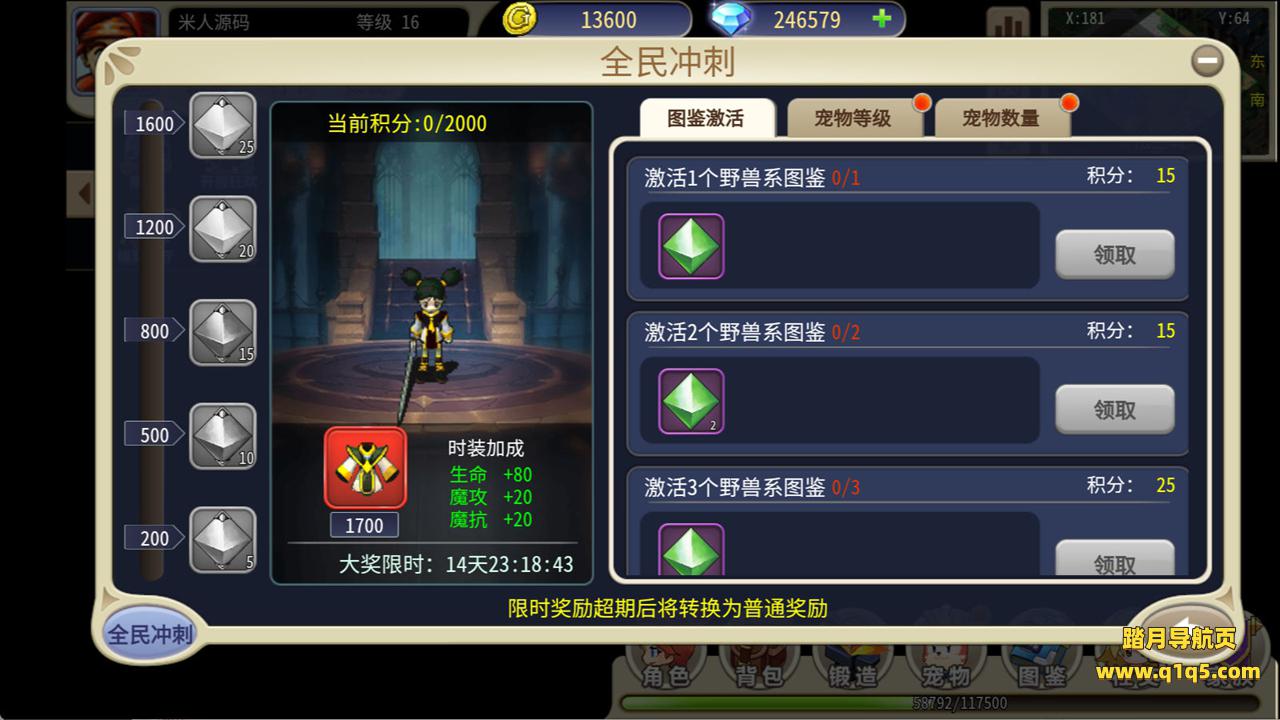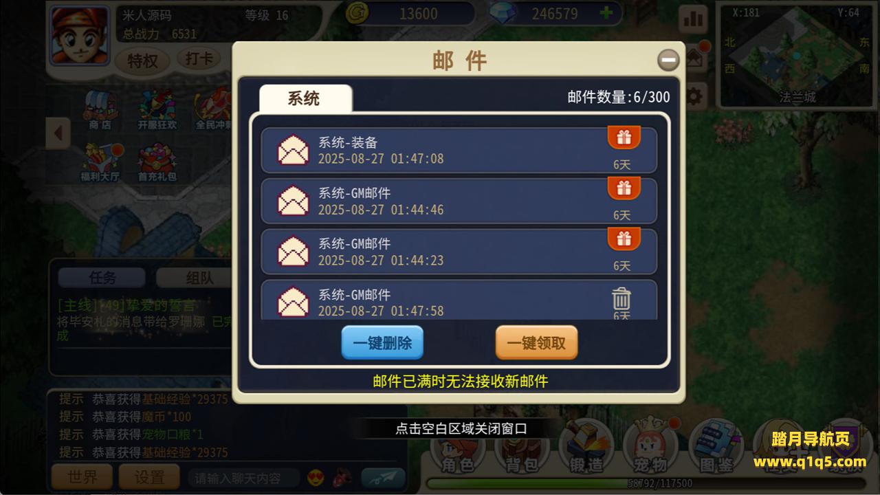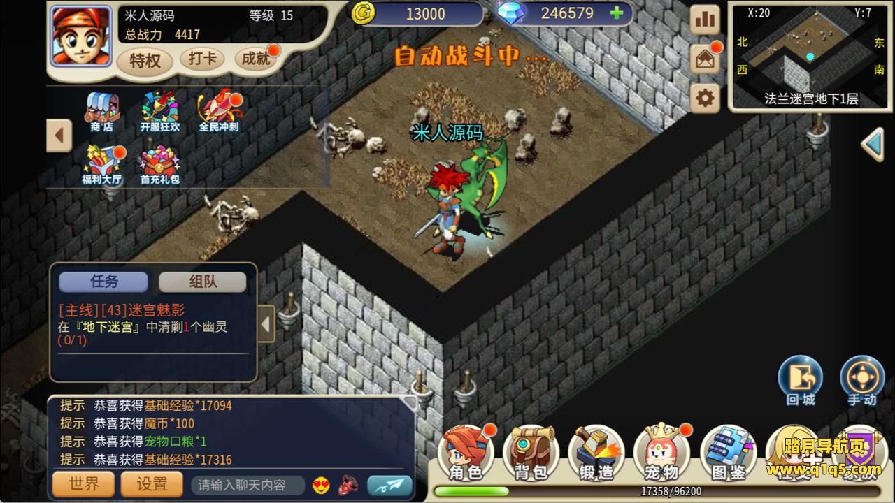 下面我们来测试下游戏里的功能看看吧。好了,其他功能就自行测试吧。更多的游戏资源可以访问www.q1q5.com下载,我们每款游戏资源均单独制作了独立的视频架设教程,让小白也可以快速上手游戏架设,快来体验自己做GM的乐趣吧!