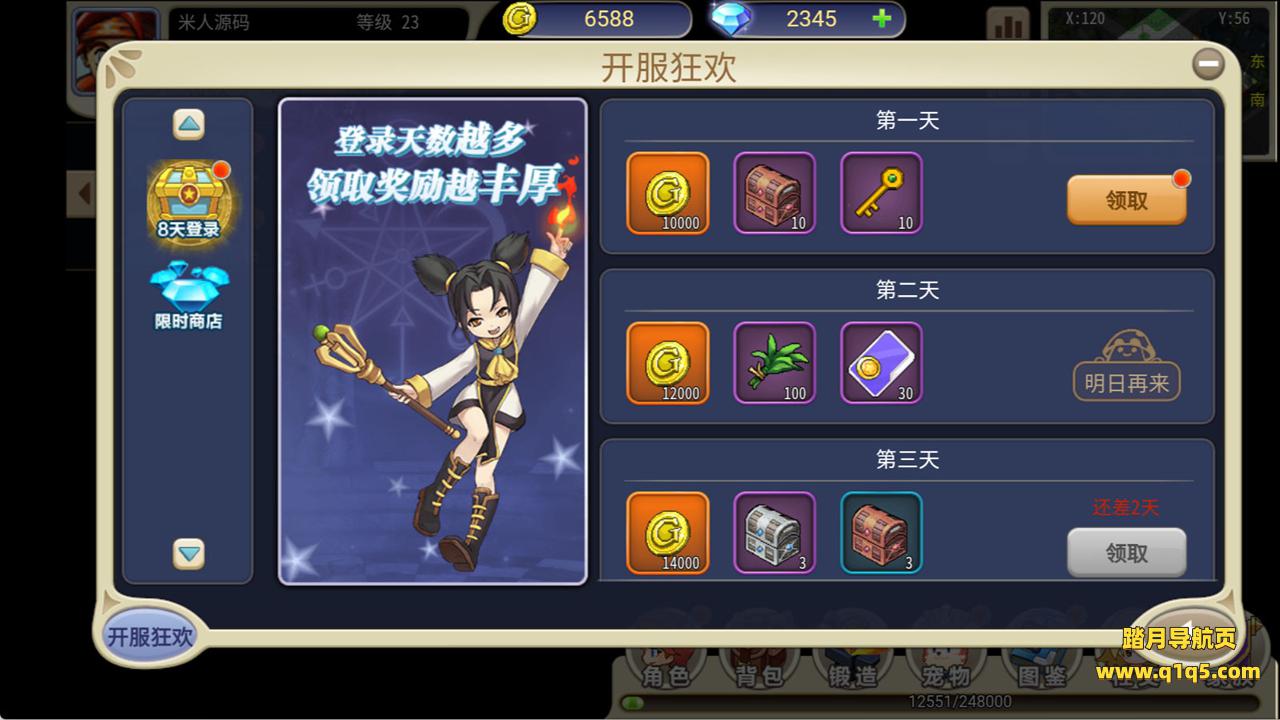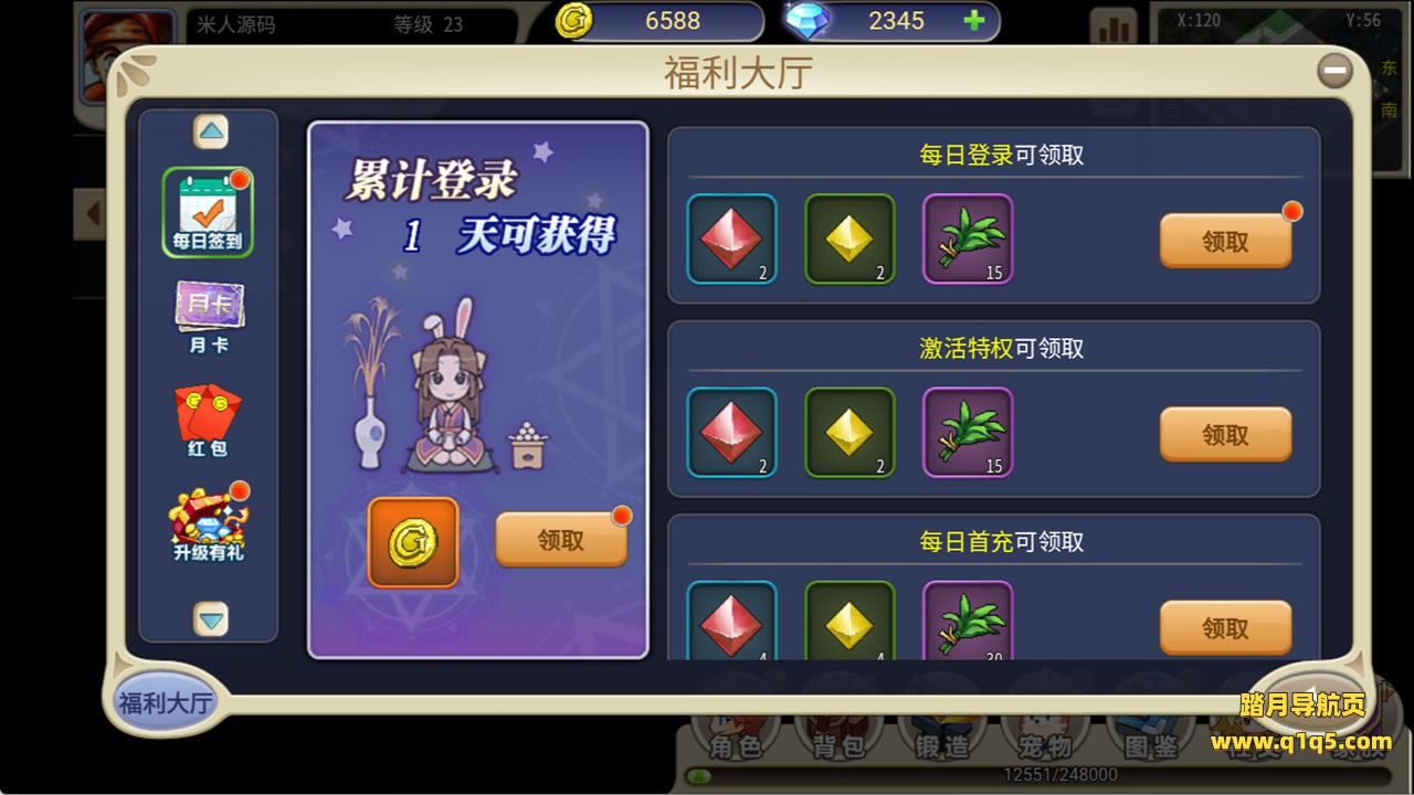 下面我们来测试下游戏里的功能看看吧。好了,其他功能就自行测试吧。更多的游戏资源可以访问www.q1q5.com下载,我们每款游戏资源均单独制作了独立的视频架设教程,让小白也可以快速上手游戏架设,快来体验自己做GM的乐趣吧!