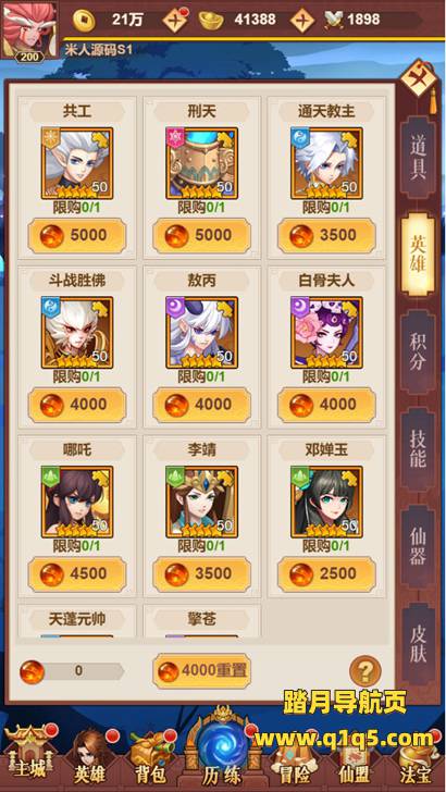 1.新增五个混沌新英雄【月神】【相思客】【修罗战神】【魔皇】【鹿灵】技能,配套仙器,藏品,定制藏品,全部配置好,无需二改