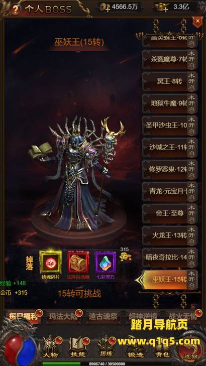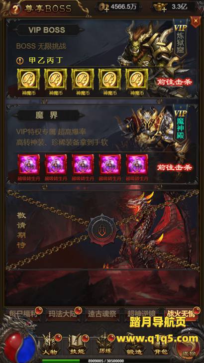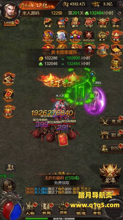 好了,我们在看看游戏里的功能。好了。其他自行测试了吧。更多的游戏资源请访问www.q1q5.com我们每款游戏资源均制作了独立的视频架设教程,让小白也可以快速上手游戏架设,体验做GM的乐趣!