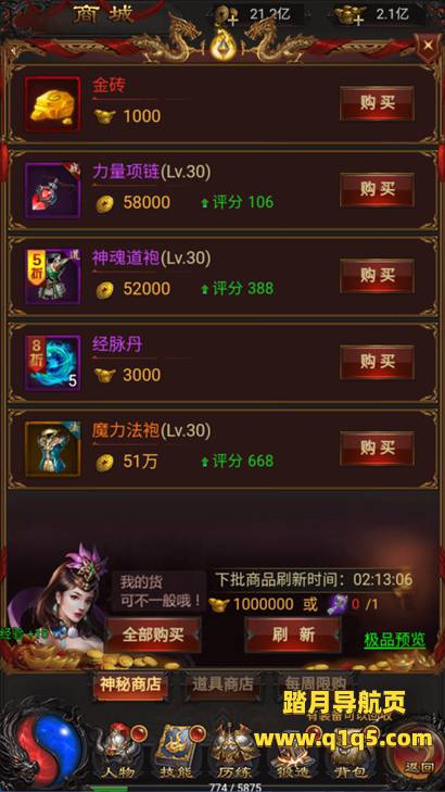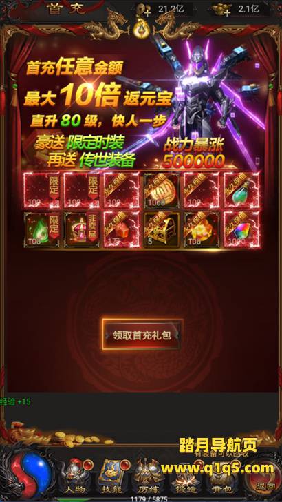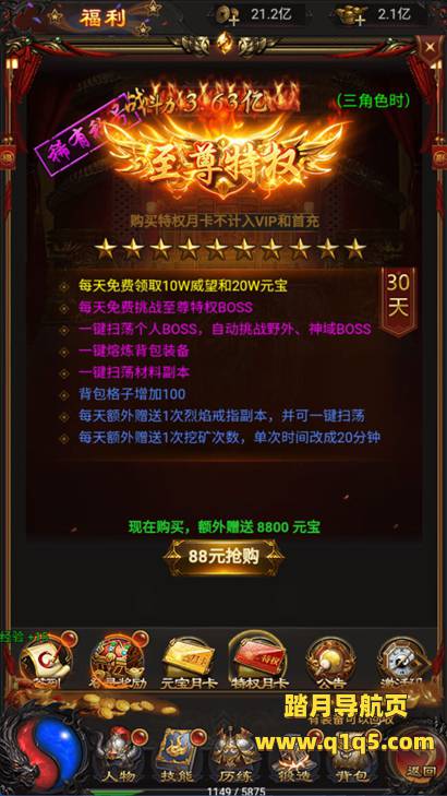 好了。下面我们测试下游戏里的功能看看。好了。其他功能就自行测试吧。更多的游戏资源可访问www.q1q5.com下载,我们每款游戏资源均单独制作了独立的视频架设教程,让小白也可以快速上手游戏架设,快来体验自己做GM的乐趣吧!
