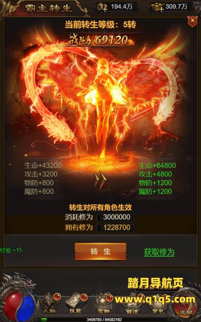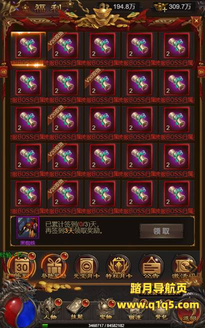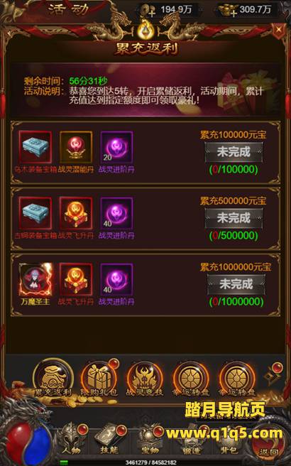 神装碎片66万,野外boss88个,神兵经验丹6666个,高级转身丹88个)