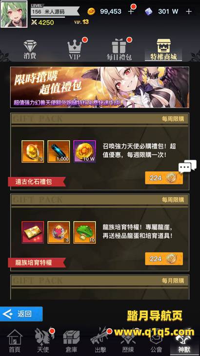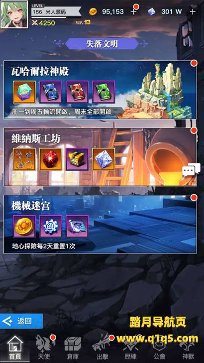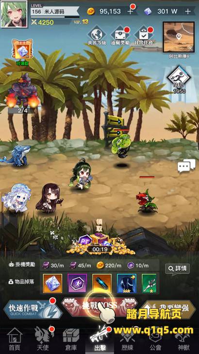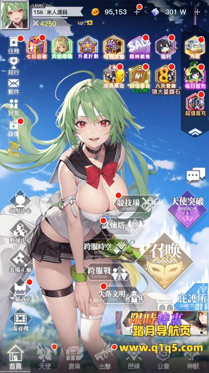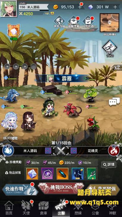 下面我们来测试下游戏里的功能。模拟器里是横屏显示。手机需要自行测试下。正常应该手机会是竖屏显示的。好了,其他功能就自行测试吧。更多的游戏资源可以访问www.q1q5.com下载,我们每款游戏资源均单独制作了独立的视频架设教程。让小白也可以快速上手游戏架设,快来体验做GM的乐趣吧!