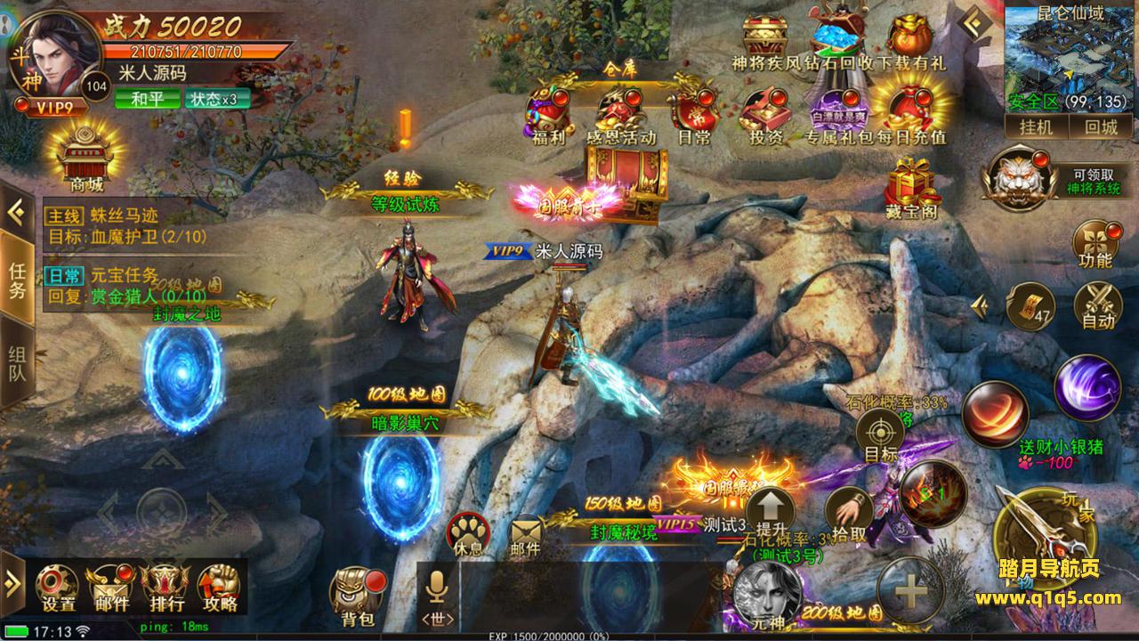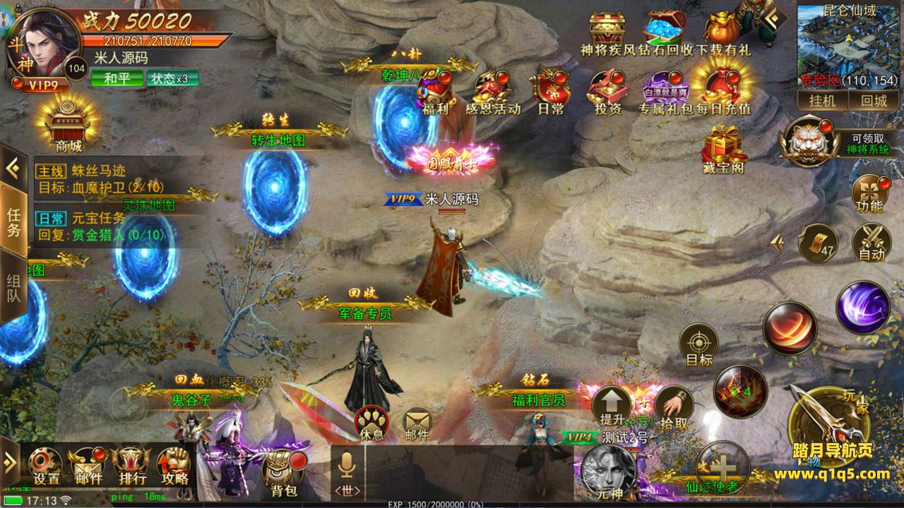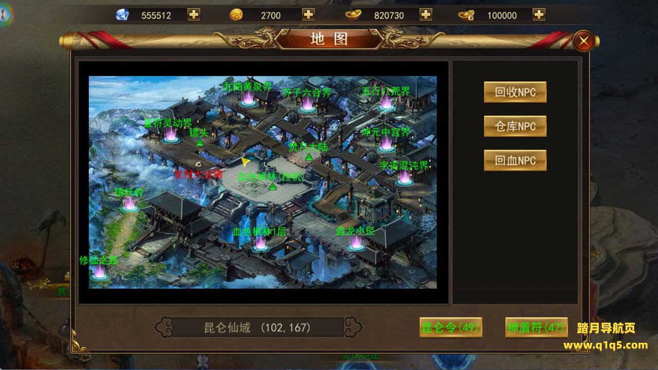 下面我们来测试下游戏里的功能看看吧。好了,其他功能就自行测试吧。更多的游戏资源可以访问www.q1q5.com下载,我们每款游戏资源均单独制作的有独立的视频架设教程,让小白也可以快速上手游戏架设,快来体验自己做GM的乐趣吧!