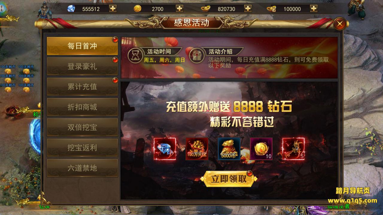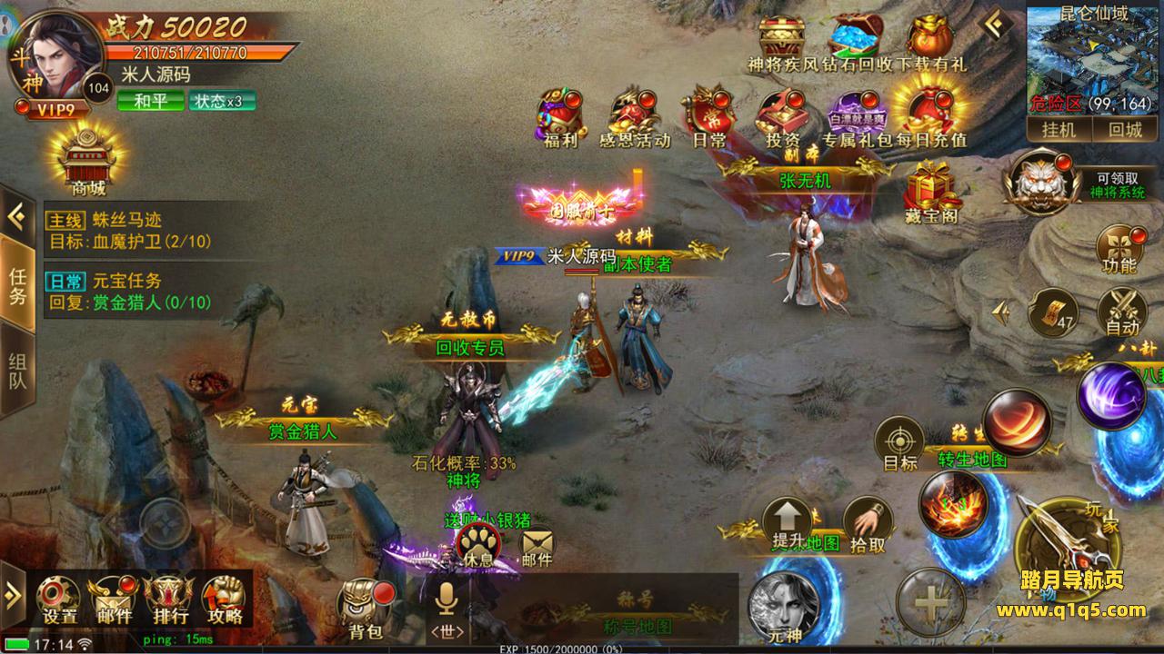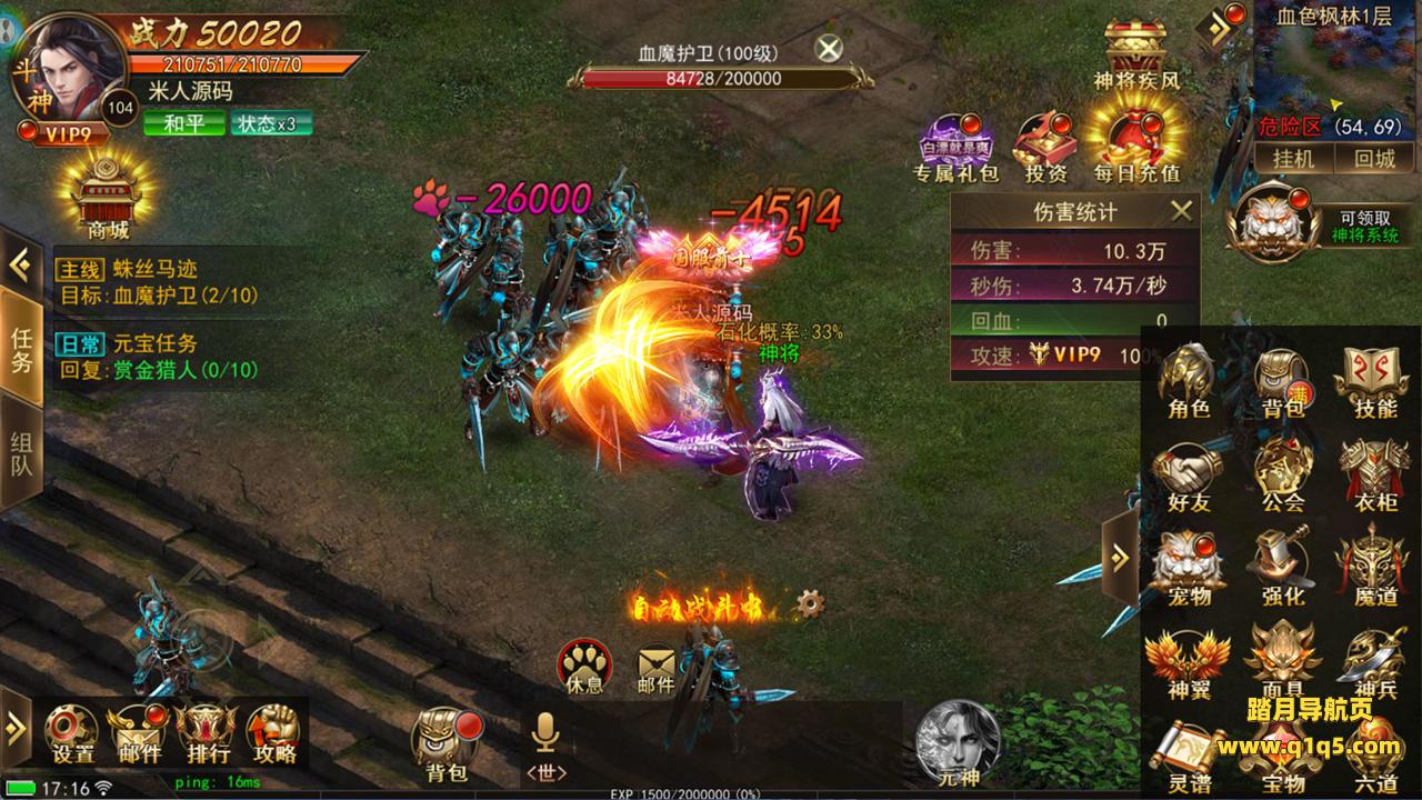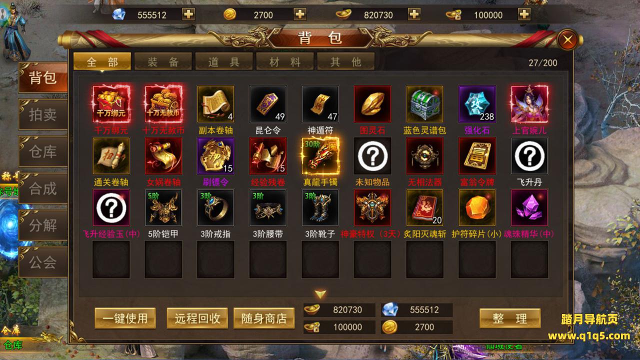 下面我们来测试下游戏里的功能看看吧。好了,其他功能就自行测试吧。更多的游戏资源可以访问www.q1q5.com下载,我们每款游戏资源均单独制作的有独立的视频架设教程,让小白也可以快速上手游戏架设,快来体验自己做GM的乐趣吧!
