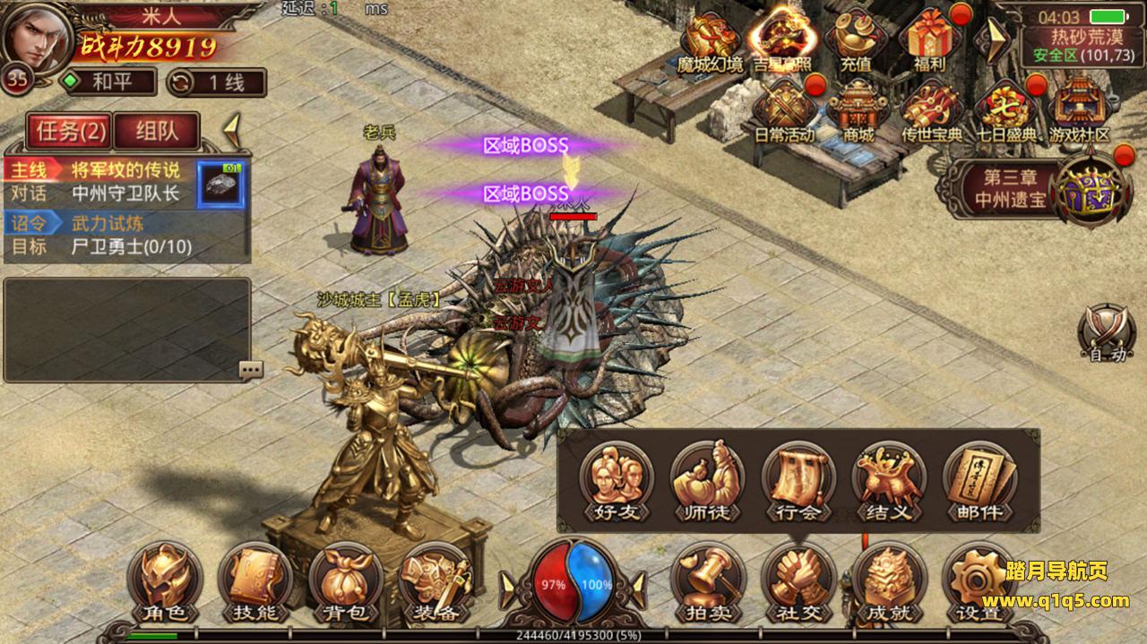 然后我们测试下游戏里的功能。好了,其他功能自行测试吧。更多游戏资源可以访问www.q1q5.com下载,我们每款游戏资源都包含制作的独立视频架设教程,让小白也可以快速上手游戏架设,体验做GM的乐趣!