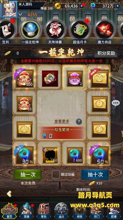 好了,下面我们来测试下游戏里的功能吧。好了,其他功能就自行测试吧。更多的游戏资源可以访问www.q1q5.com下载,我们每款软件均单独制作了独立的视频架设教程,让小白也可以快速上手游戏架设,快来体验做GM的乐趣吧!