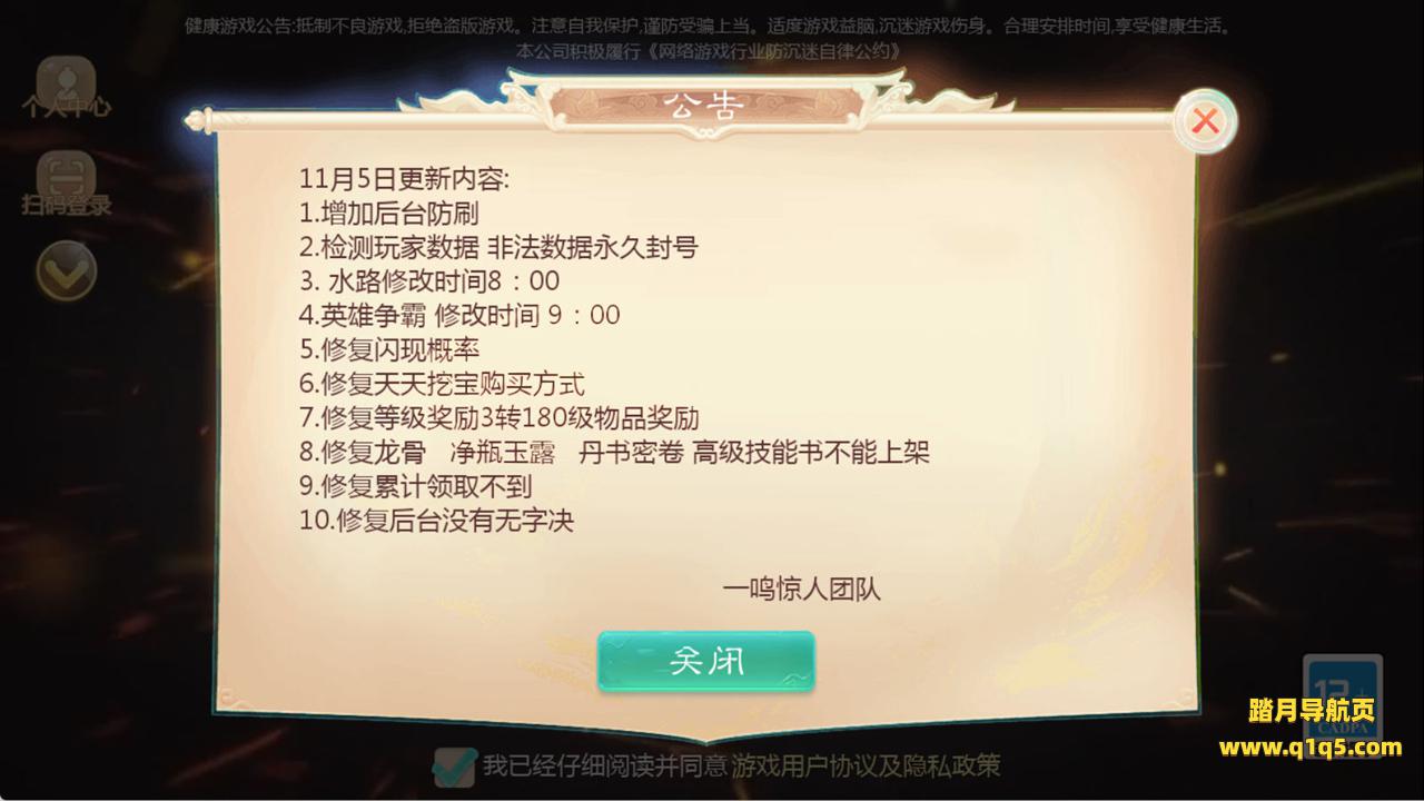 下面我们来测试下游戏里的功能看看吧。好了,其他功能就自行测试吧。更多的游戏资源可以访问www.q1q5.com下载,我们每款游戏资源均单独制作了独立的视频架设教程,让小白也可以快速上手游戏架设,快来体验自己做GM的乐趣吧!
