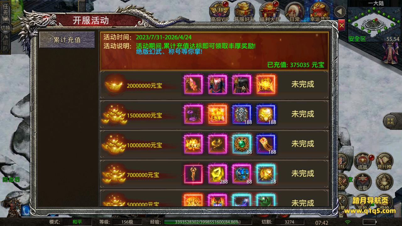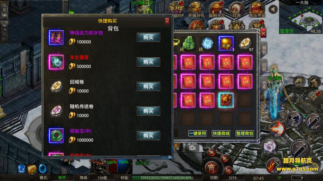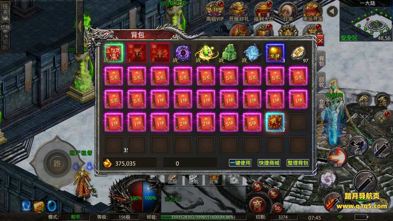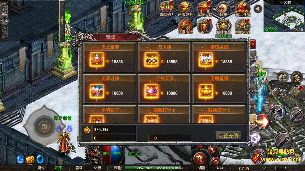 好了,我们在测试下游戏里的功能吧。其他功能就自行测试吧。更多的游戏资源请访问www.q1q5.com下载,我们每款游戏资源均单独制作的有独立的视频架设教程,让小白也可以快速上手游戏架设,体验做GM的乐趣!