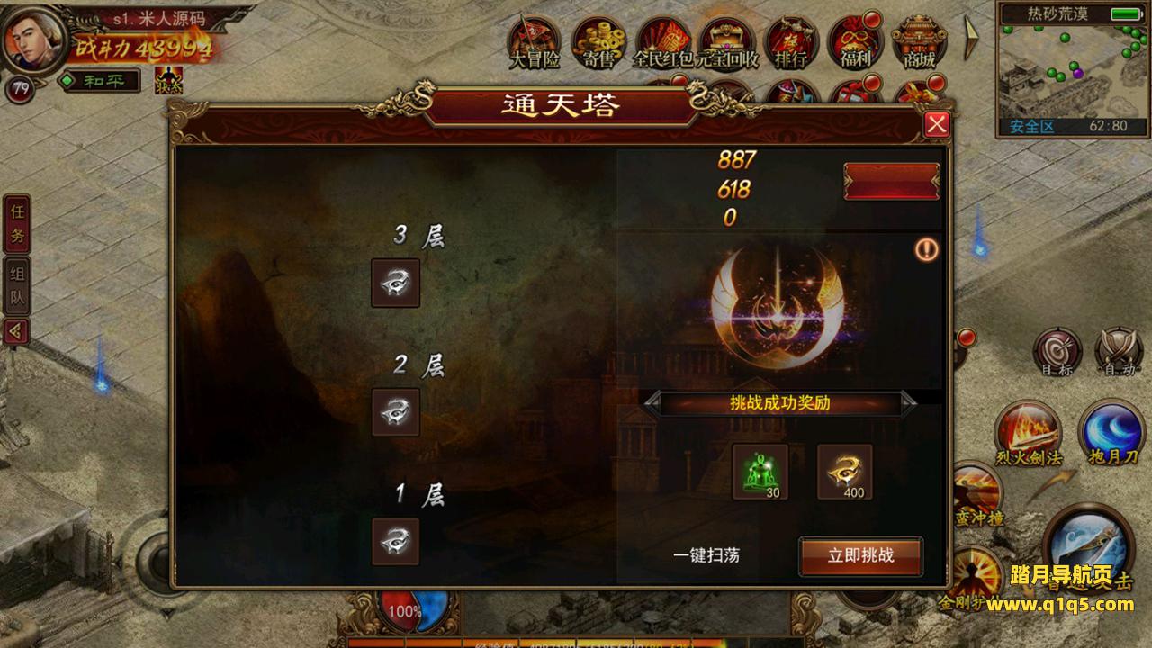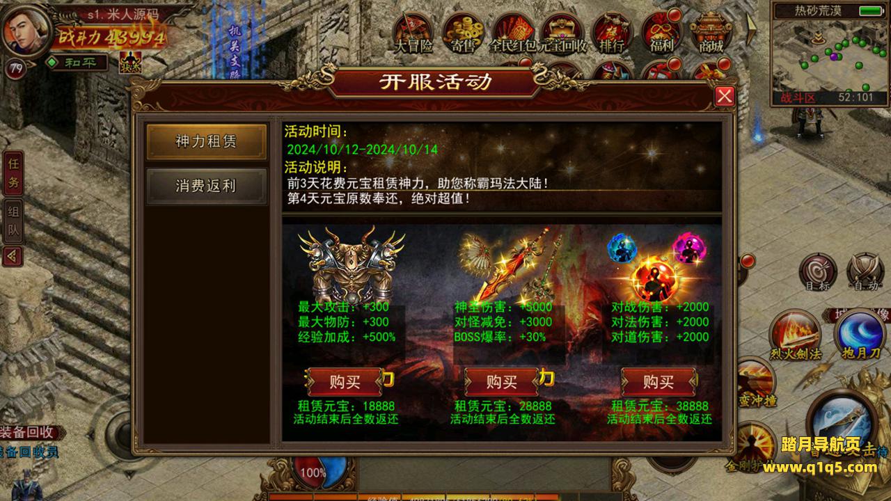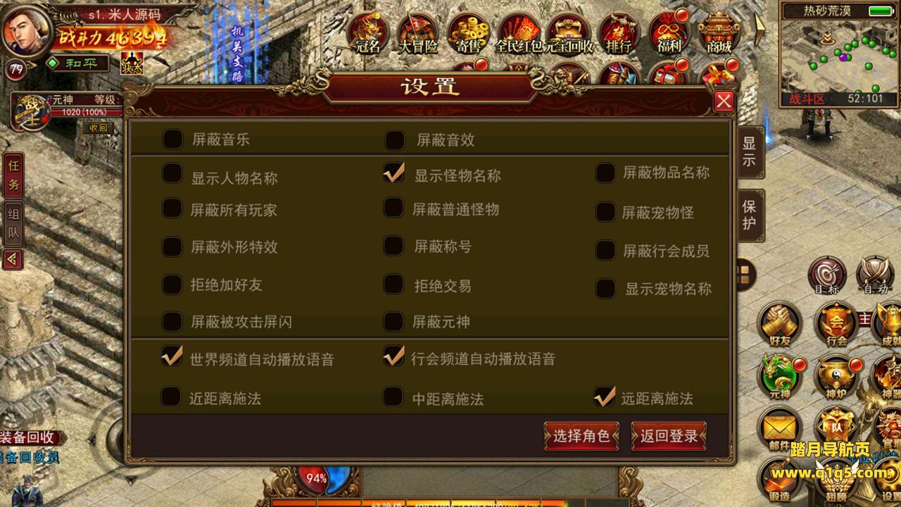 下面我们看看游戏里的功能。好了,其他功能自行测试吧。更多游戏资源请访问www.q1q5.com下载,我们每款游戏资源均单独制作了独立的视频架设教程,让小白也可以快速上手游戏架设,体验做GM的乐趣!