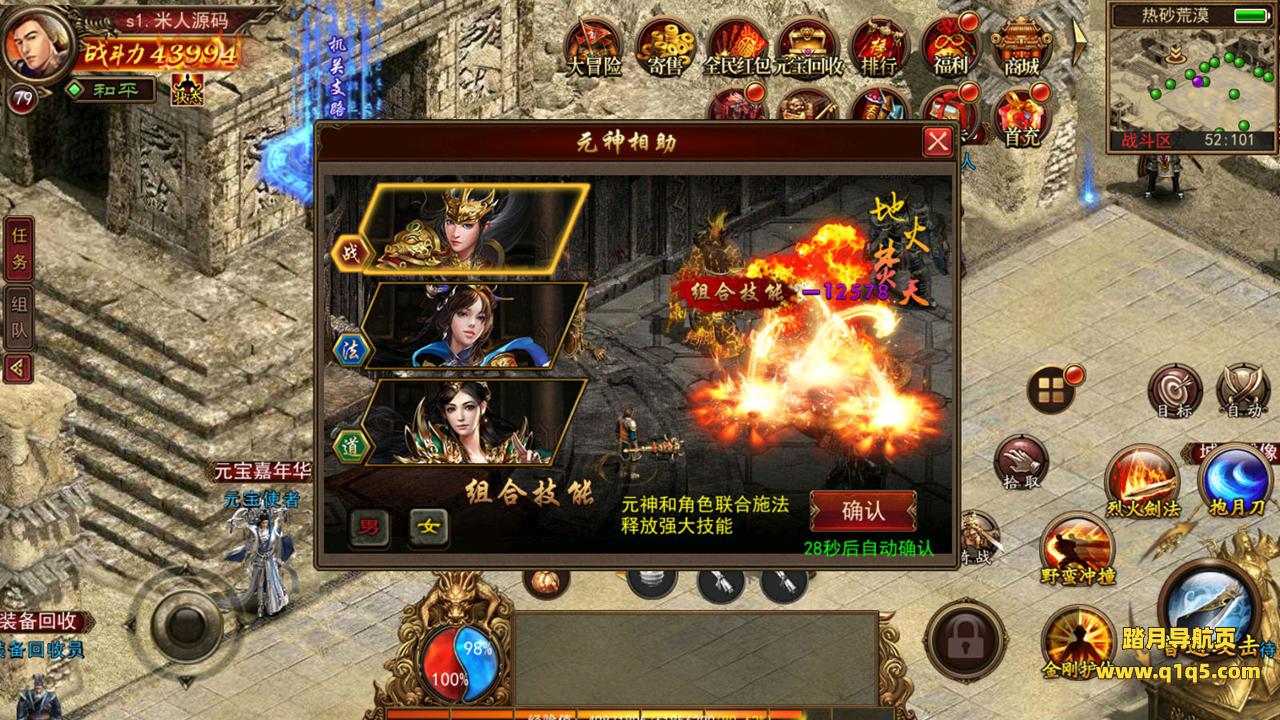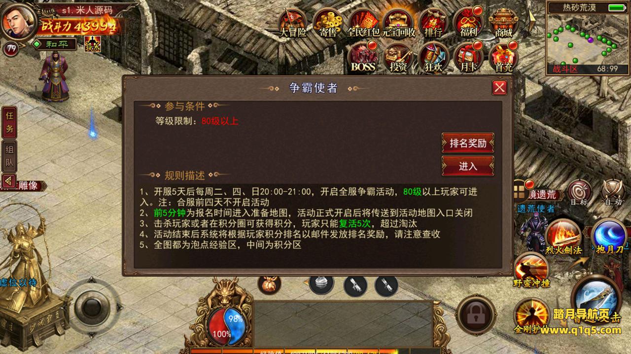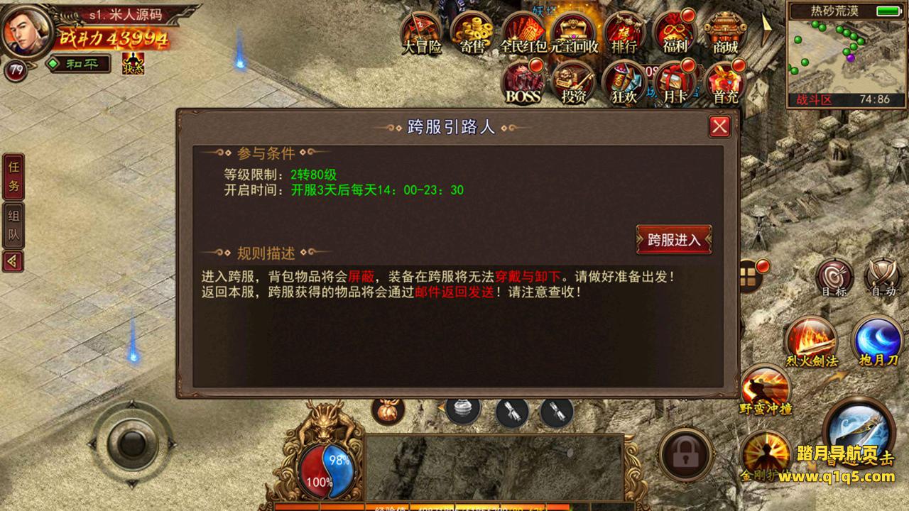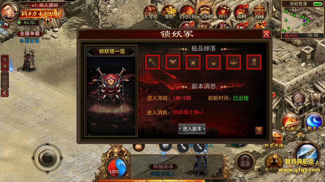 下面我们看看游戏里的功能。好了,其他功能自行测试吧。更多游戏资源请访问www.q1q5.com下载,我们每款游戏资源均单独制作了独立的视频架设教程,让小白也可以快速上手游戏架设,体验做GM的乐趣!